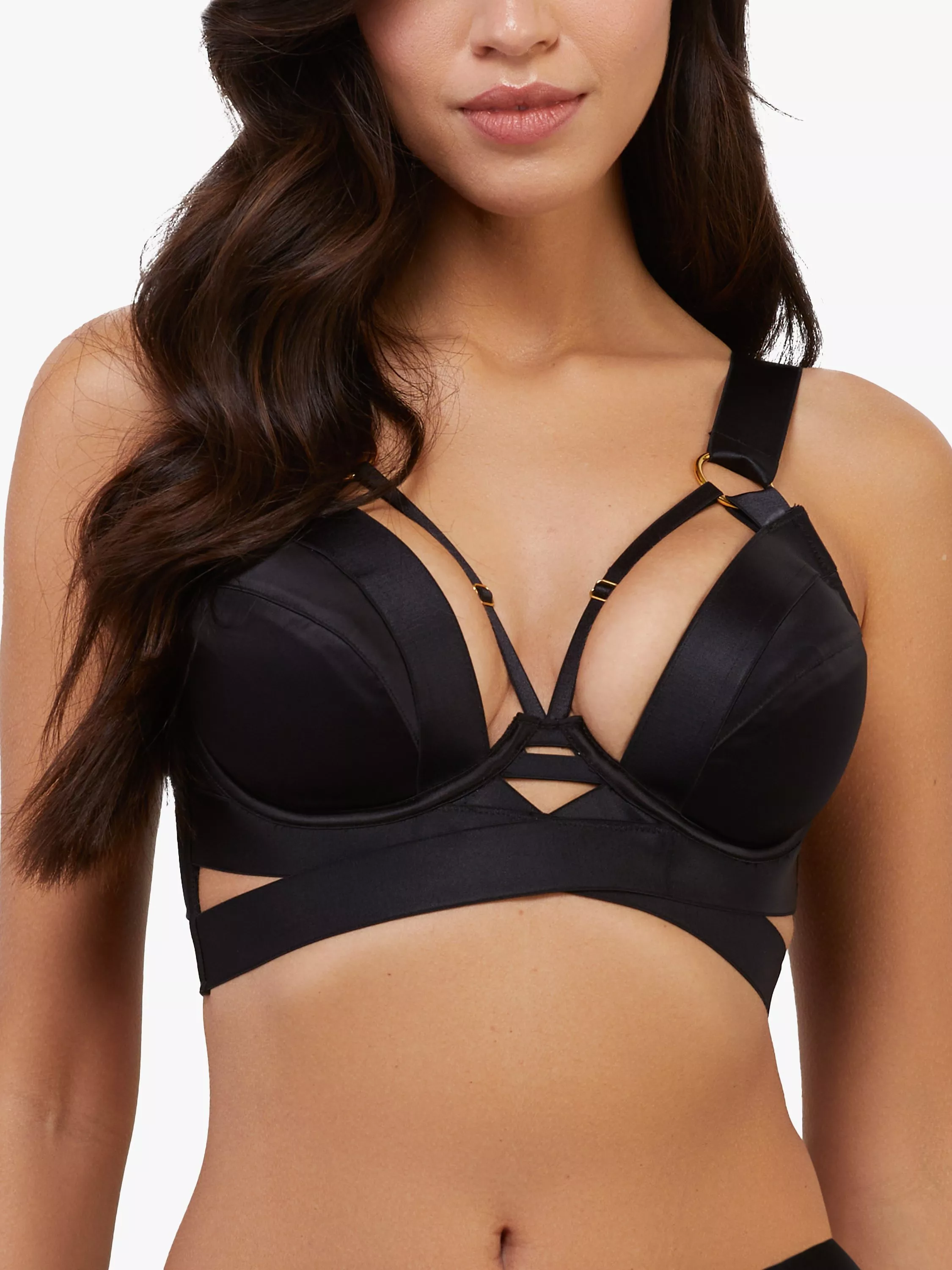 Playful PromisesEtta Satin & Mesh Longline Padded Plunge Bra, Black