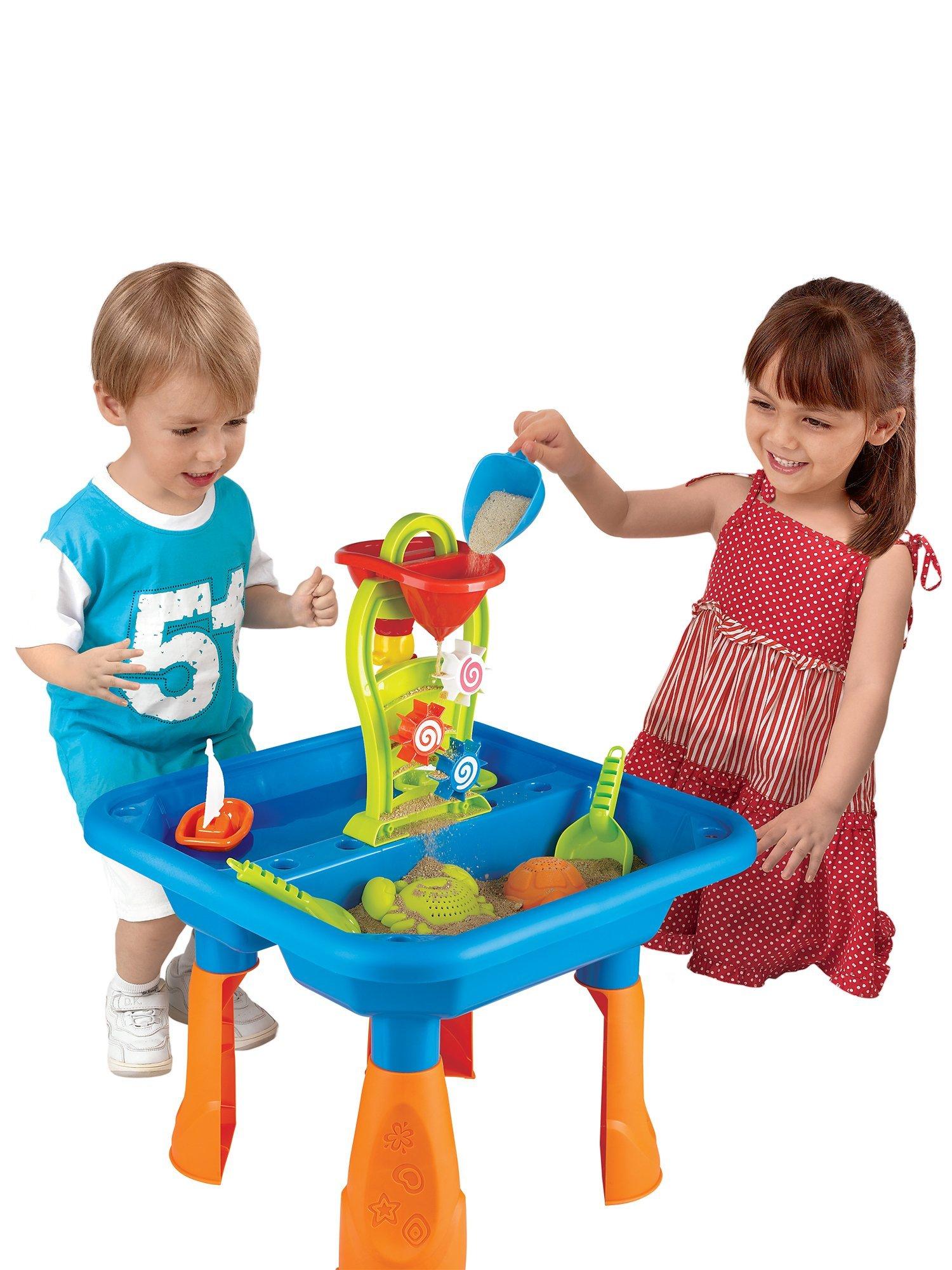 Bring the fun of the beach to your garden with this sturdy play table. Just add sand and water for hours of fun! The dual-basin table has one side for sand, the other for water, and there are several accessories included children can use for added fun.