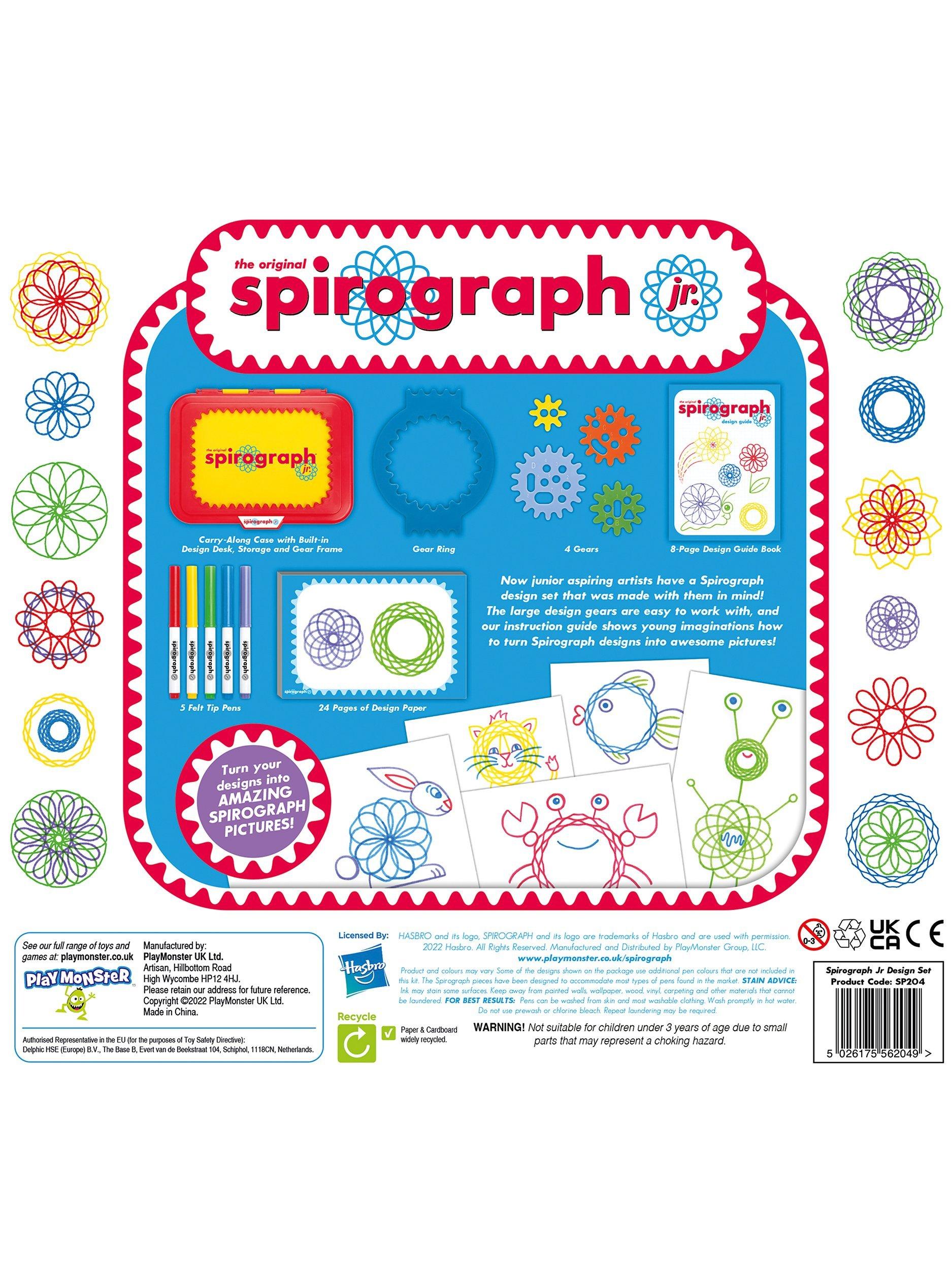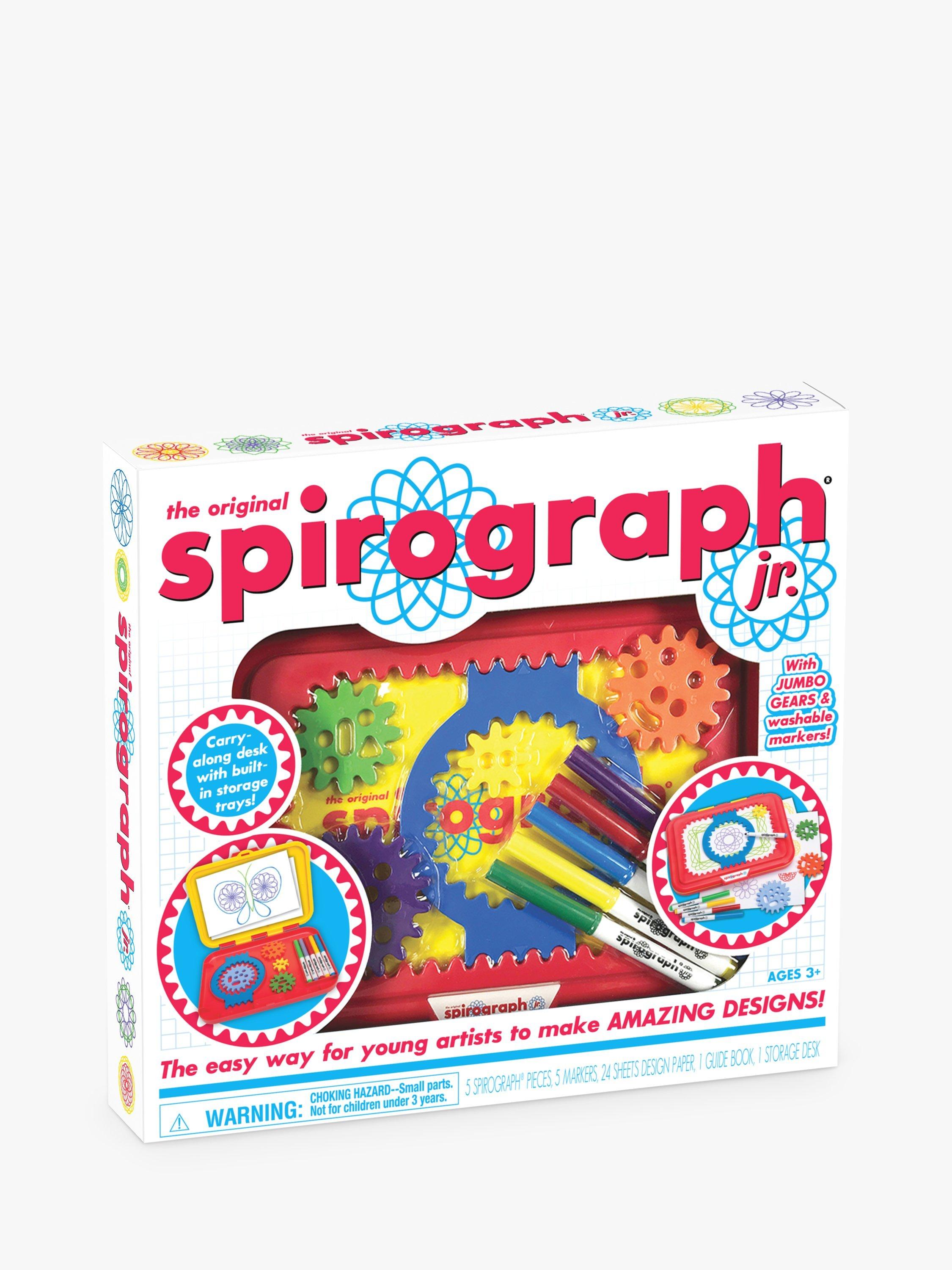 Calling all aspiring artists! Now even the youngest creative minds can make amazing designs with the Spirograph Junior design set! Jumbo-sized pieces make creating Spirograph art fun and easy for little hands, and an easy-to-carry drawing tablet doubles as a work station and handy storage case to keep everything neat.