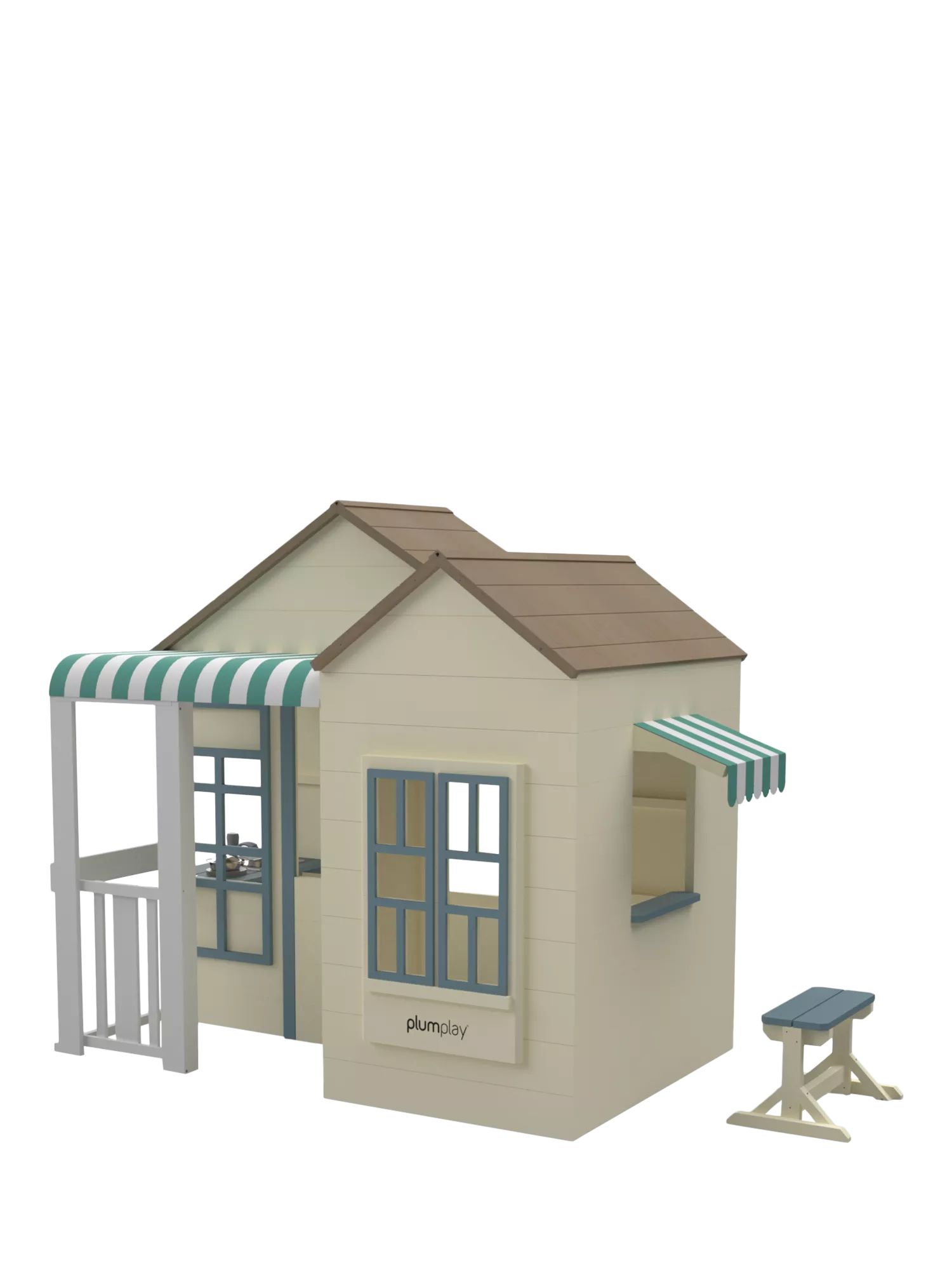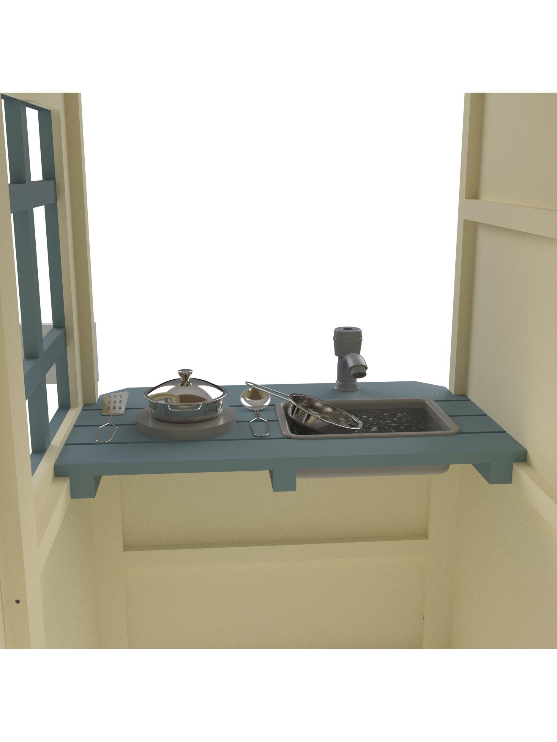Little ones will love welcoming guests through the saloon-style door, serving snacks from the serving hatch with a sun canopy, and hosting picnics at the included picnic bench. Inside, a working tap and imitation pots, pans, and utensils create the perfect setup for budding chefs and imaginative play adventures.