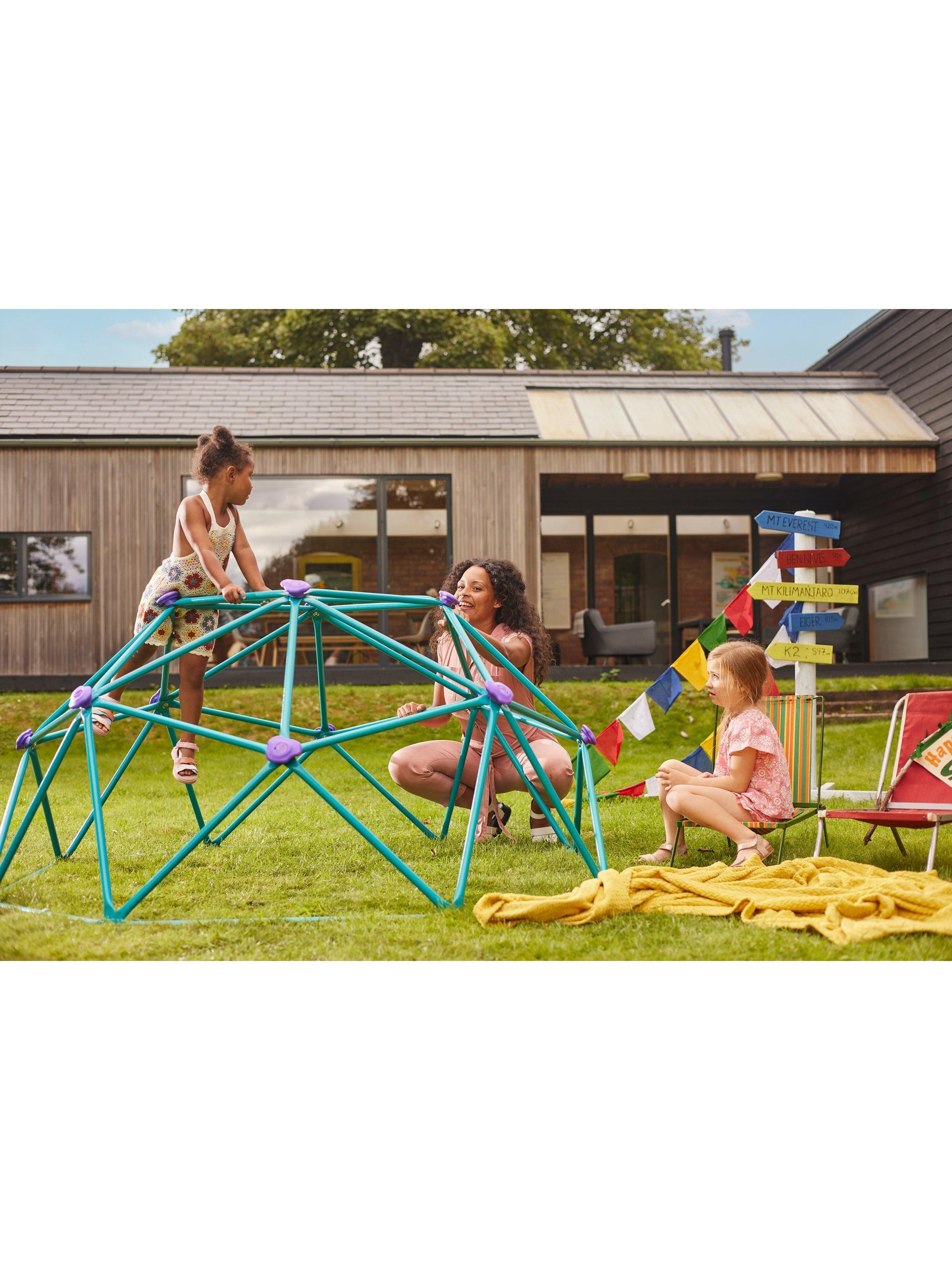 The Plum® Deimos Metal Dome will add a splash of colour to your garden. Inspiring hours of fun and active play for your children as they climb, balance and enjoy an exciting playtime on this geometric frame.