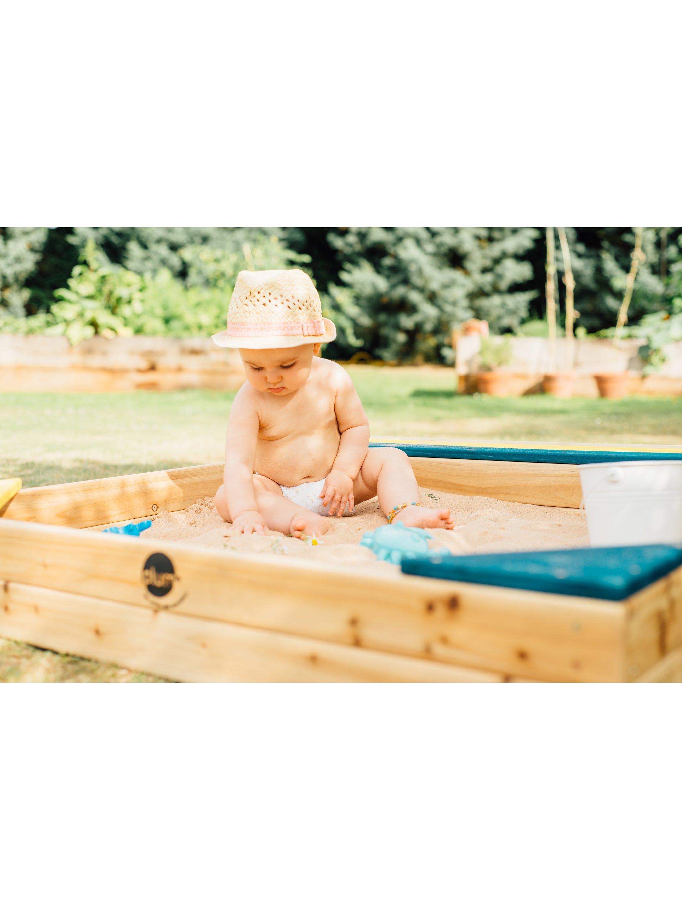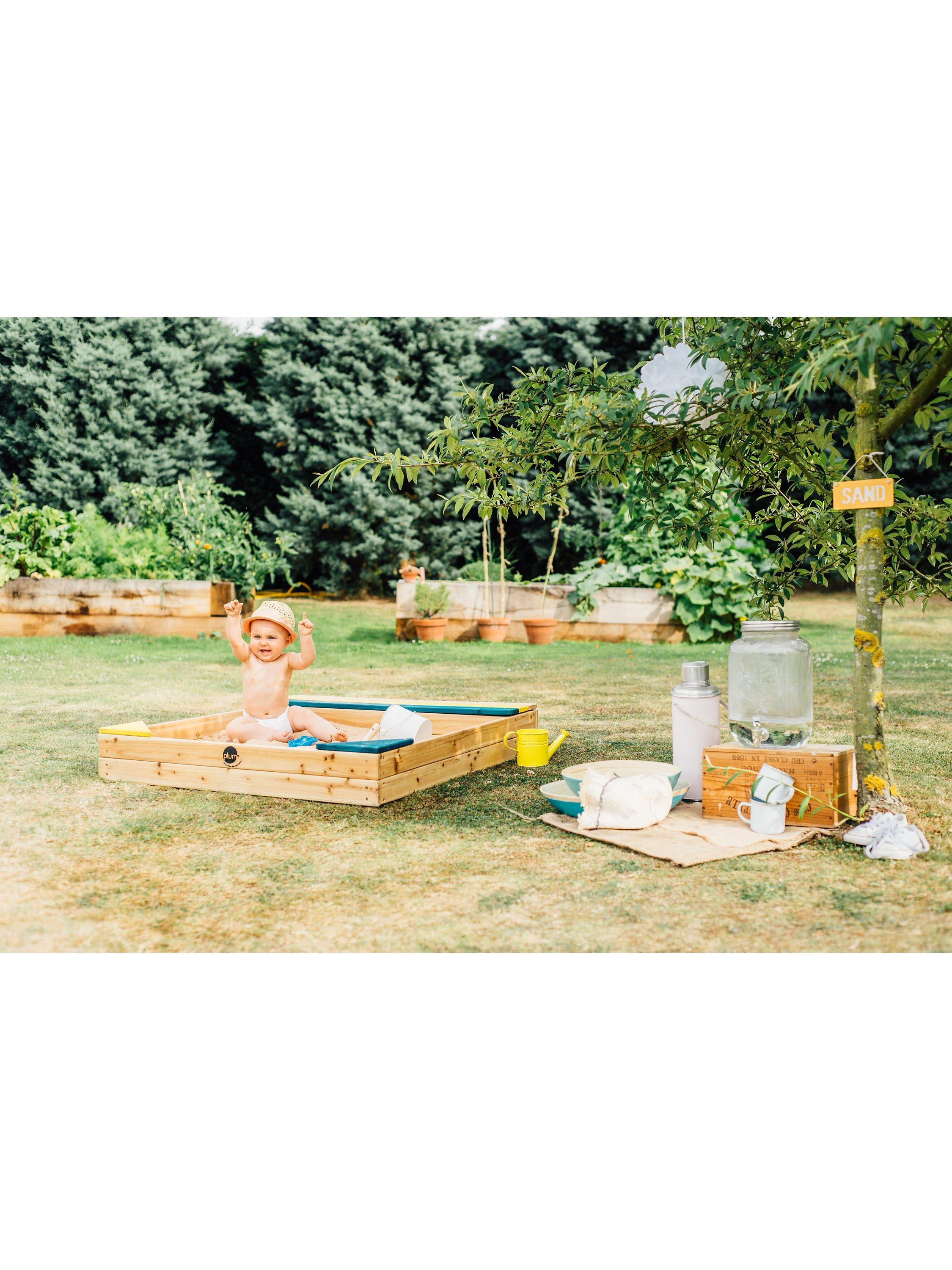 Made from FSC® certified sustainably sourced timber and pressure treated for longevity and durability. The sand pit is easy to assemble and is supplied with a protective cover and ground-sheet. The internal textile ground cover prevents weeds from growing through and allows water to drain out of the box.