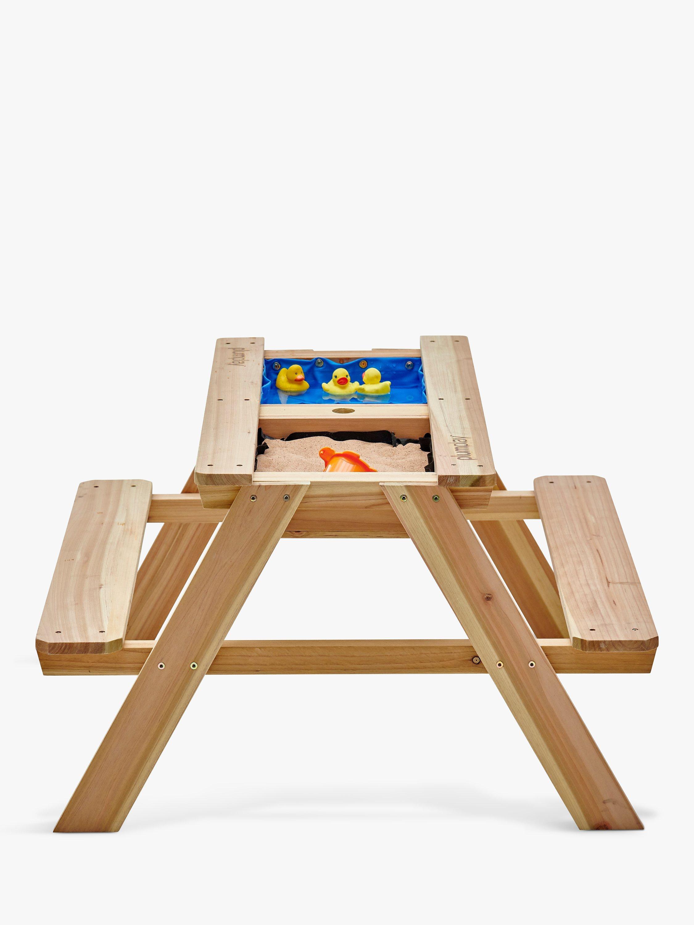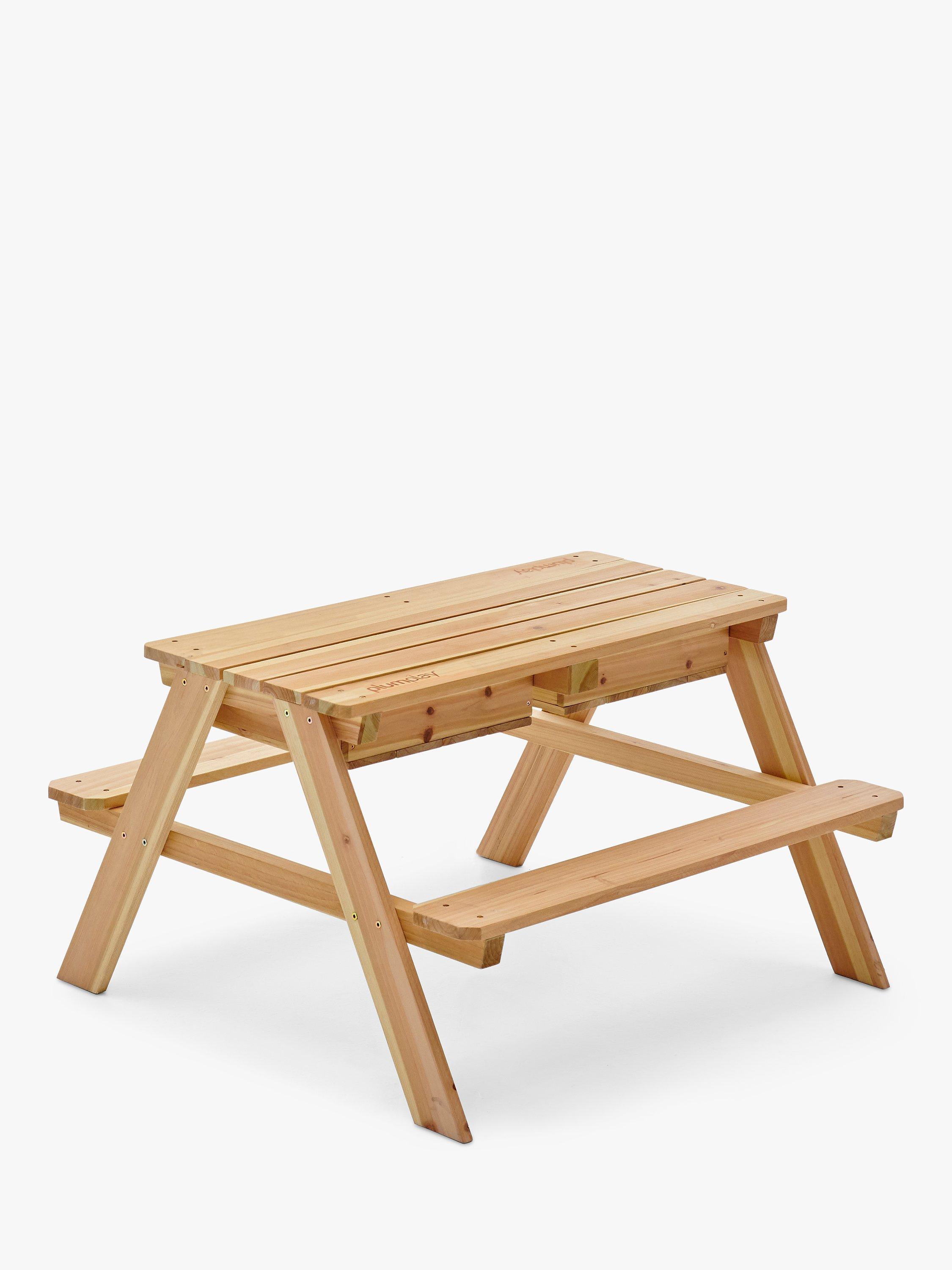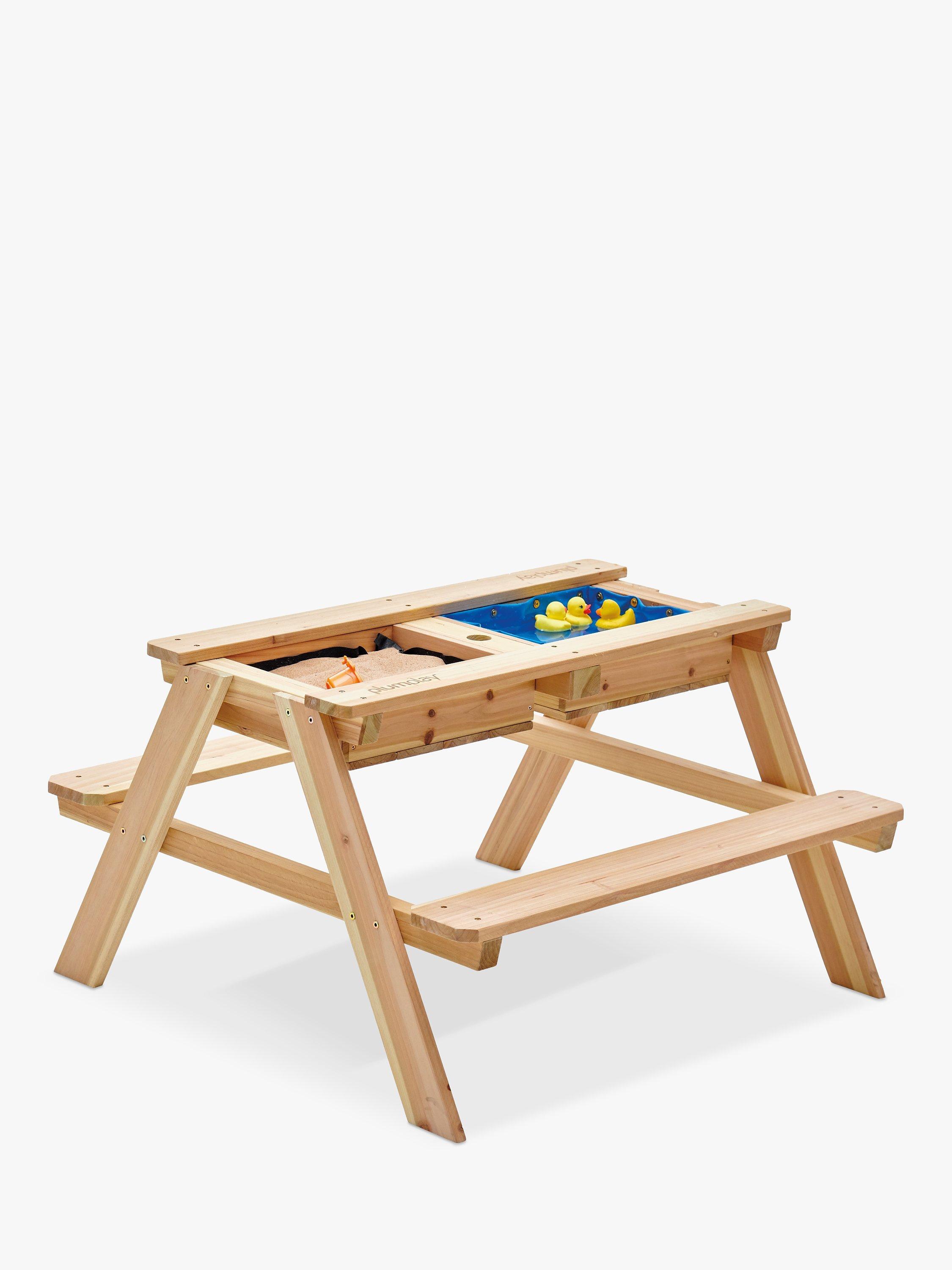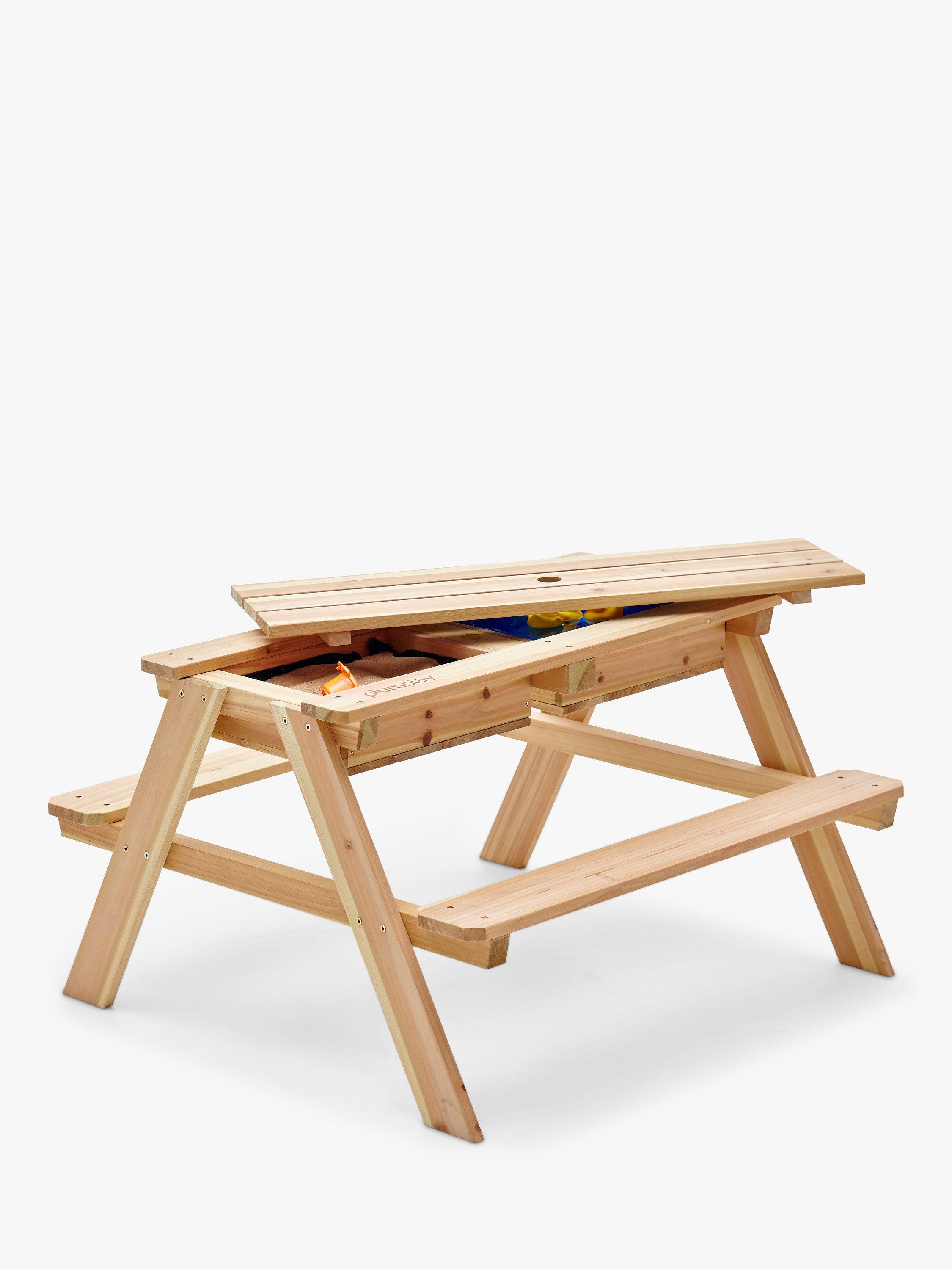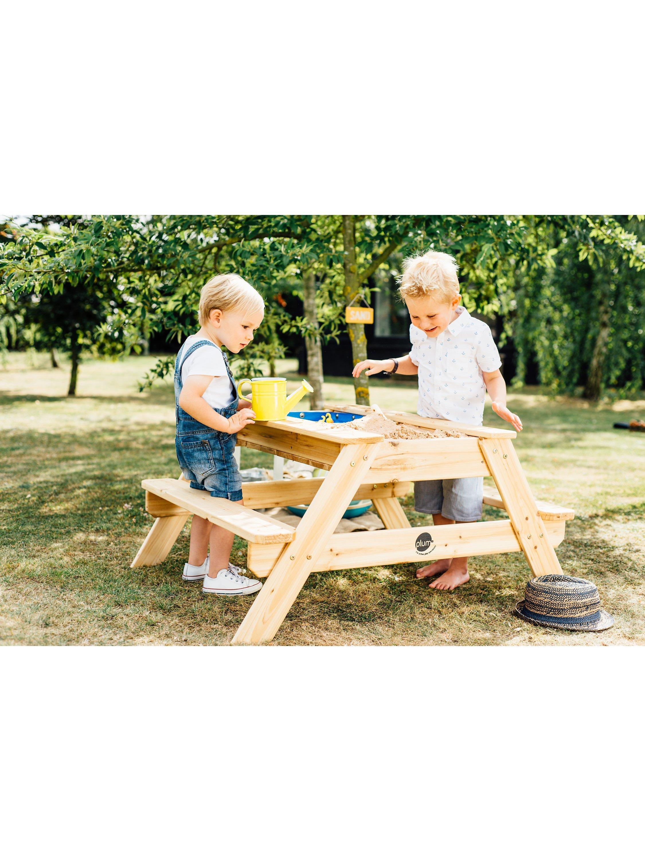 This versatile bench can be used as a picnic table for outdoor eating or for playing games. If you lift the centre wooden panel, you’ll find a sandpit and water compartment nearly contained within the base of the table. Let their creativity run wild by digging and splashing in the sand and water. There's plenty of room for encouraging fun, social play with friends and family.