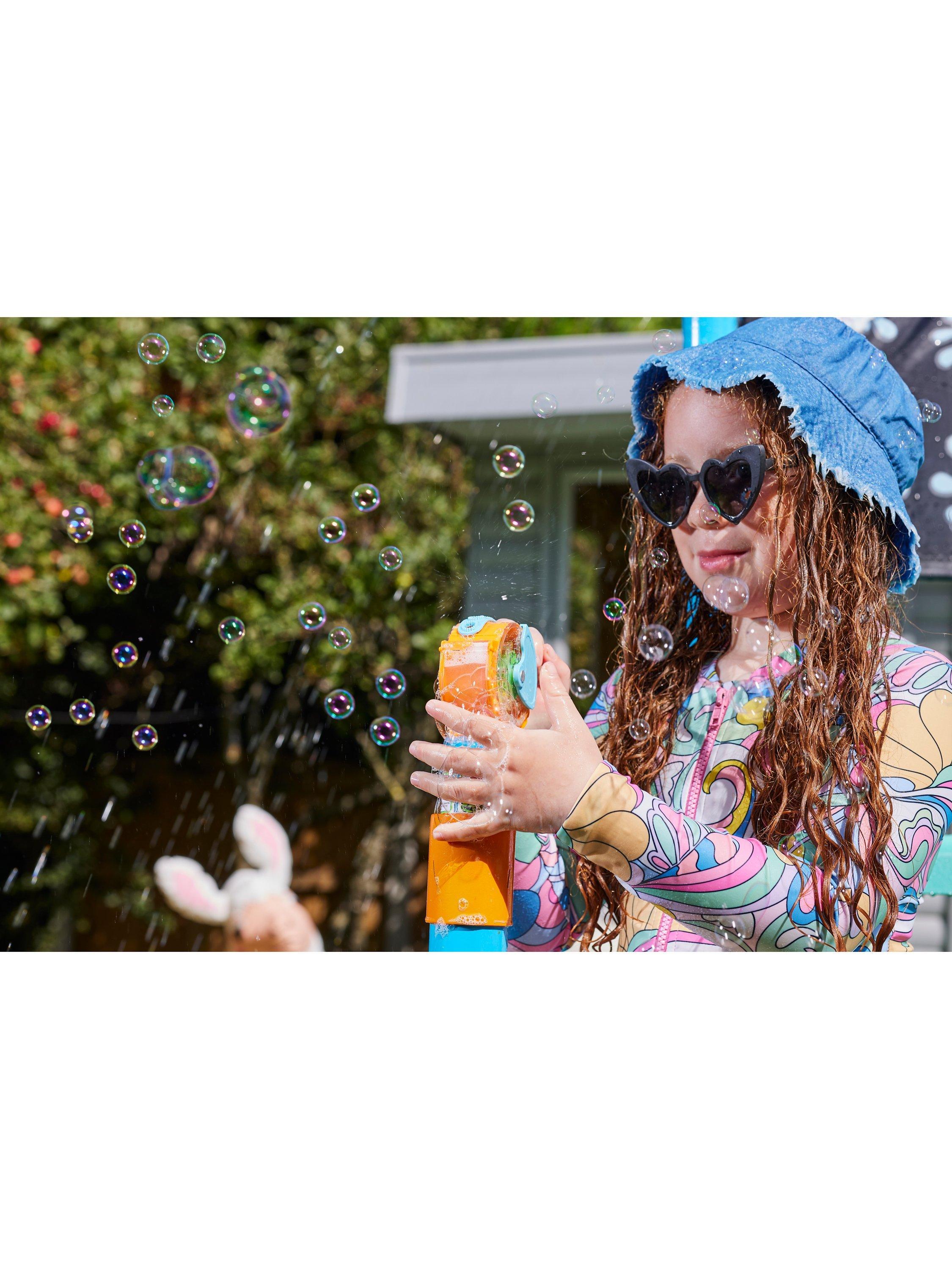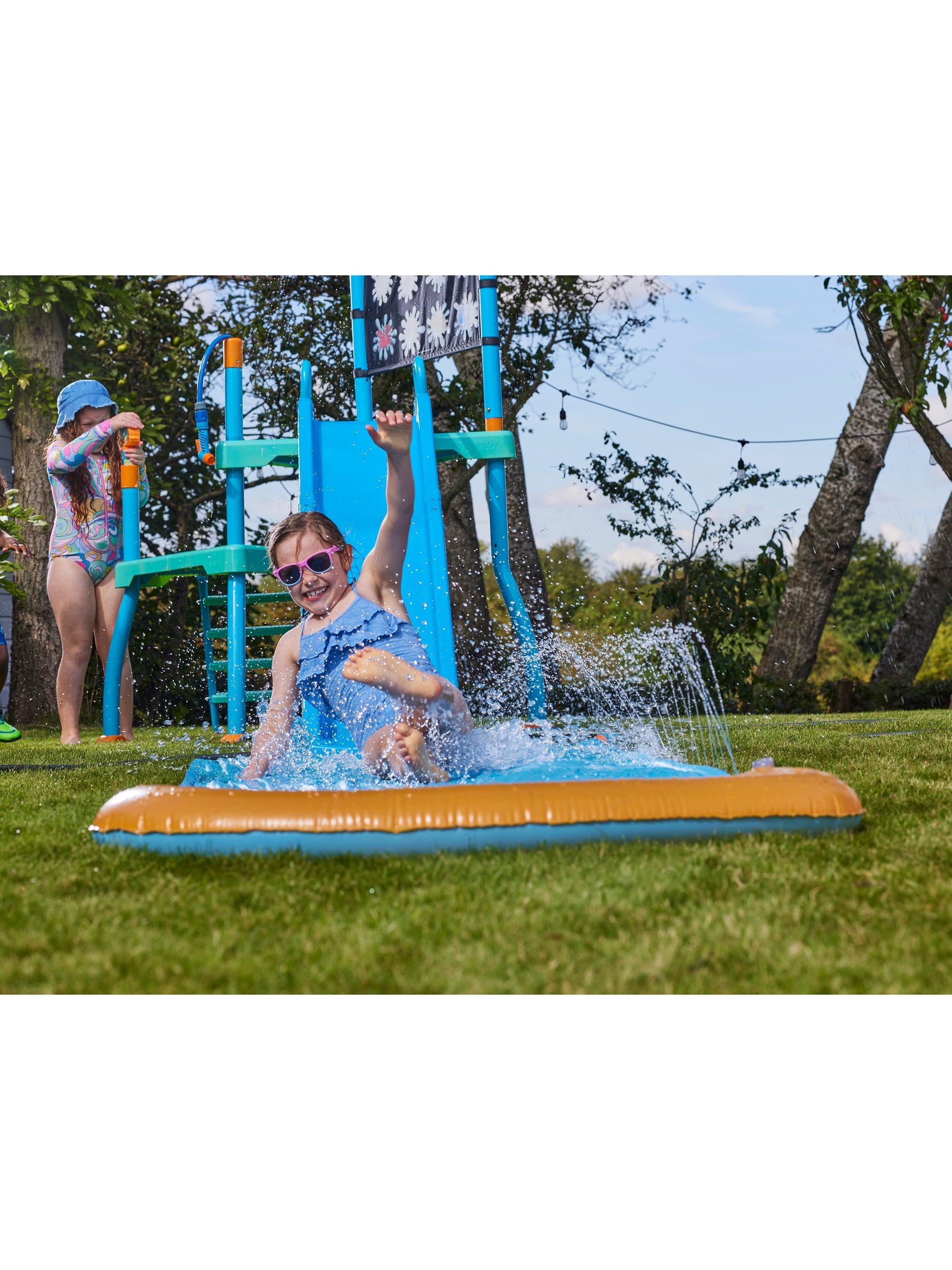 The Shower Tower has four exciting water accessories that promote healthy active play and help children develop their motor skills and coordination. The water blaster is ideal for having water fights with friends or practising aim. The 8-pattern and 3-arm sprinklers help to keep kids cool during hot sunny days, and the bubble blower provides added sensory play. Kids can have even more water play fun with the water reveal colouring wall. Children can learn to recognise their favourite sea creatures by aiming the water blaster at the wall to reveal the underwater animals, bringing learning to playtime. The colouring wall can be used with a paintbrush and water pot when the hose is turned off. Once they have finished playing on the platforms, kids can swoop down the 6ft water slide and along the 3m water chute, complete with sprinklers to ensure a full soaking!