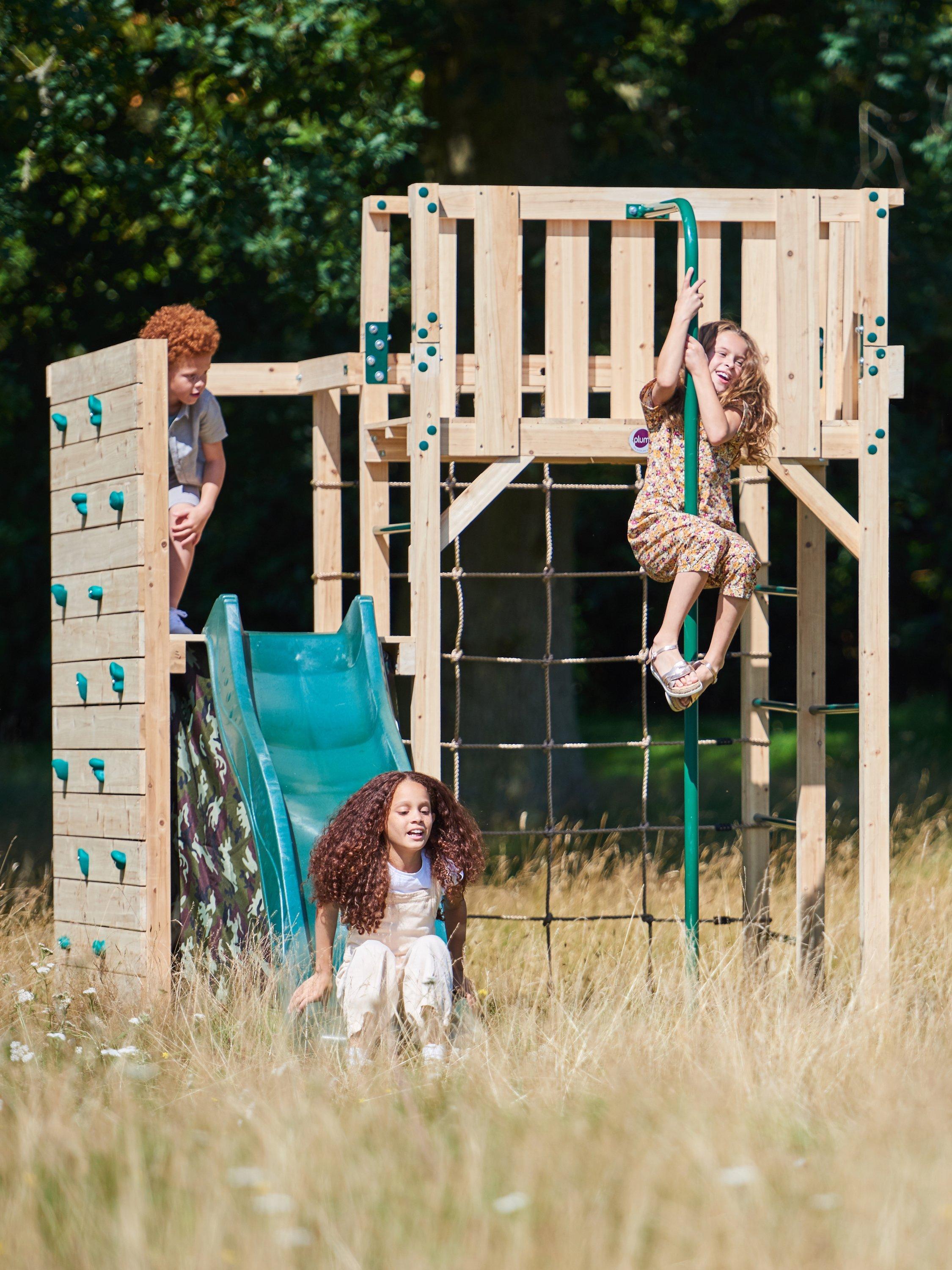 The unique Plum® Wooden Climbing Cube XL offers action-packed activities and 360-degree garden play. Looking for a playcentre for climbing, swinging, sliding and hiding? The Cube XL has everything you need to keep the kids entertained in energy-burning fun and developing confidence through physical play.