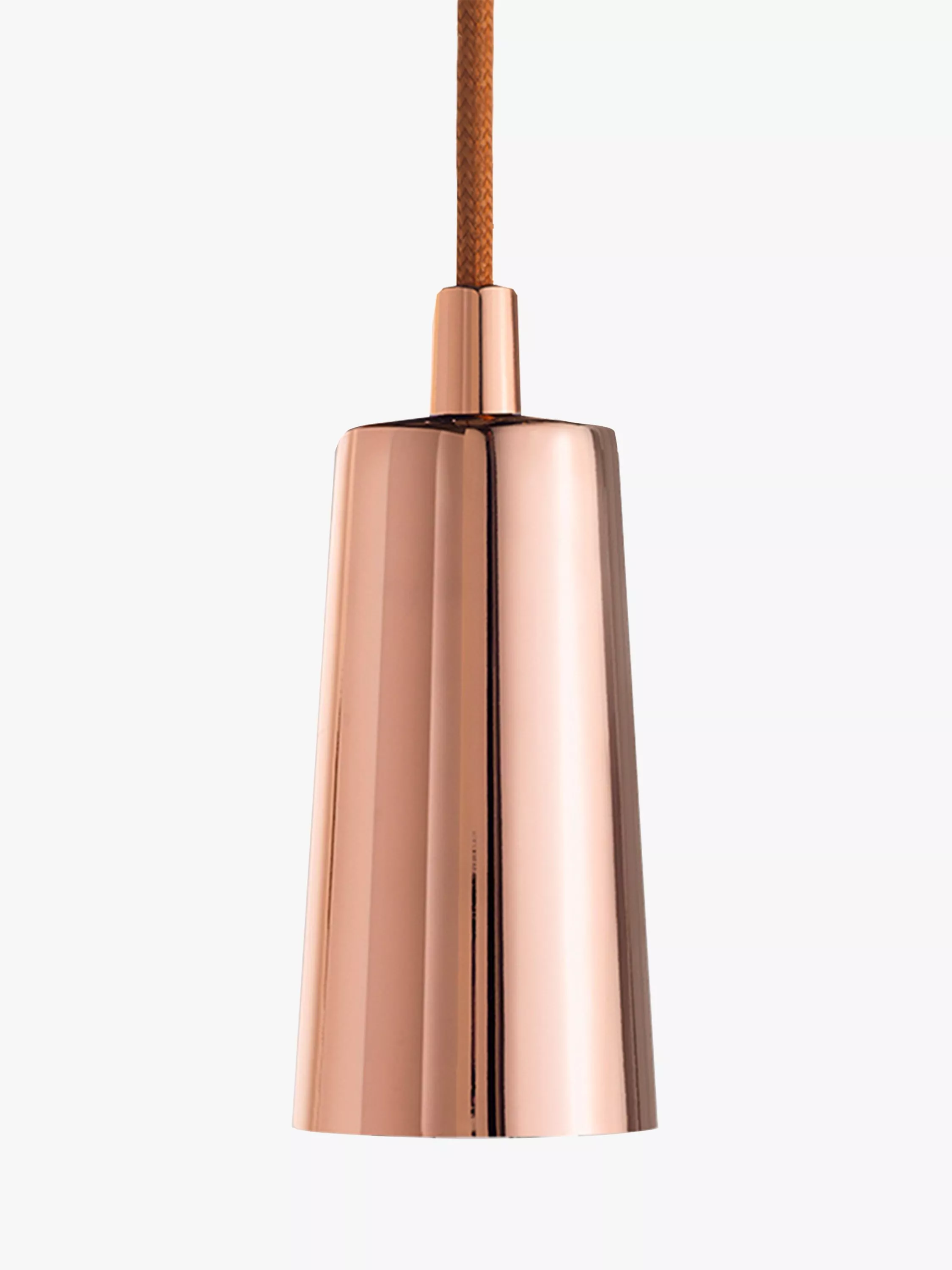 Plumen's brass plated metal ES pendant light is complete with a fabric covered flex, it's ideal to use with the Plumen decorative bulb which you can purchase separately. Max 2m cord.