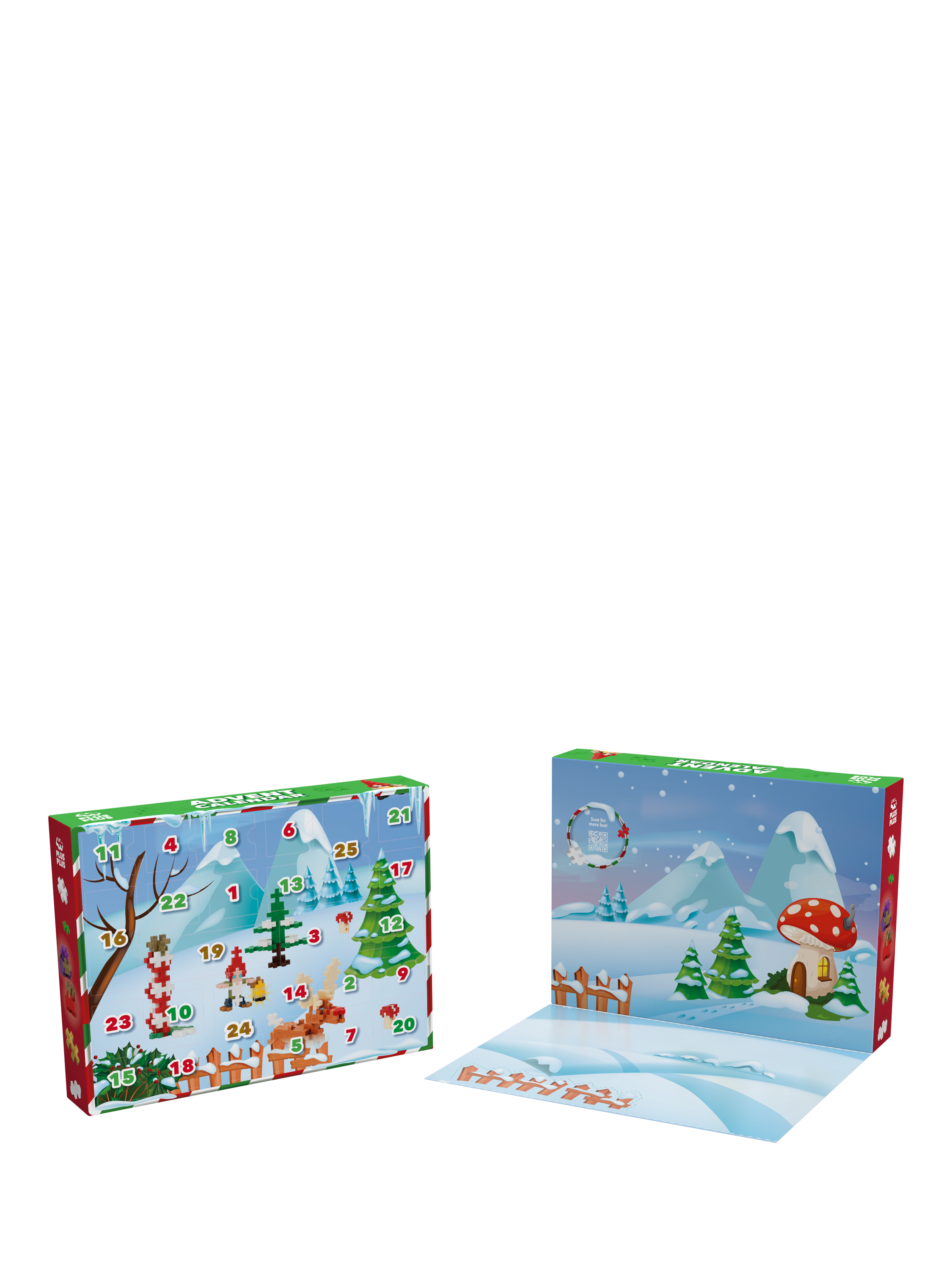 With the Plus-Plus Advent Calendar, you'll discover Santa's imaginative world of forest elves, snow foxes, Christmas trees, and, of course, Father Christmas himself with his reindeer and sleigh. Each window hides a secret building guide and a handful of Plus-Plus pieces to create the surprise of the day.