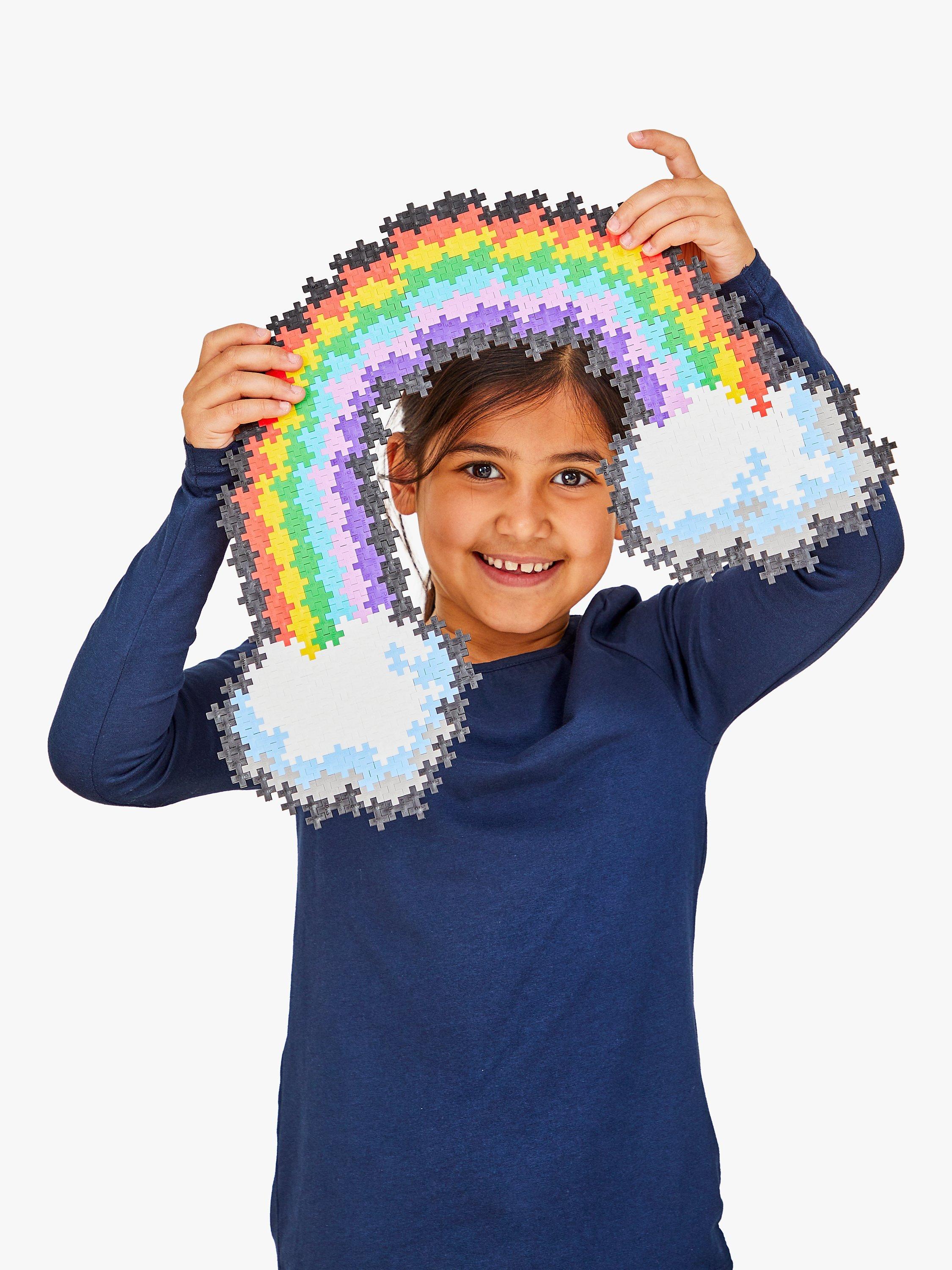 Puzzle by Numbers combines fun play with learning. Match colours and numbers to build a mosaic creation. The rainbow set comes with 500 pieces to make a rainbow with clouds.