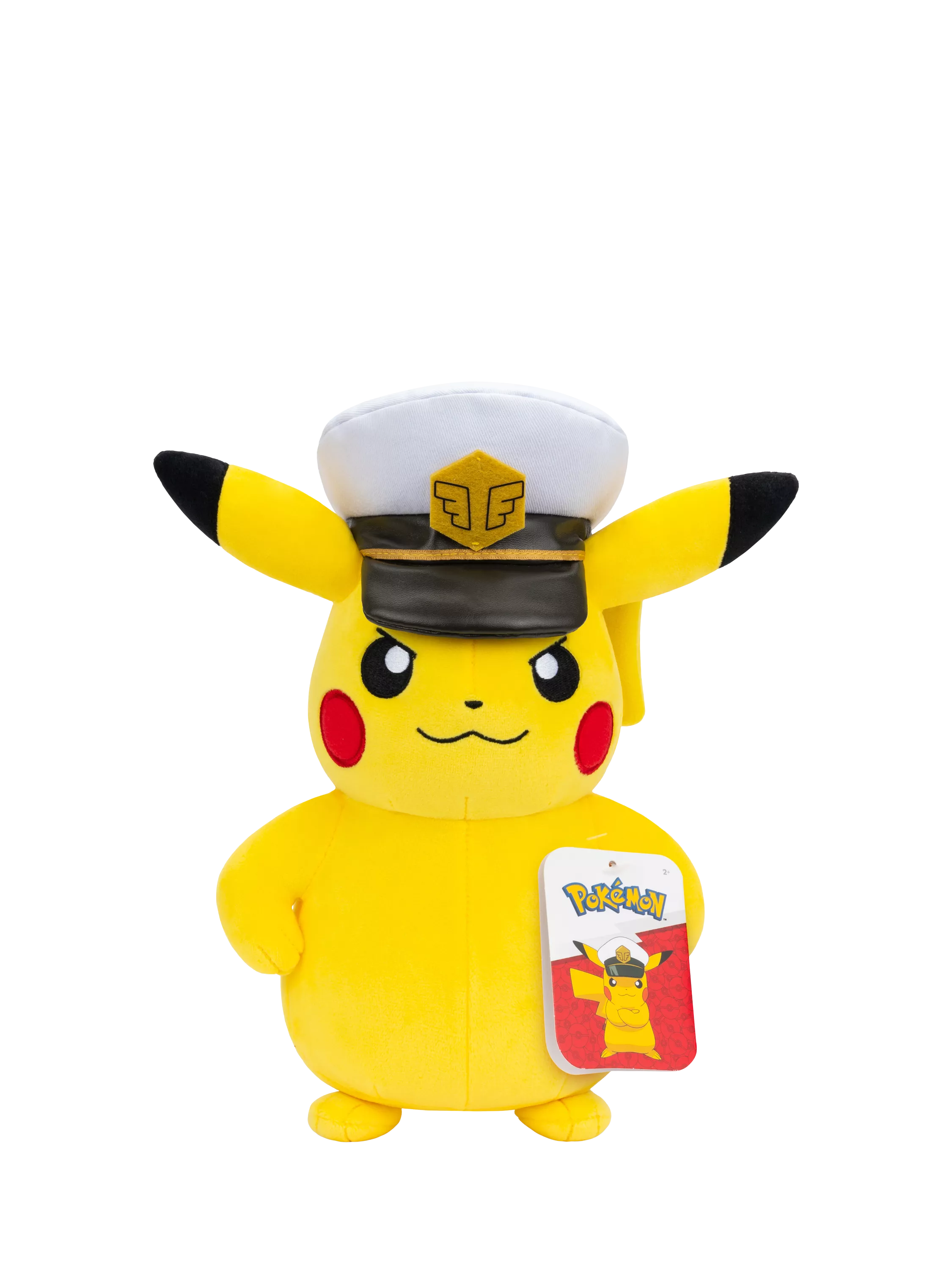 Get ready to set sail with Captain Pikachu! This snuggly 8-inch Pokémon plush is based on Professor Friede’s intrepid partner and wears a special captain’s hat. Featuring authentic details, this popular Electric-type looks like it jumped right out of the smash-hit Pokémon Animated Series. Collect other 8-inch Pokémon plush and build your own unique team. Officially licensed Pokémon product from Jazwares. Ages 2+