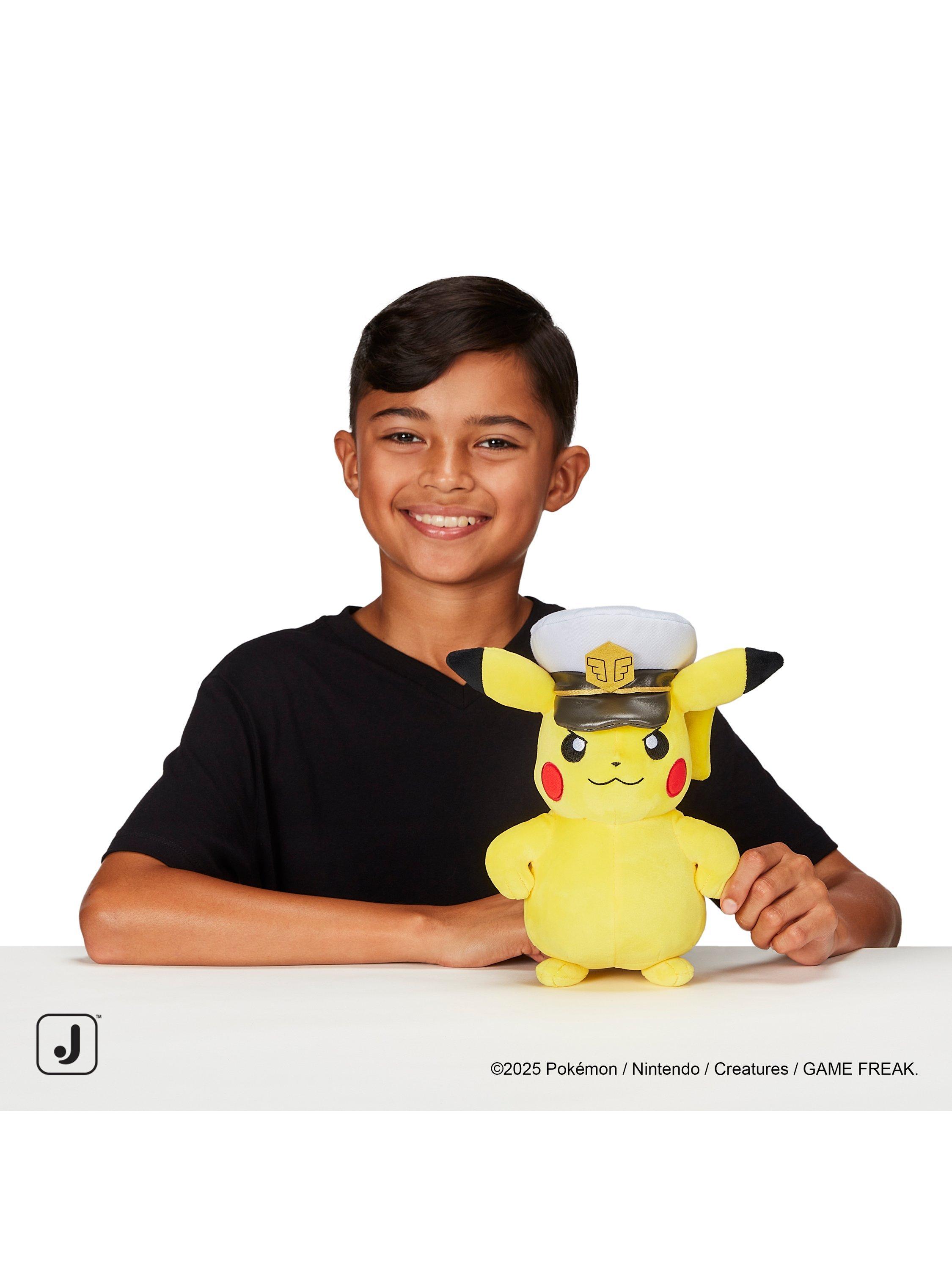 Get ready to set sail with Captain Pikachu! This snuggly 8-inch (20cm) Pokémon plush is based on Professor Friede's intrepid partner and wears a special captain's hat. Featuring authentic details, this popular Electric-type looks like it jumped right out of the smash-hit Pokémon Animated Series. Collect other 8-inch Pokémon plush and build your own unique team. Officially licensed Pokémon product from Jazwares. Suitable for ages 2 and over.