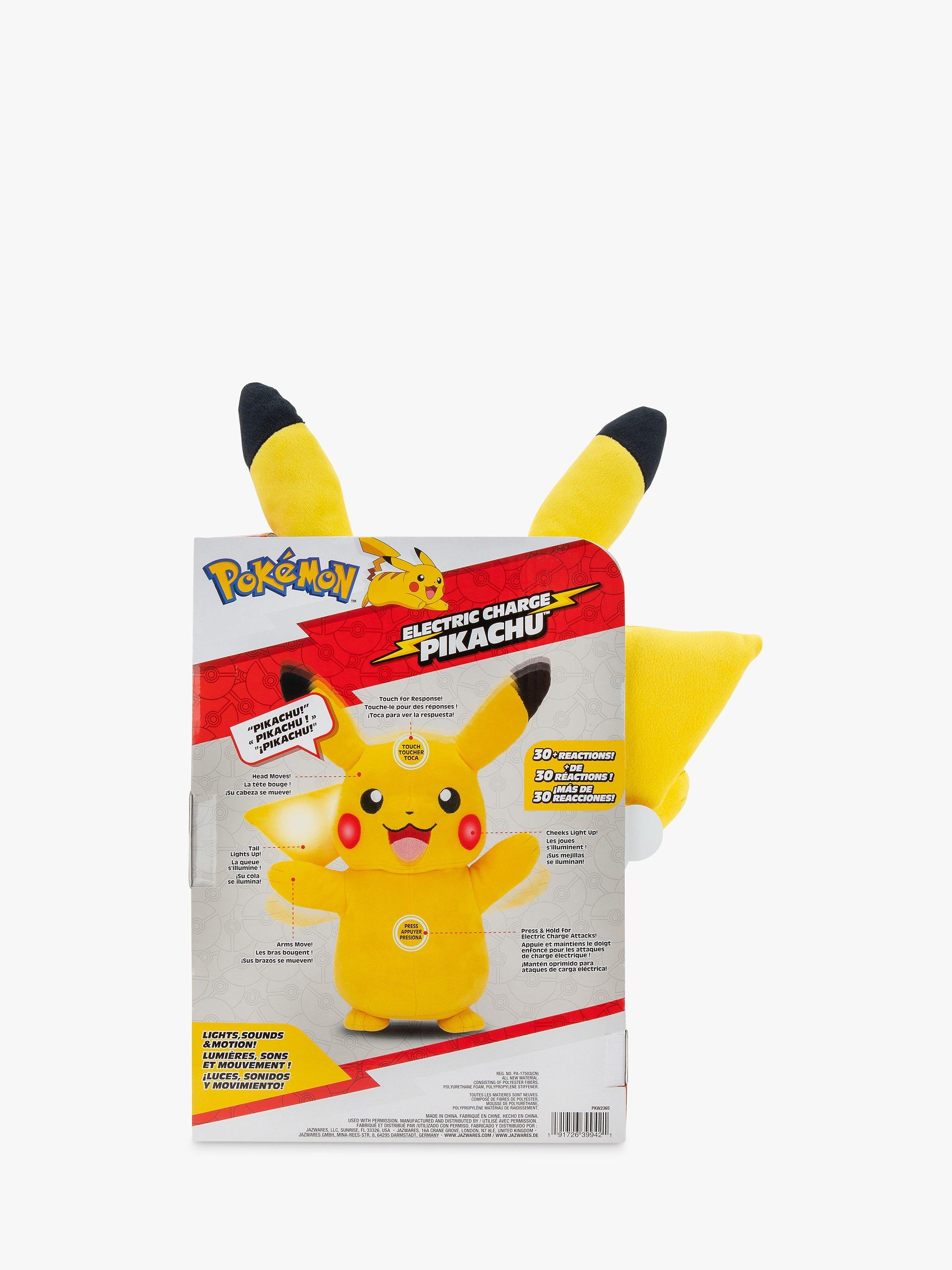 Charge up your Pokémon training with Pikachu! When you want to bond and snuggle with this super soft plush, rub its head and it will talk. When you're ready to train for battle, hold its tummy to release a thunder attack. The longer you hold, the more powerful the attack.