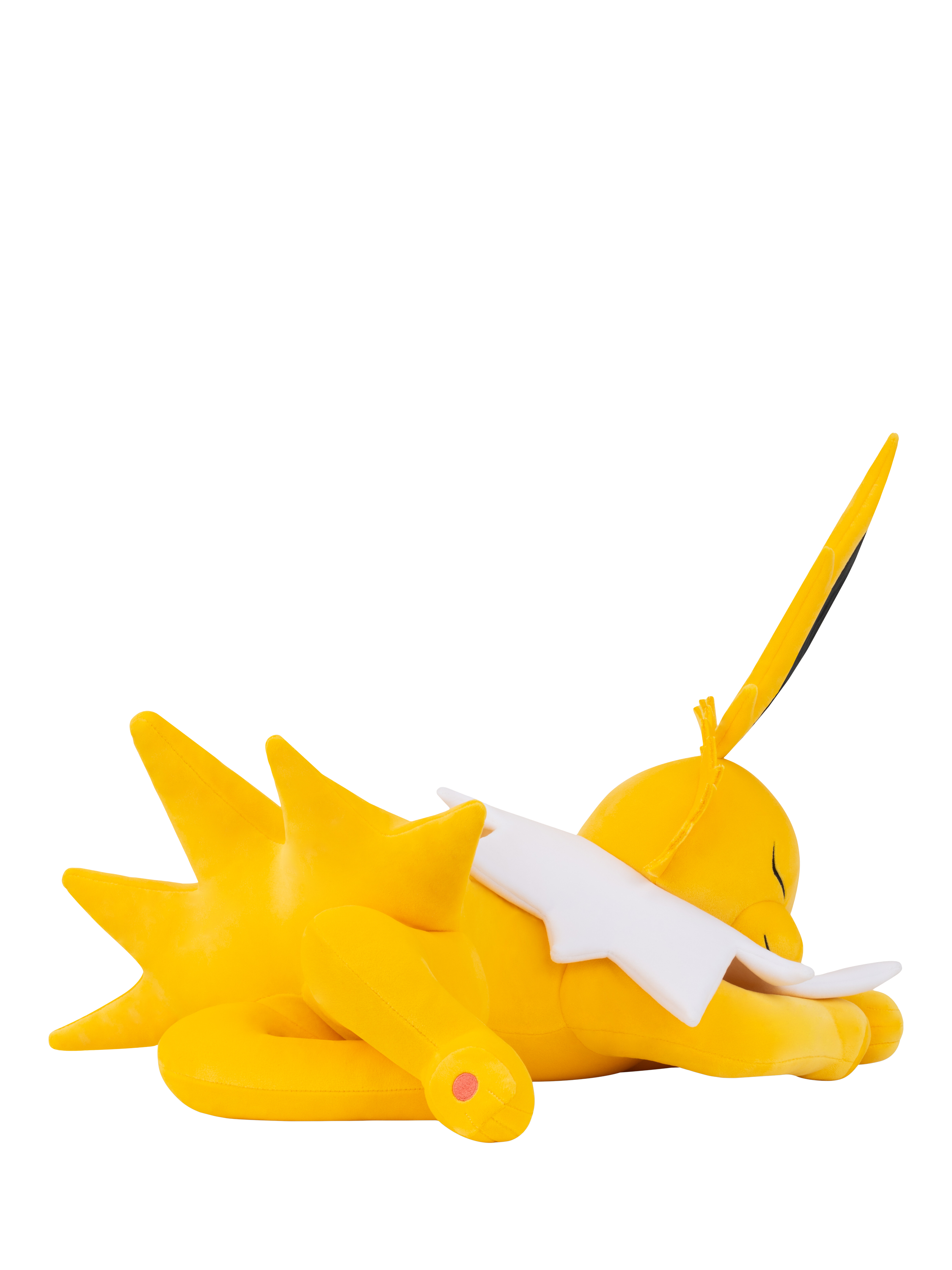 Choose to snooze with Jolteon, the Lightning Pokémon. This supersized plush rounds out at 45cm and is splayed in a unique sleeping posture. It’s also super soft and made with unique material that’s perfect for cuddling.
