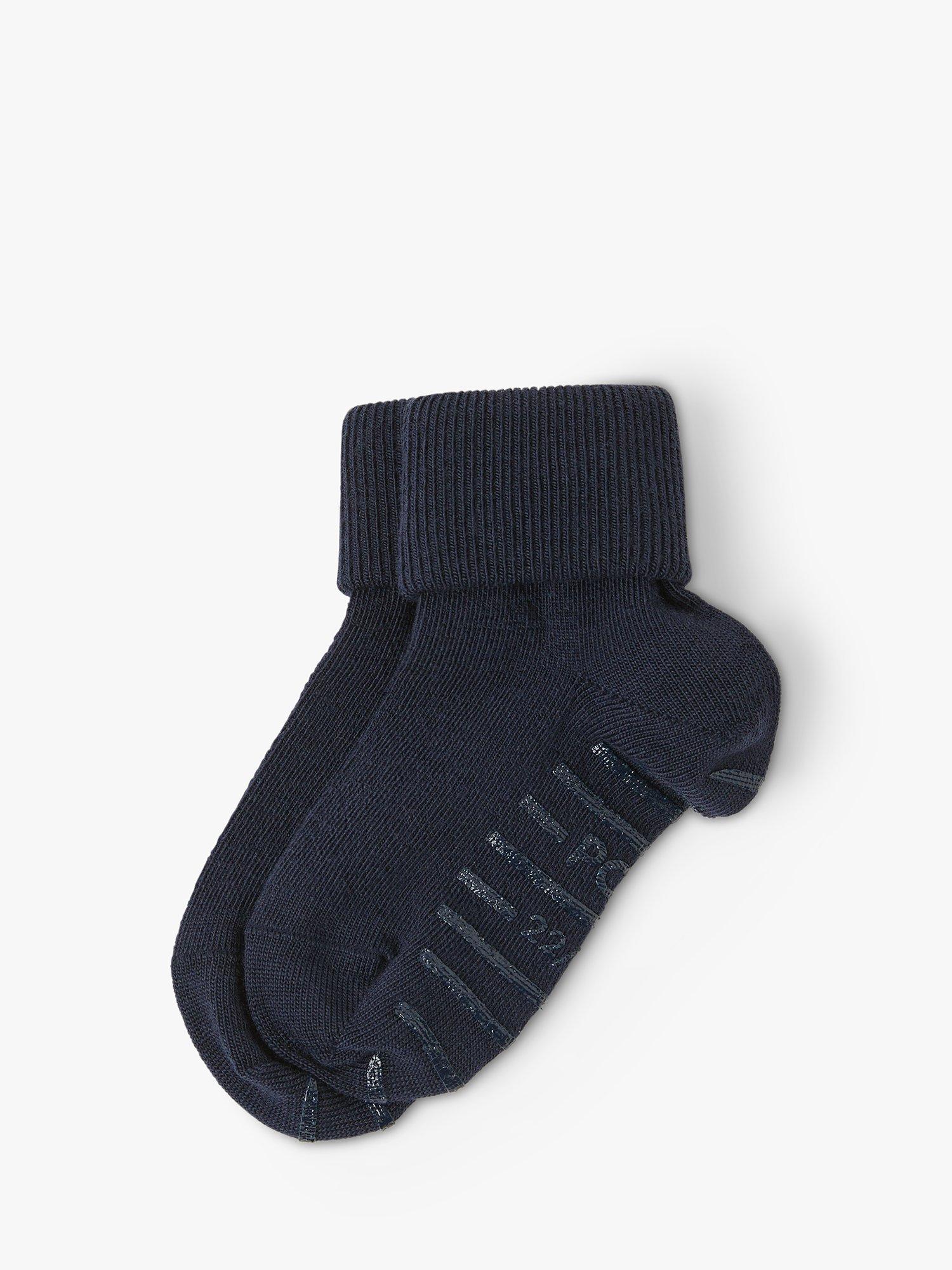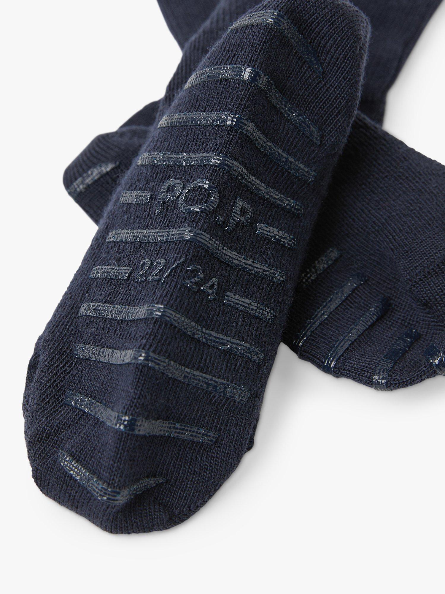 These essential socks from Polarn O. Pyret are ideal for wearing around the house. They have smart fitted feet and a generous elasticated cuff to make sure they stay up. The anti-slip logo on the base is ideal for wooden and laminated surfaces, making these a great choice lounging at home.