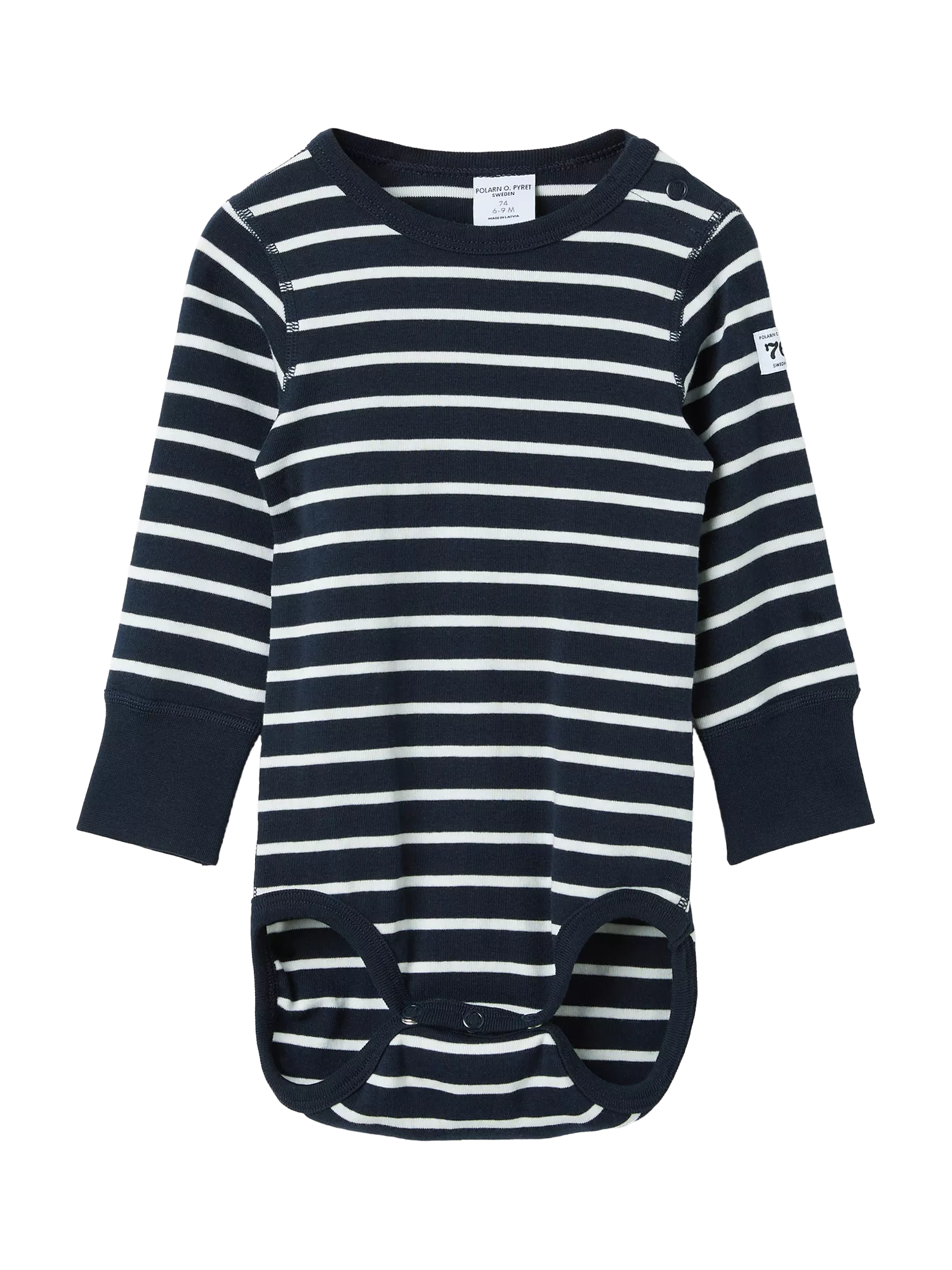 Polarn O. PyretBaby GOTS Organic Cotton Stripe Long Sleeve Bodysuit, Blue, 18-24 months