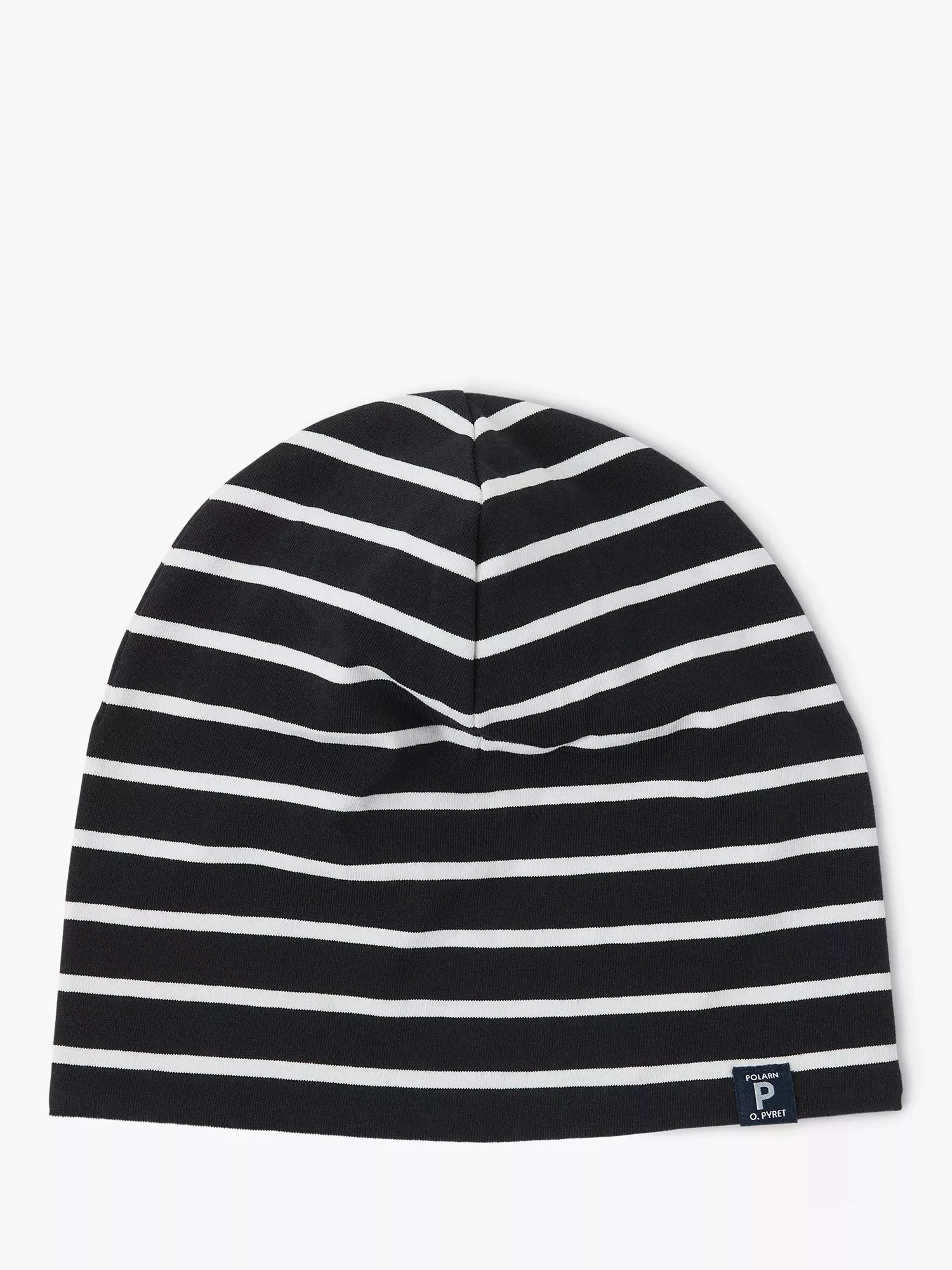 Keep warm this season with this organic cotton beanie hat with soft recycled fleece lining. Patterned with classic stripes this cosy hat will finish their outfit in style.