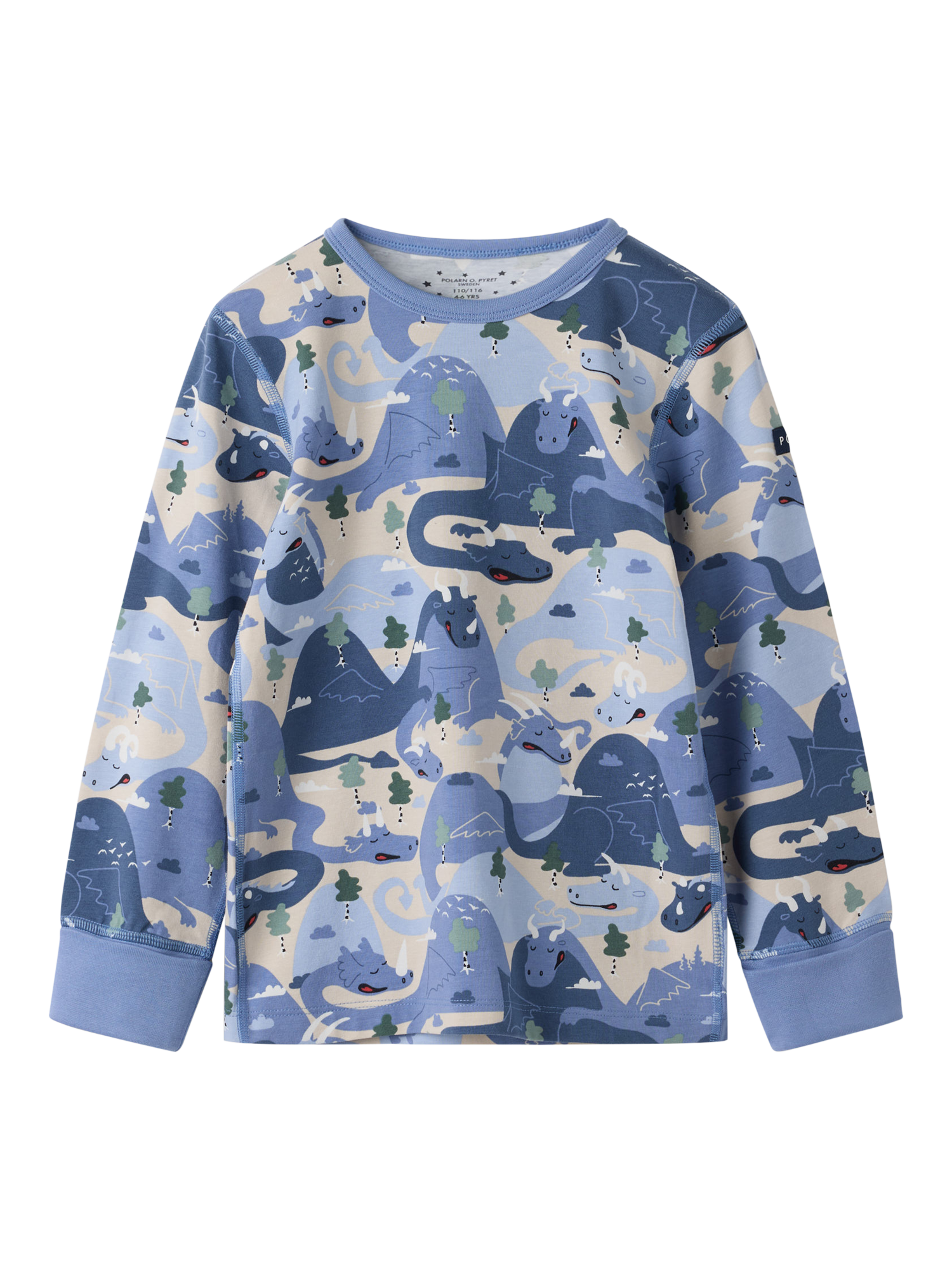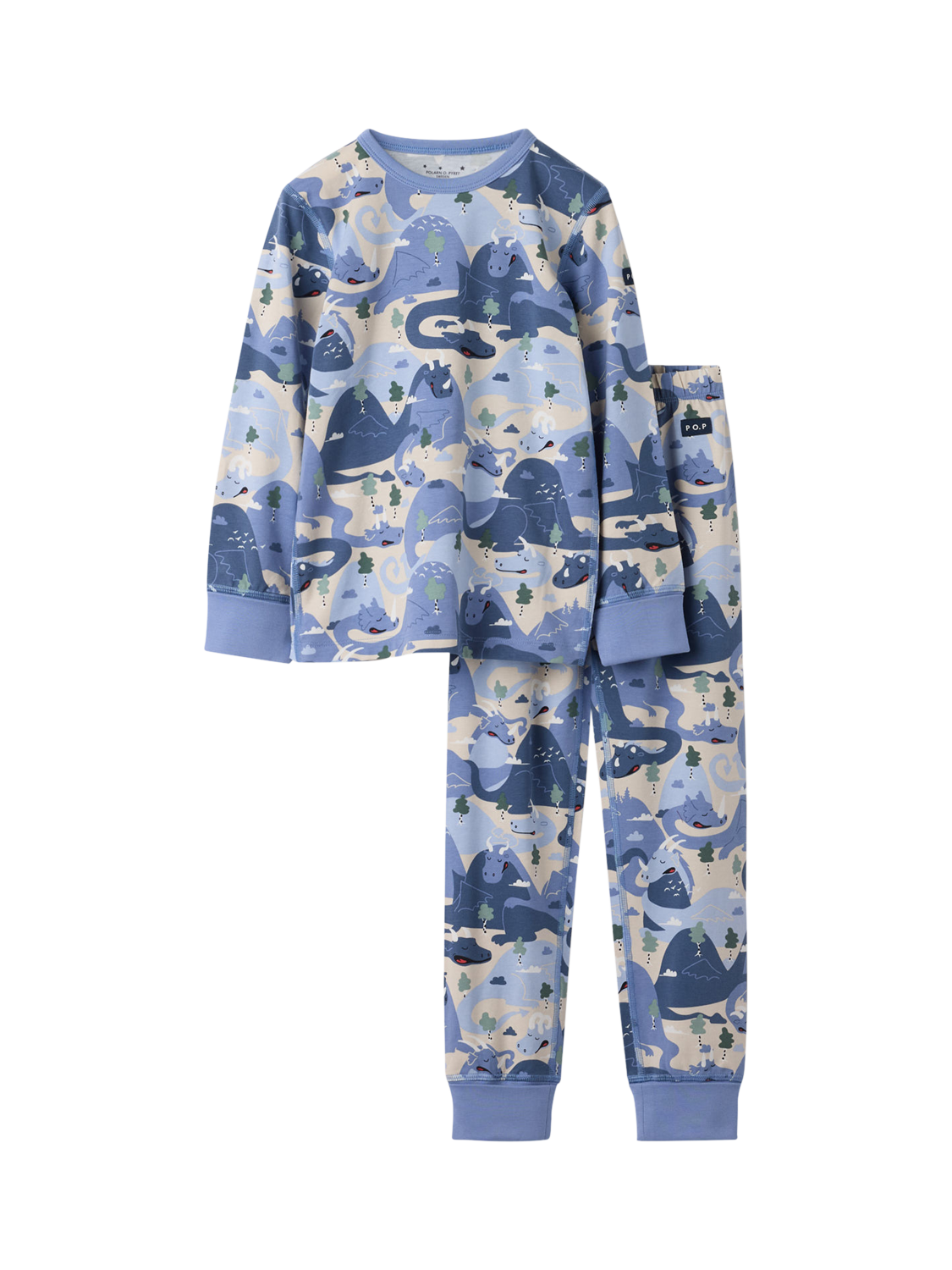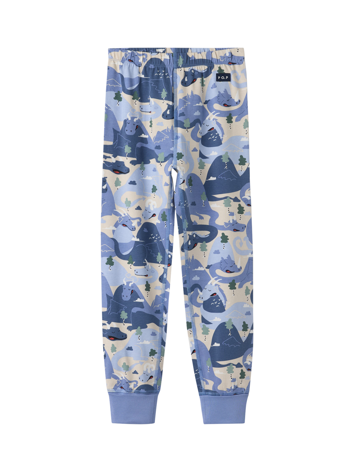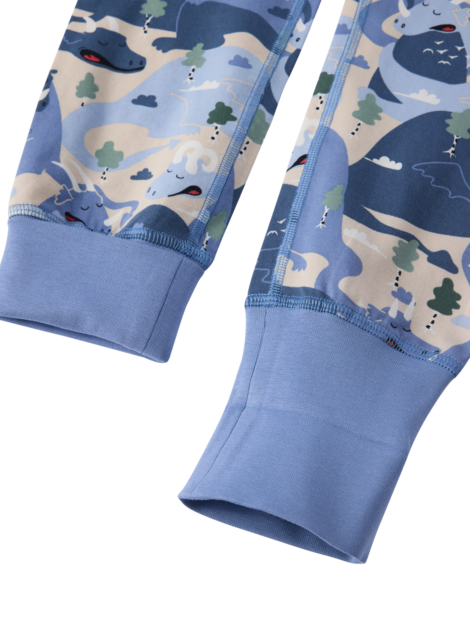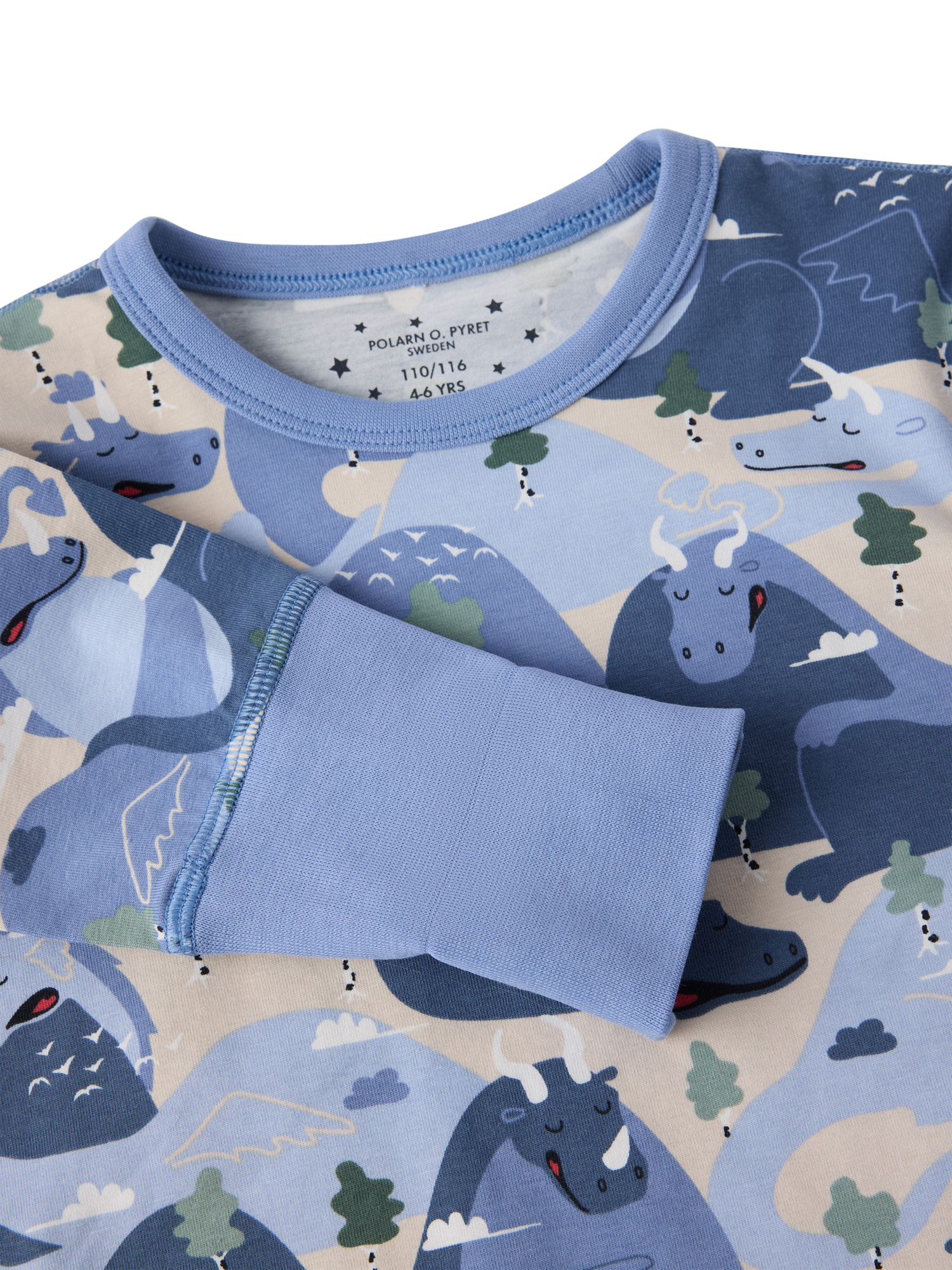 Two-piece pyjamas in soft cotton. The top has long sleeves with extra-long cuffs that can be folded up or down. The bottoms have an elastic waist and extra-long ankle cuffs.