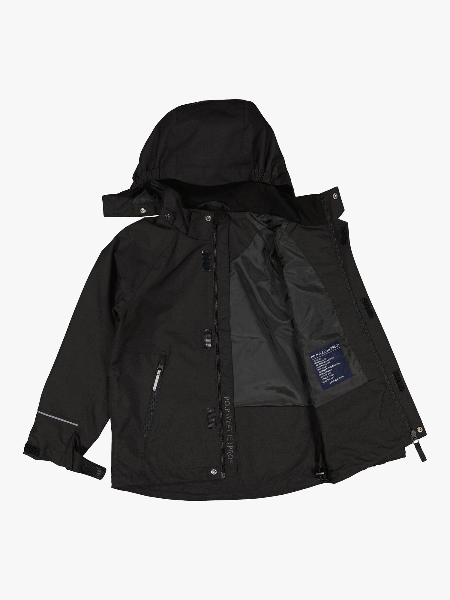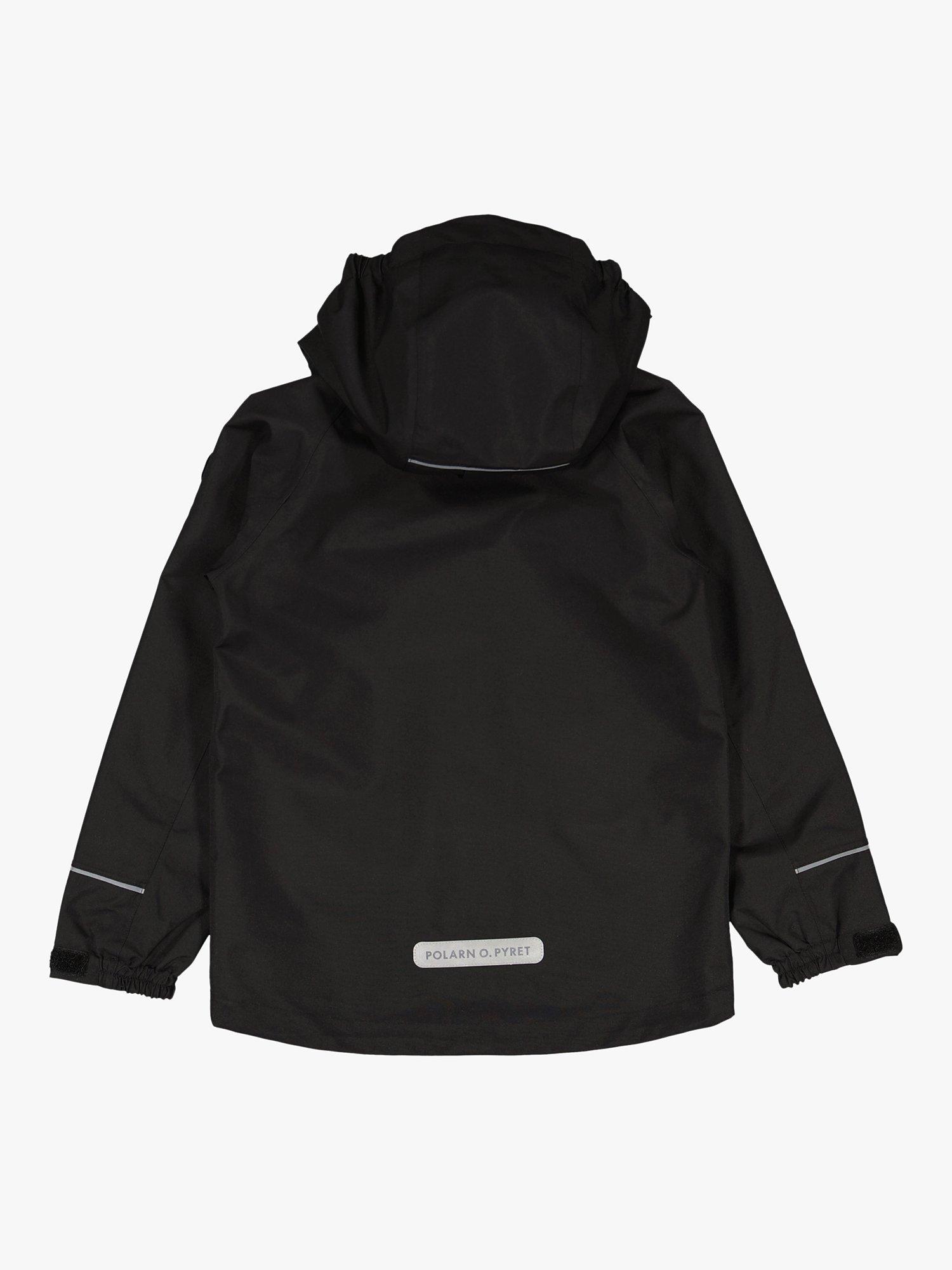 The shell jacket is soft, slick and made of wind and waterproof fabric that's durable with good breathability. With a tone-on-tone-coloured lining in 100% recycled polyester and a detachable hood that can be attached with snaps, the hood is also adjustable and has elastic at the sides. detailed with reinforced fabric at the back and sleeve cuffs, the cuffs are also elastic and can be adjusted with riptape. The pre-shaped sleeves allow for a perfect fit while the taped seams make the jacket completely waterproof, and the storm flap on the outside and inside of the zipper provides extra protection against cold air and wet weather.