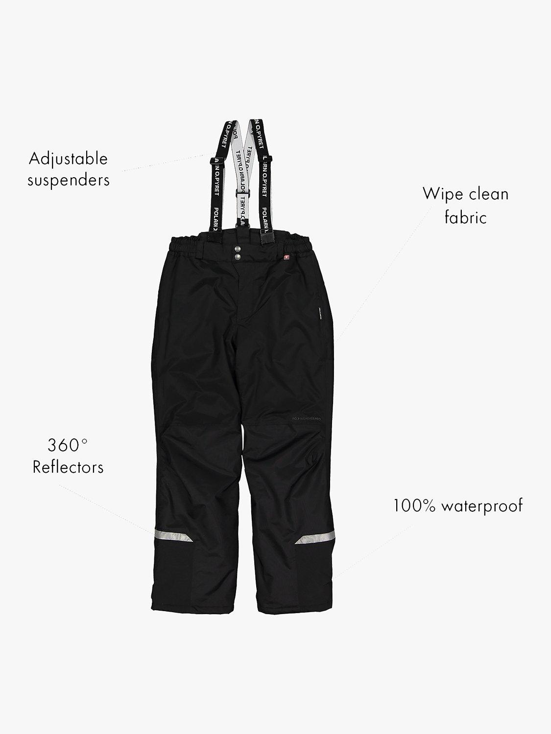 These wind and waterproof shell trousers from Polarn O. Pyret come with good breathability in a durable material with reinforced knees, seat and inner cuffs.