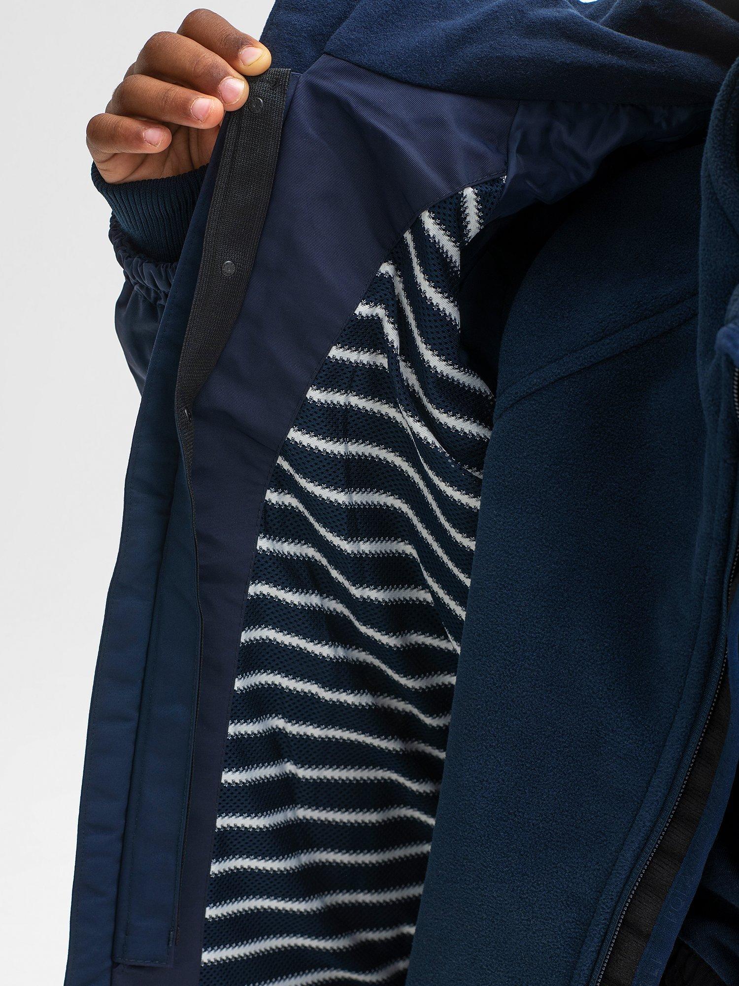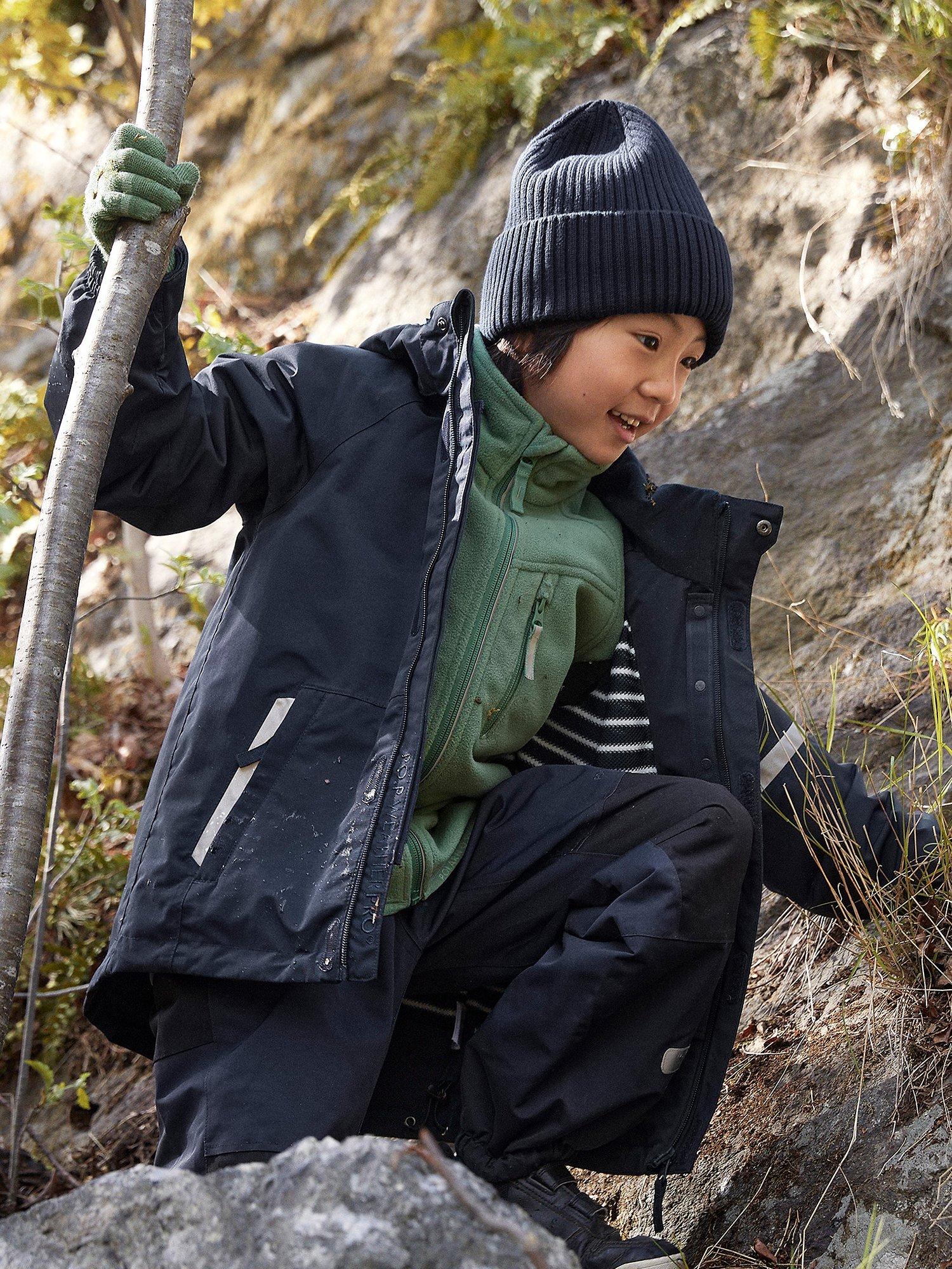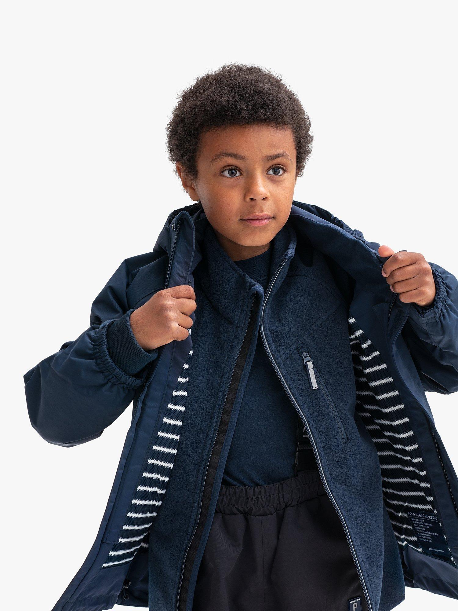 Torrential rain is no match for this wind and waterproof shell jacket from Swedish outerwear specialist Polarn O. Pyret. Made in durable fabric with striped mesh lining, this functional coat attaches to the Polarn O. Pyret fleece jacket (sold separately) to provide a warmer coat in winter, a great year-round solution.