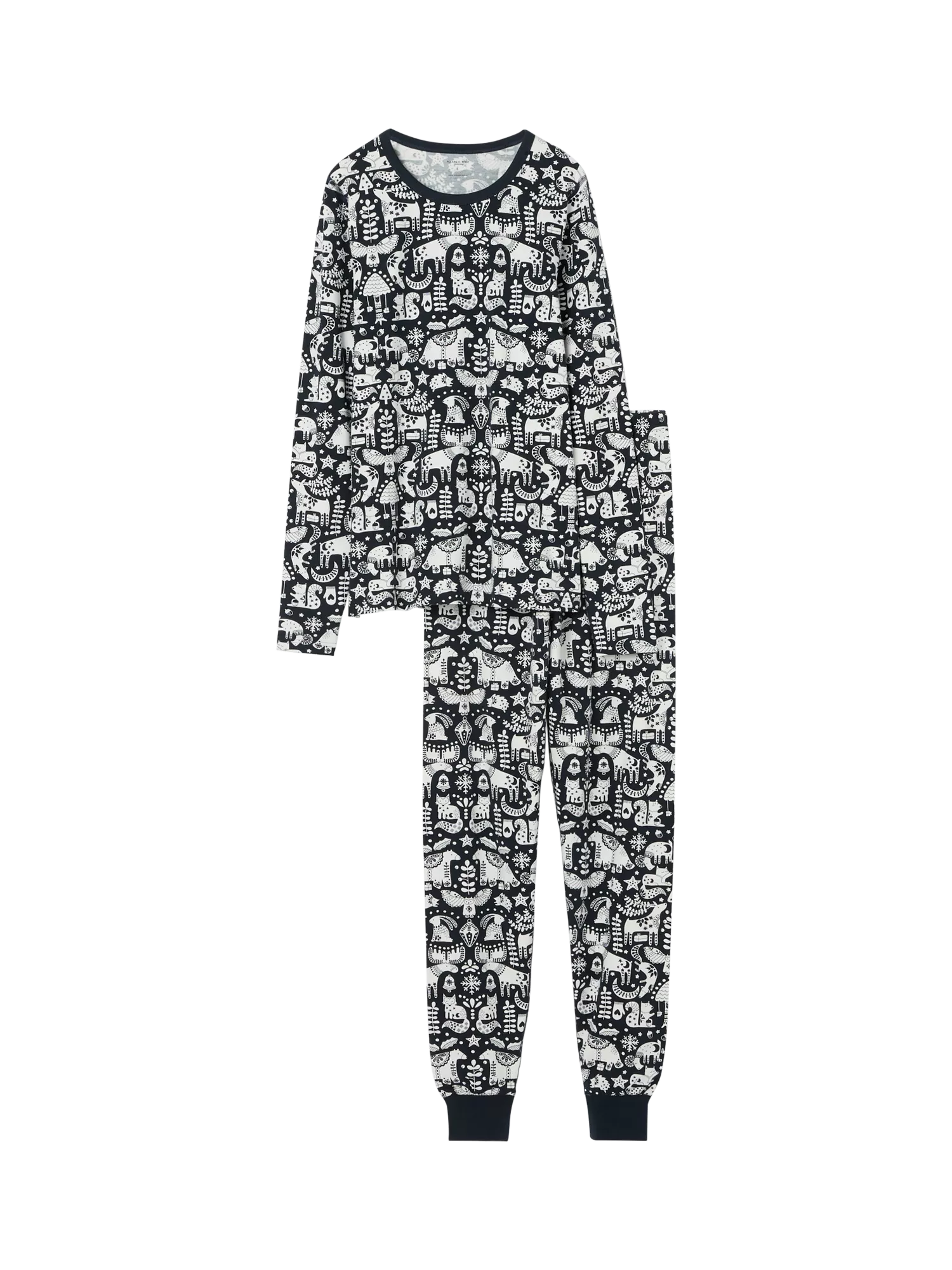 Sweet dreams are guaranteed in these soft organic cotton pyjamas. The long sleeve top has a seasonal Nordic animal print and comfy crew neck while the matching bottoms have an elasticated waistband for a comfortable fit.