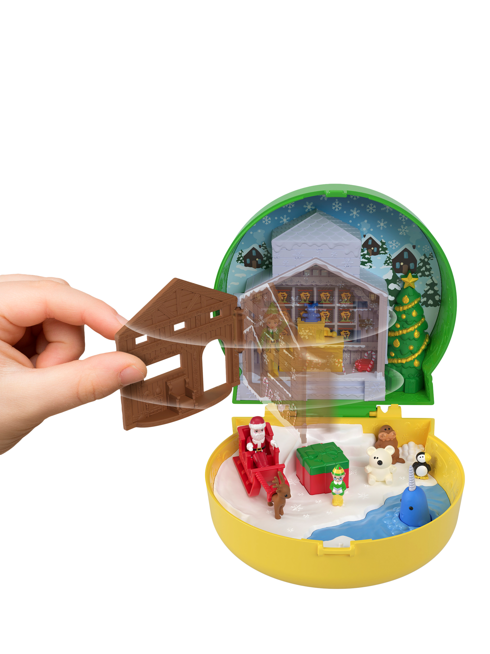 Play in the snow with animal friends before hopping on Santa's sleigh to deliver presents. This festive partnership is ideal for Polly Pocket and Elf fans alike. Colours and decorations may vary.