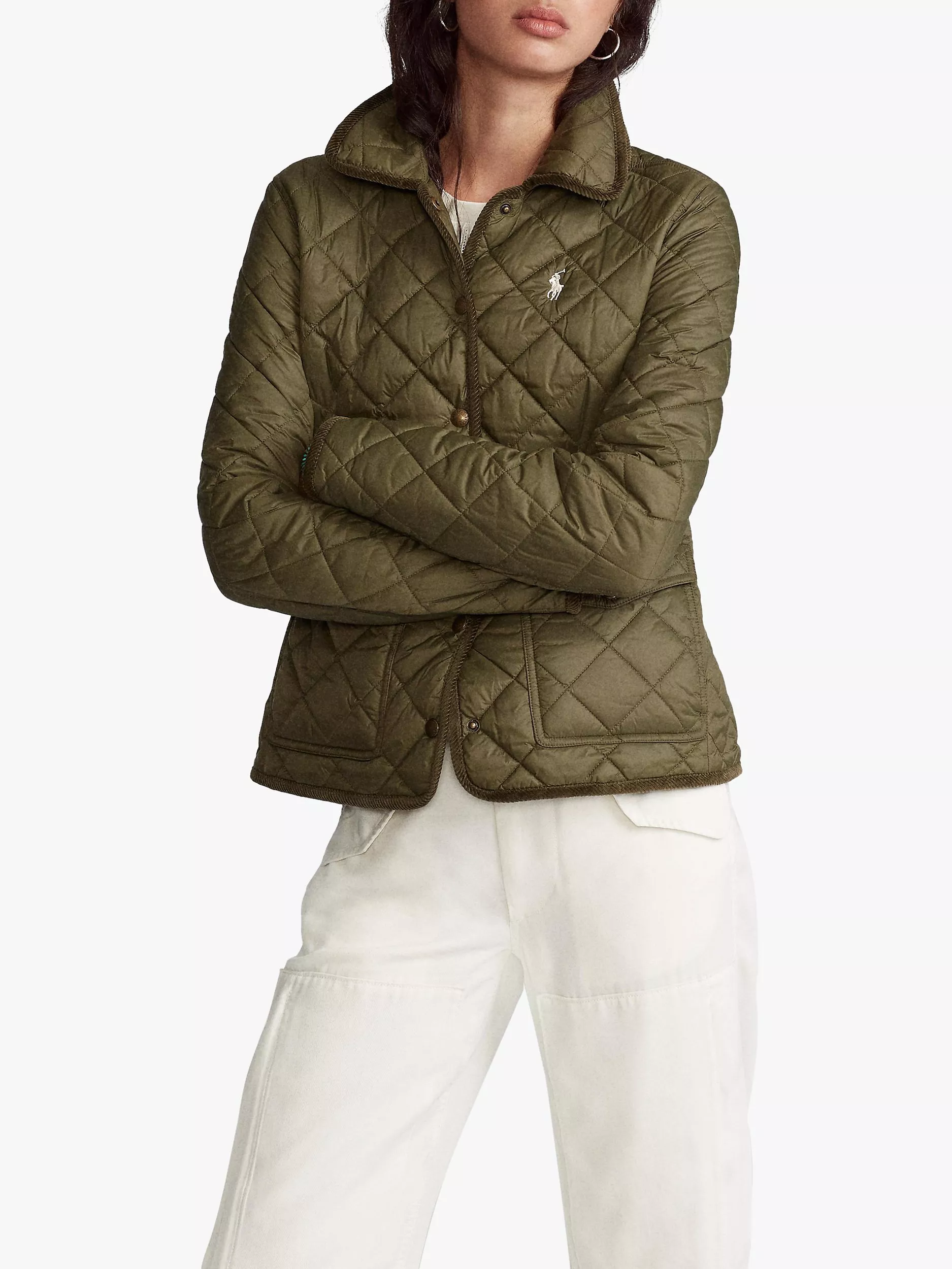 This jacket from Polo Ralph Lauren offers practicality and style in a simple quilted design. Fastening with branded poppers through the front, the smart collar can be pulled up to create a cosy funnel neck, complete with diagonal quilts, an elasticated back waist detail for shaping and tonal trims.