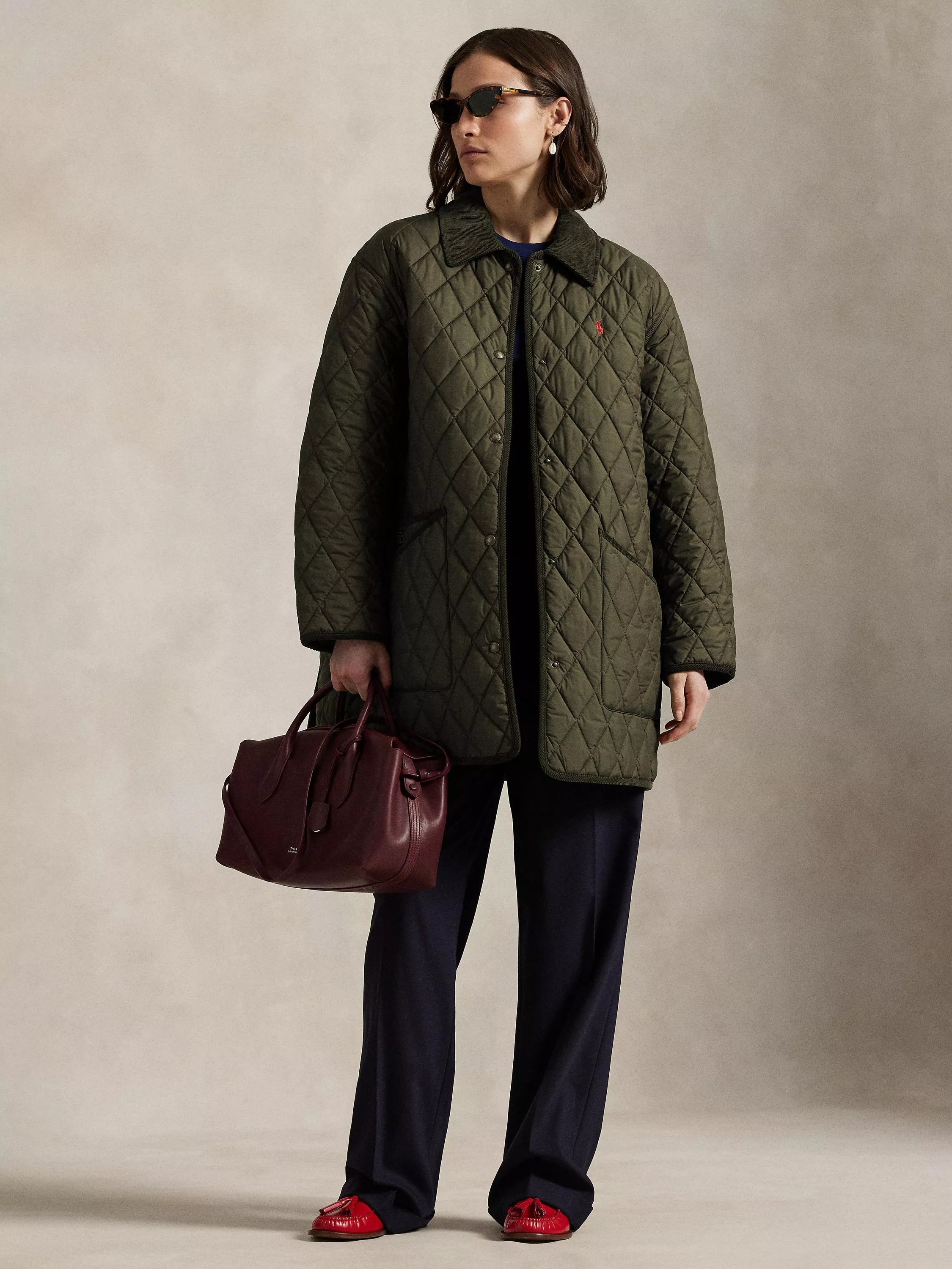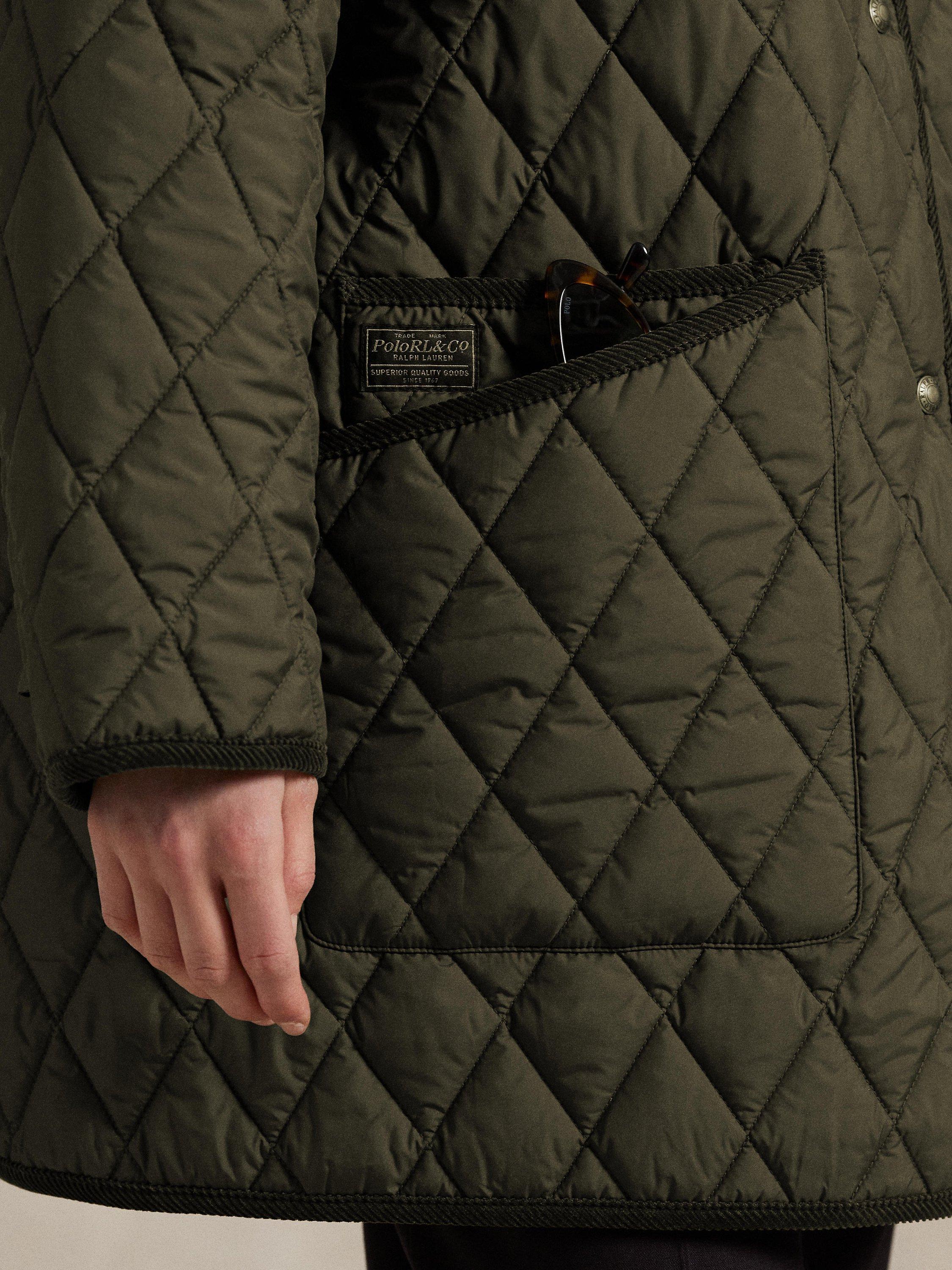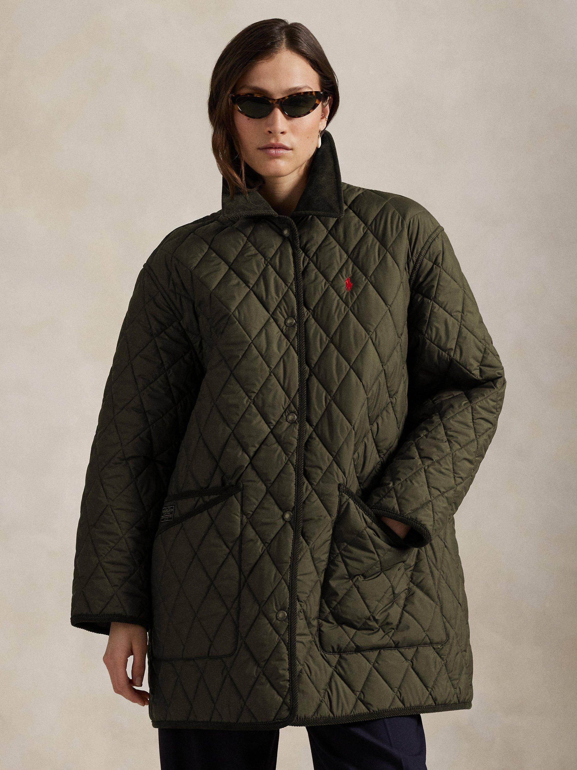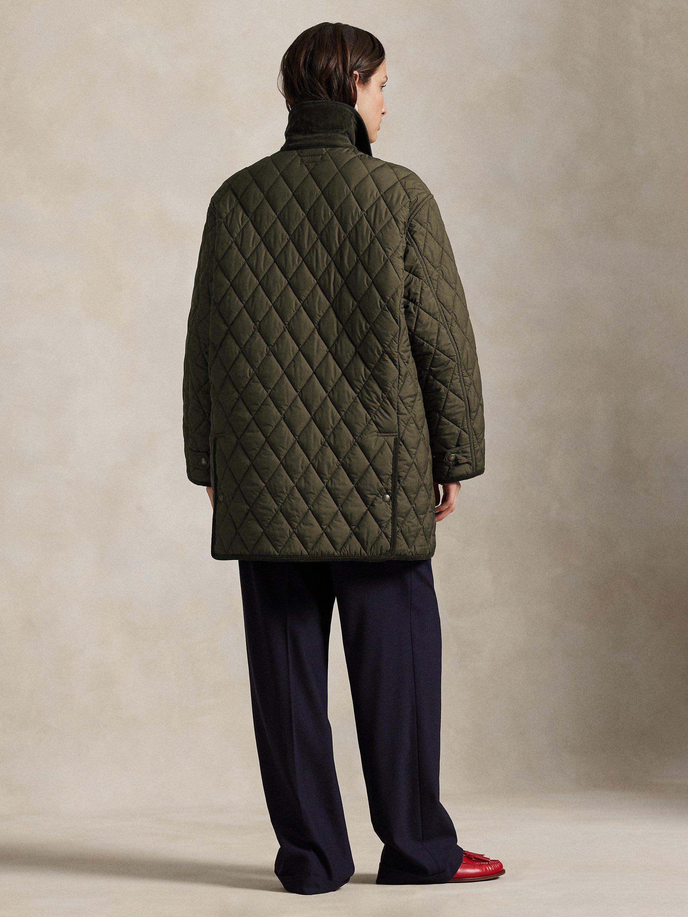 Polo’s take on the classic barn jacket combines a lightly filled diamond-quilted construction with water-repellent fabric and corduroy trim. The oversized silhouette is detailed with our embroidered Pony and woven label for a signature finish.