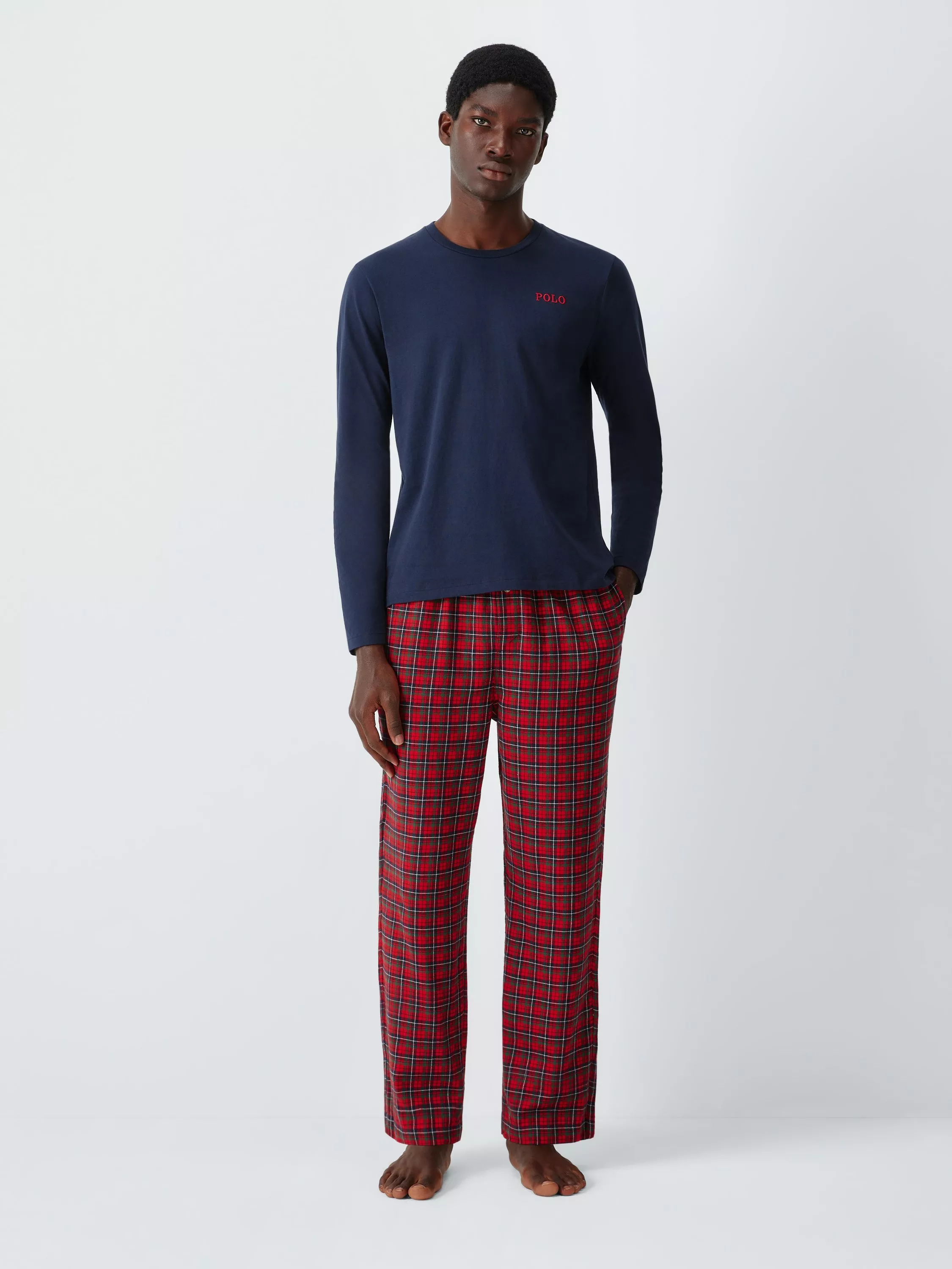 Signature embroidery at the chest and above the hem gives instant loungewear credibility to this cotton pyjama set, while a striking check pattern offers up a significant dose of casual personality.