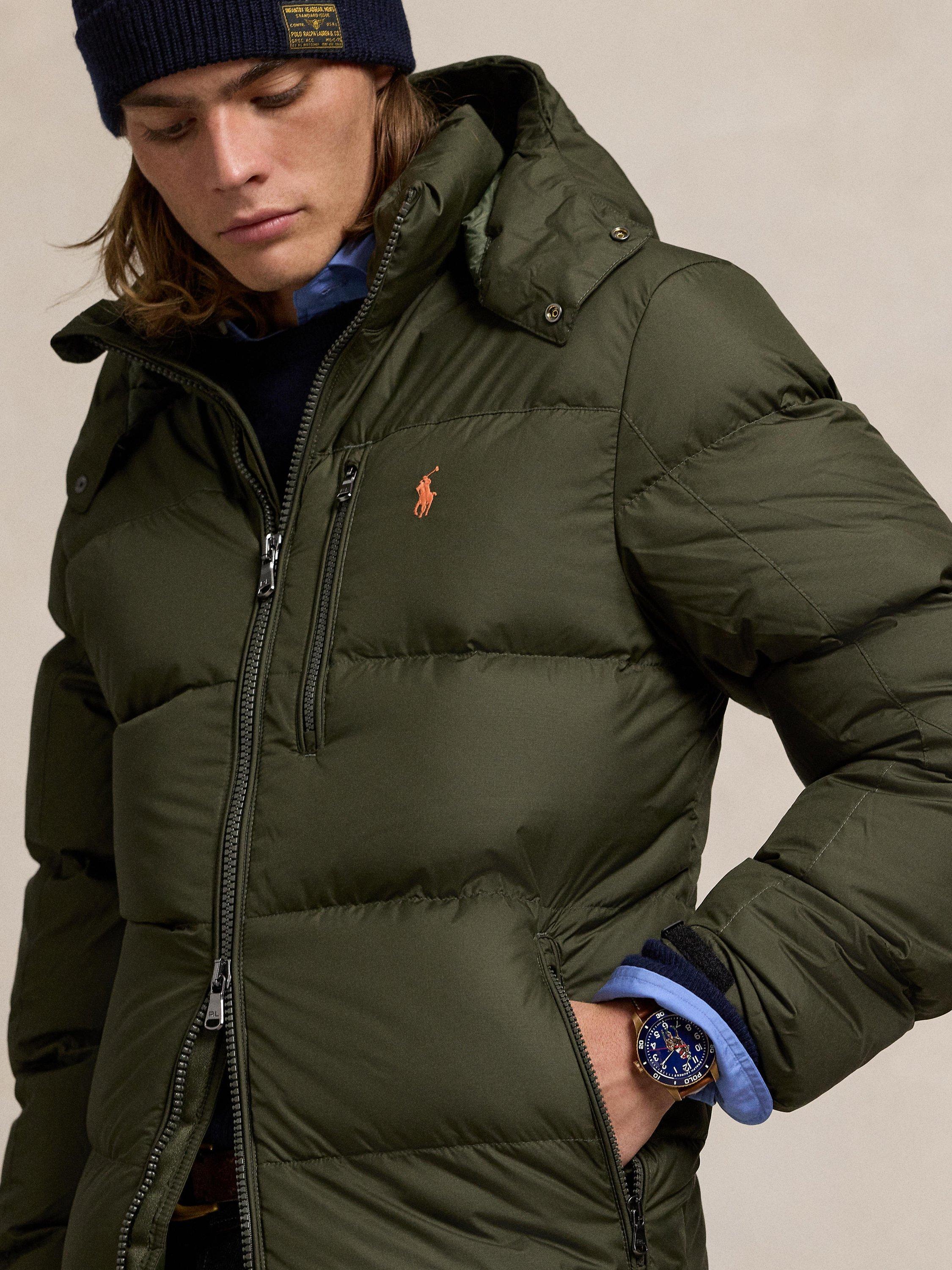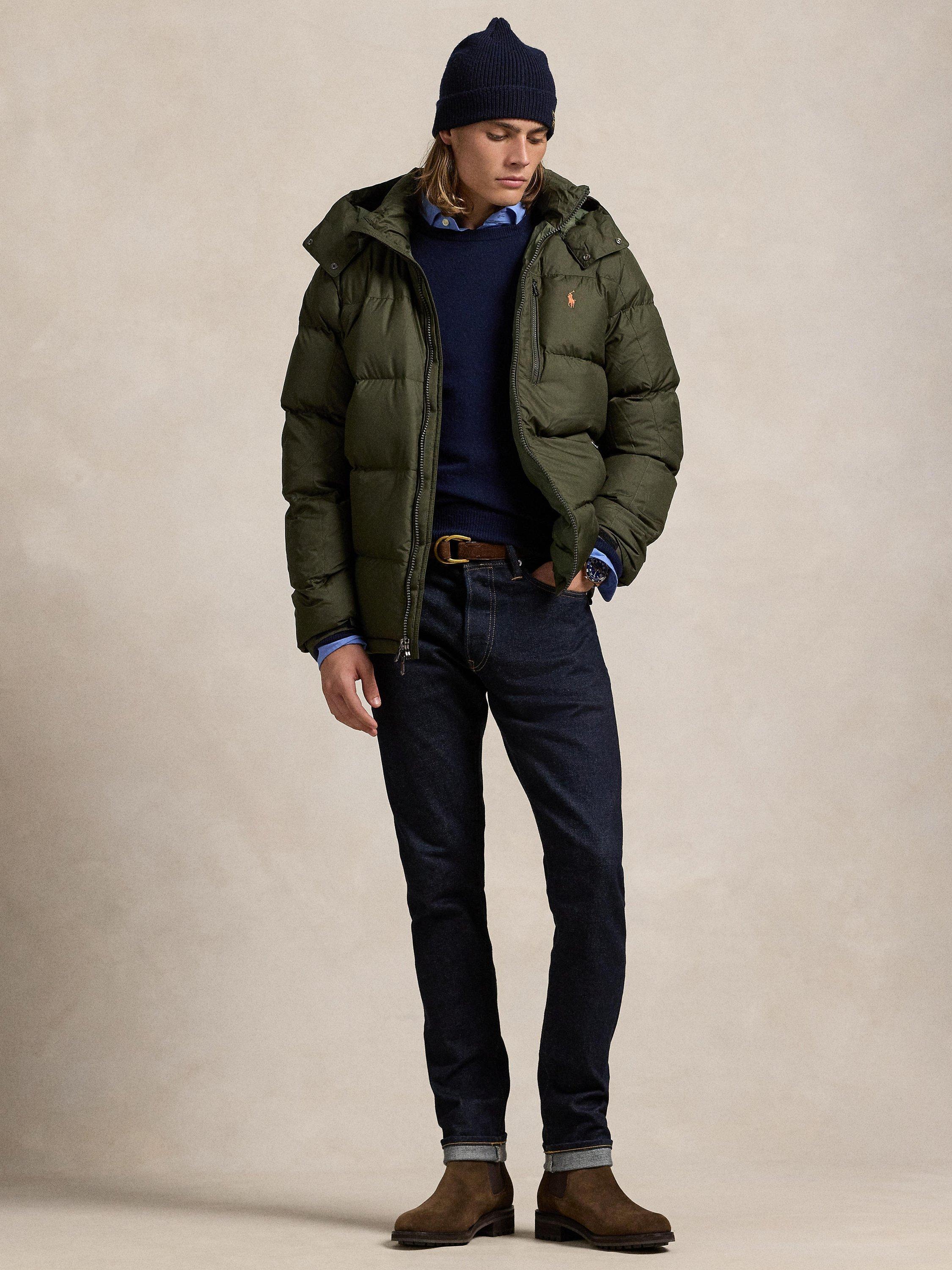 Made from water-repellent ripstop fabric, this jacket is insulated with 650-fill-power down and constructed with a detachable hood.