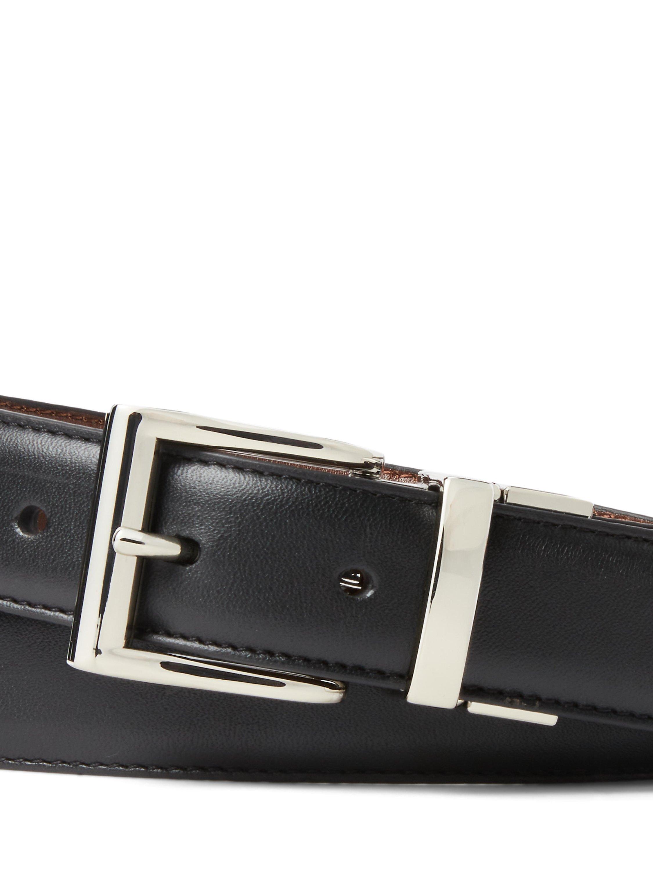Designed with quality in mind, this pure leather reversible belt from Polo Ralph Lauren accentuates a formal look to help you look the part at any occasion.