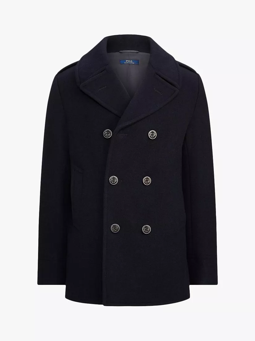 A stylish way to keep warm this Autumn/Winter, wrap up in this Polo Ralph Lauren Peacoat. Taking inspiration from a vintage silhouette, it features an oversized collar, double breasted button fastenings and large pockets.