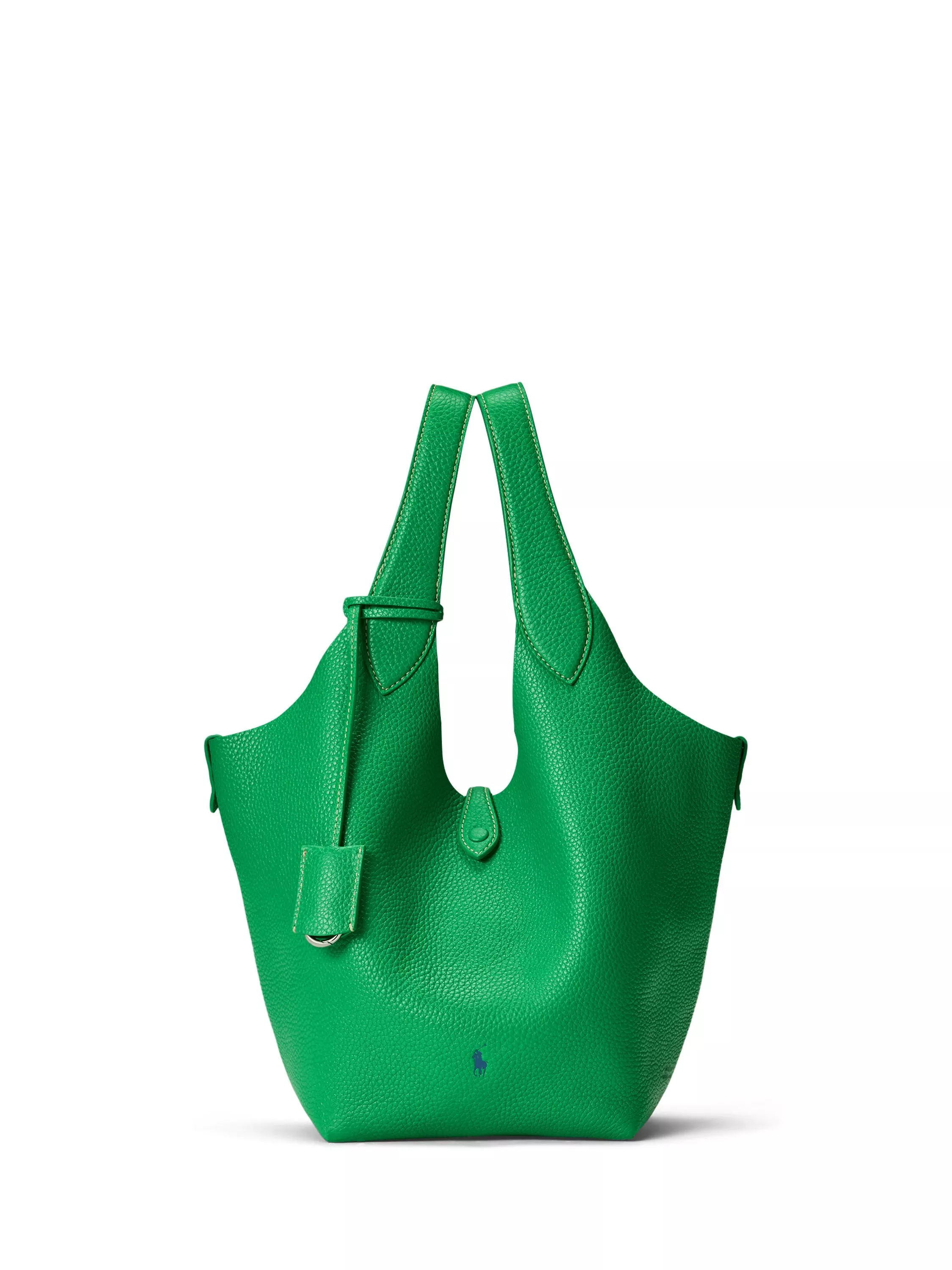 Part of the Polo Play collection and crafted with Italian full-grain leather that has a pebbled finish, this spacious tote features tank top–style straps that allow for versatility in carrying and styling. Designed with two leather shoulder straps with a 7.75" drop and bombé detailing. Interior metal T-bar secures with a leather loop that cinches the bag. Comes with a specialty Polo Play dust bag.