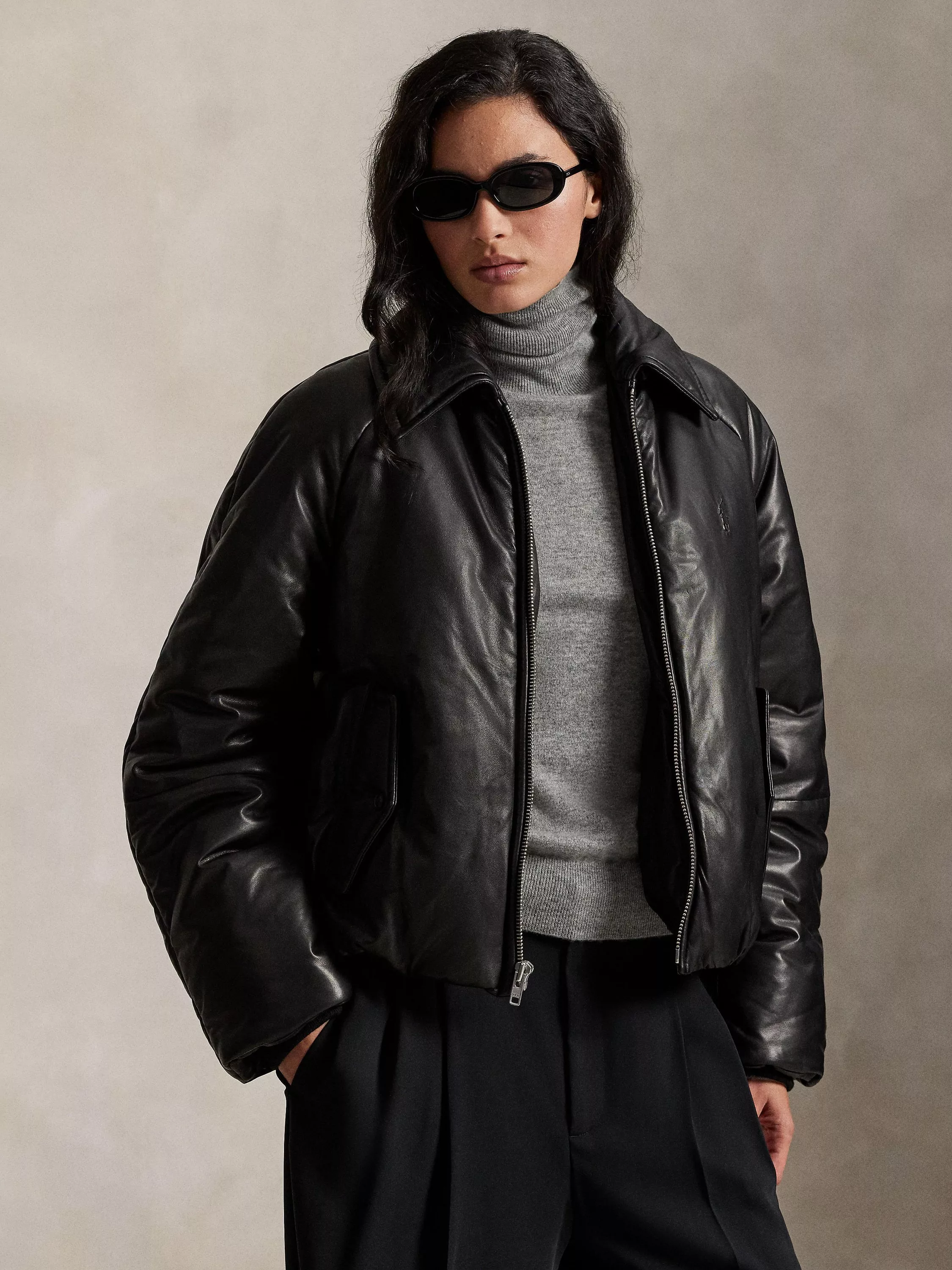 Cut for a bold, oversize shape, this jacket merges full-grain sheepskin with a light fill and tonal embossed details, including a signature Big Pony at the back.