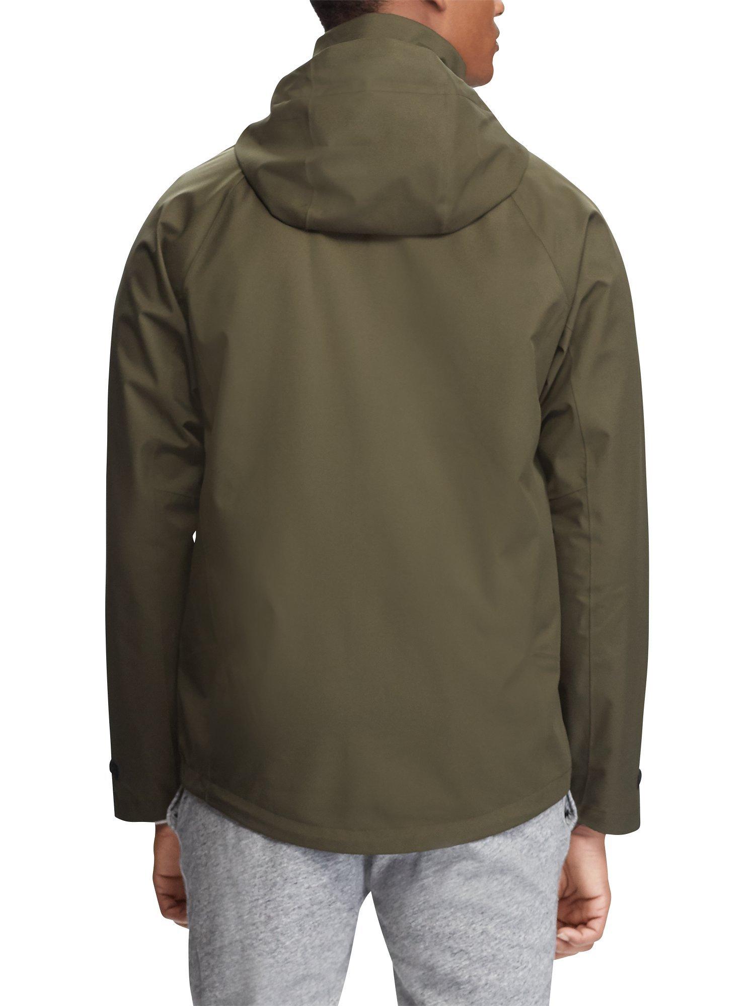 Made from a twill that retains its original shape after every wear, this jacket offers a sleek look while keeping you dry. It is designed with a stoaway hood that has a built-in brim and drawcords, a mockneck with interior fleece panels, a full zip front with a flap at the centre and long sleeves with adjustable hook-and-loop tabs.