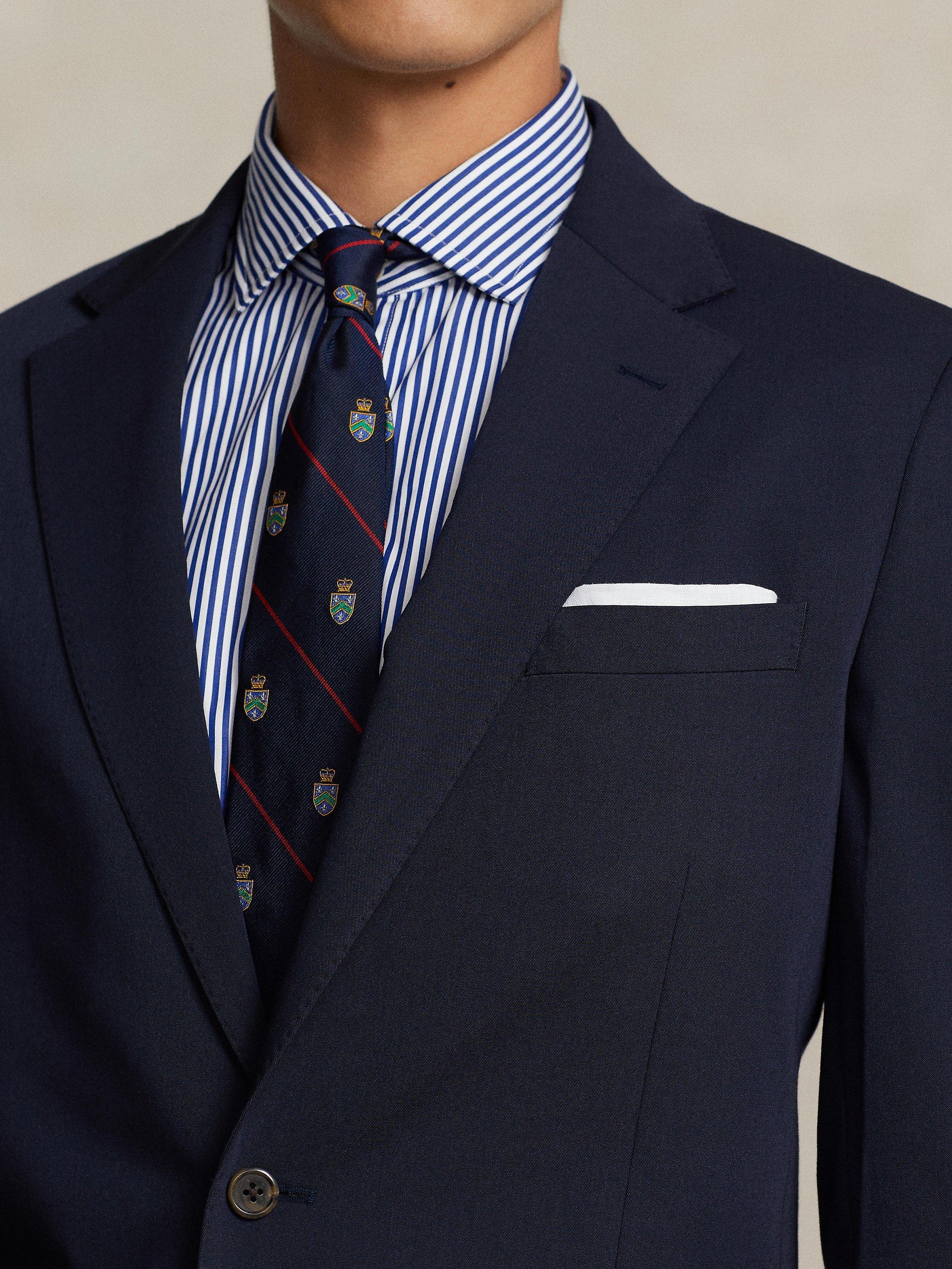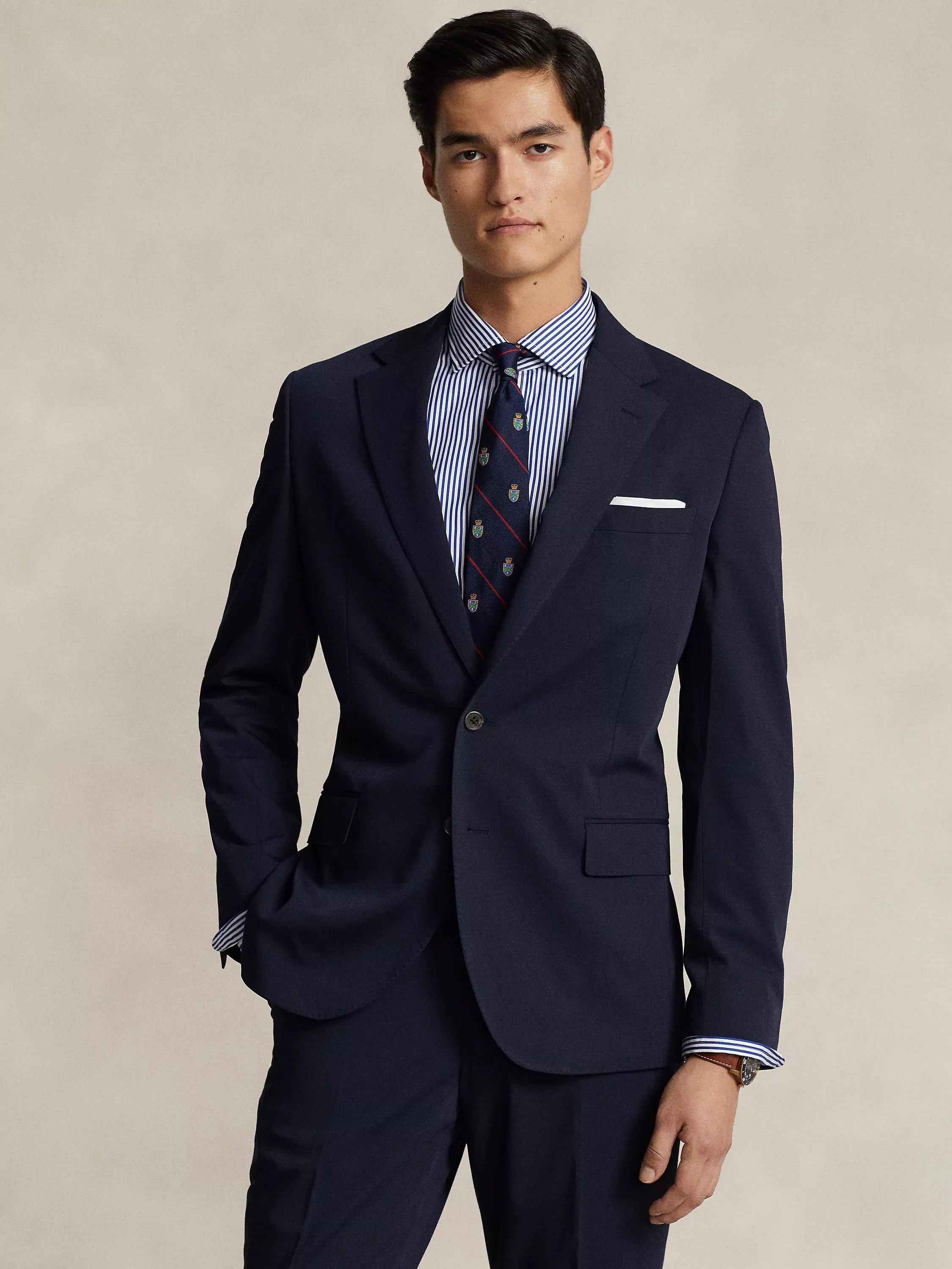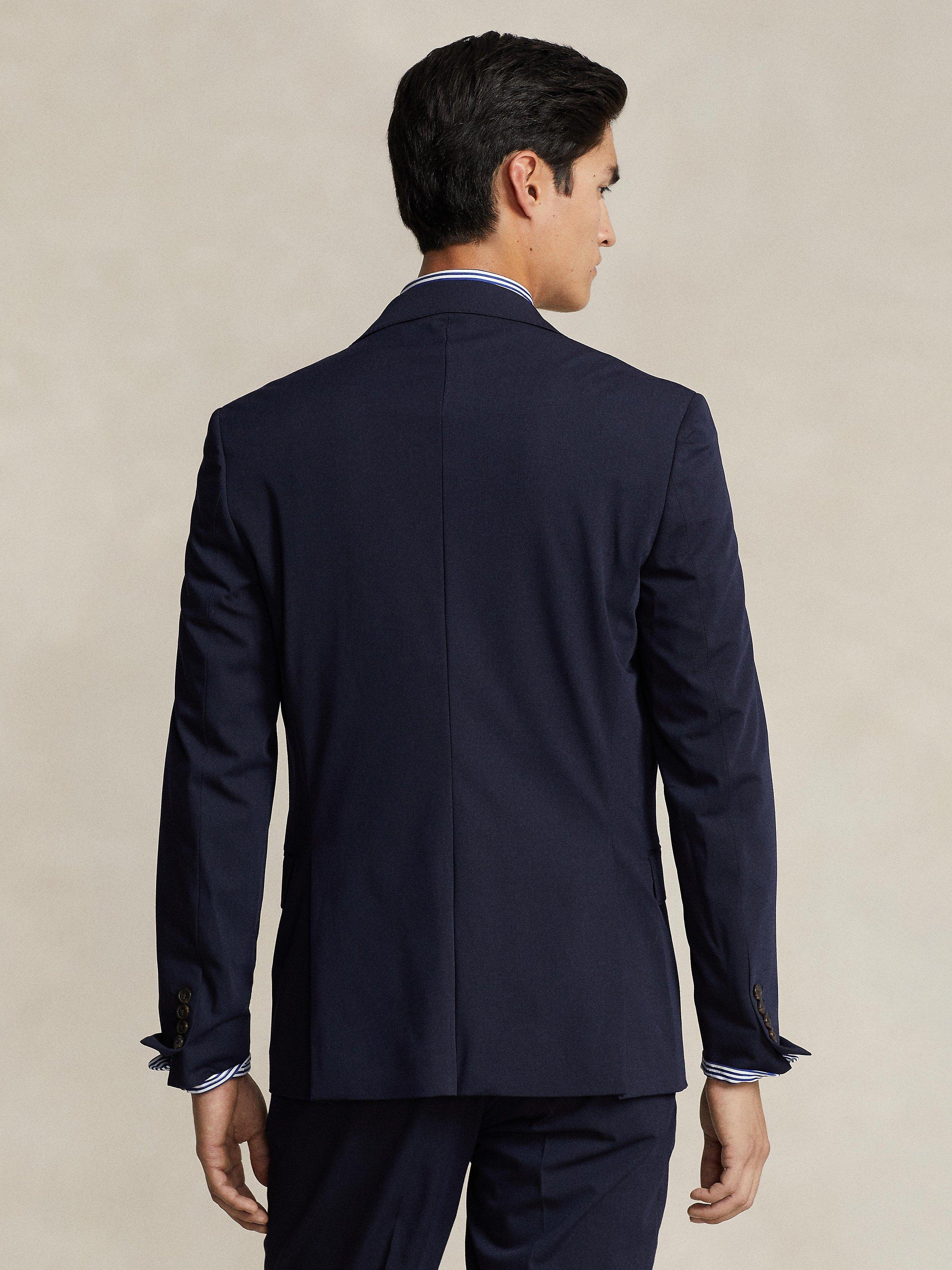 One of Polo Ralph Lauren's newest tailored silhouettes, features a trim, contemporary fit, natural shoulders, and pickstitched lapels. This version is crafted with a new Polo-exclusive twill cloth that is custom-developed for natural wrinkle resistance and a smooth, shine-free finish. Added stretch provides extra comfort and mobility, making this lightweight layer perfect for all-season, everyday wear.