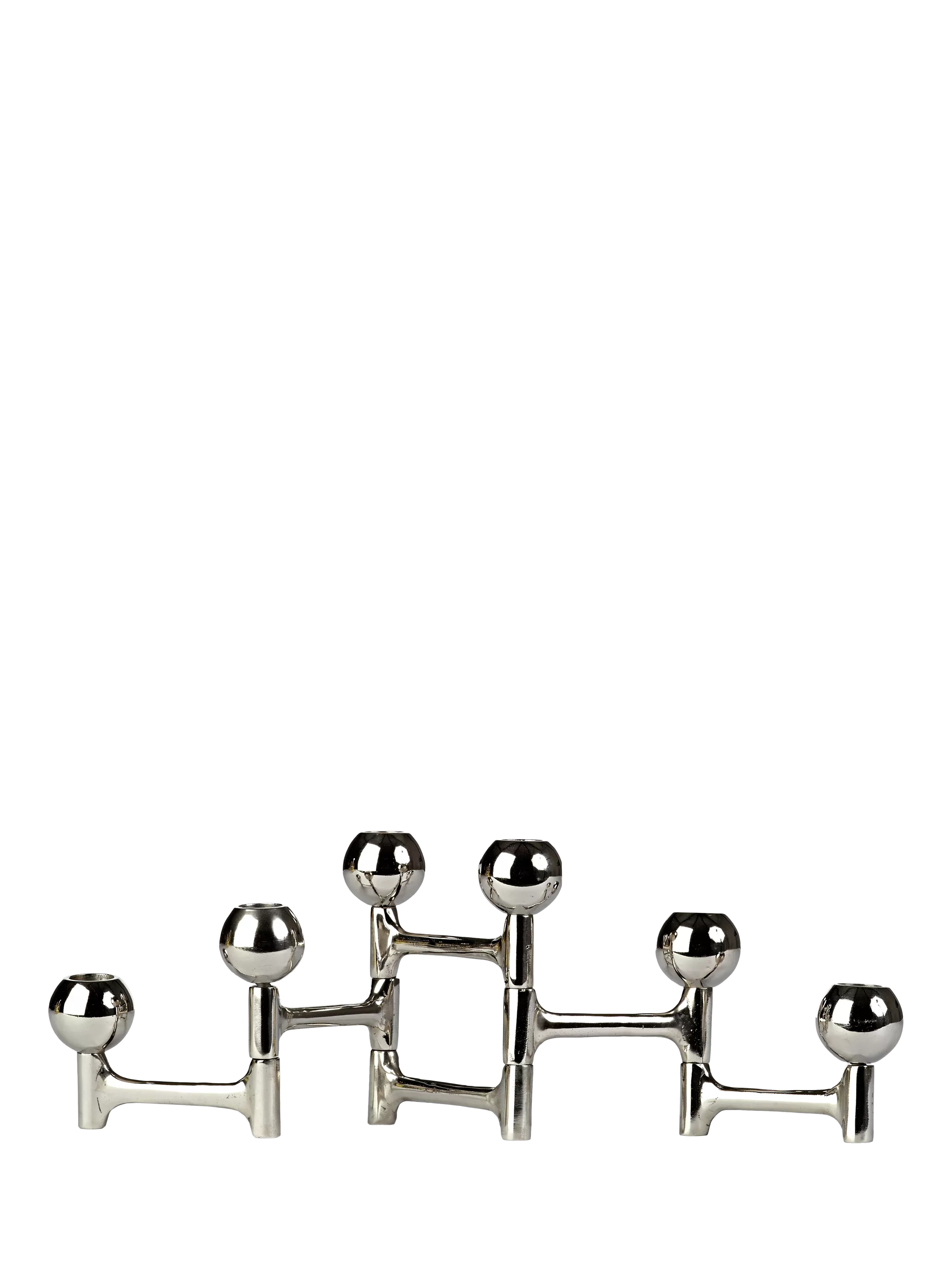 The Round Folding Candle Holder is an essential item for candle lovers and an adjustable design that holds six tapered candles. A stylish mix of squared frame detailing and rounded holders in a nickel finish, it makes a striking dinner table centrepiece.
