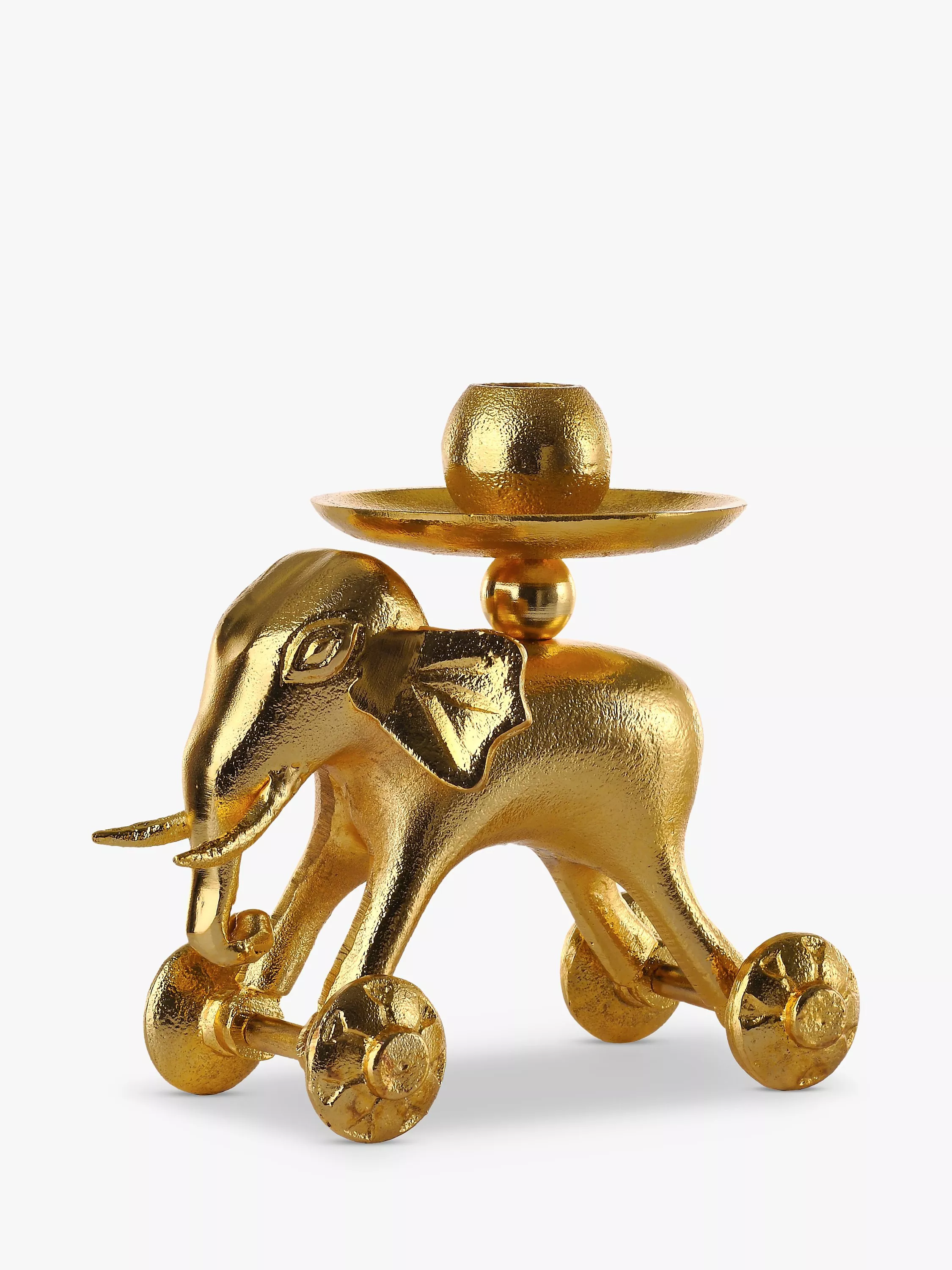 The pols potten Wheelie Elephant takes the candlestick into a more majestic realm. Made from aluminium and painted in gold the Indian elephant holds your candle aloft on its back.