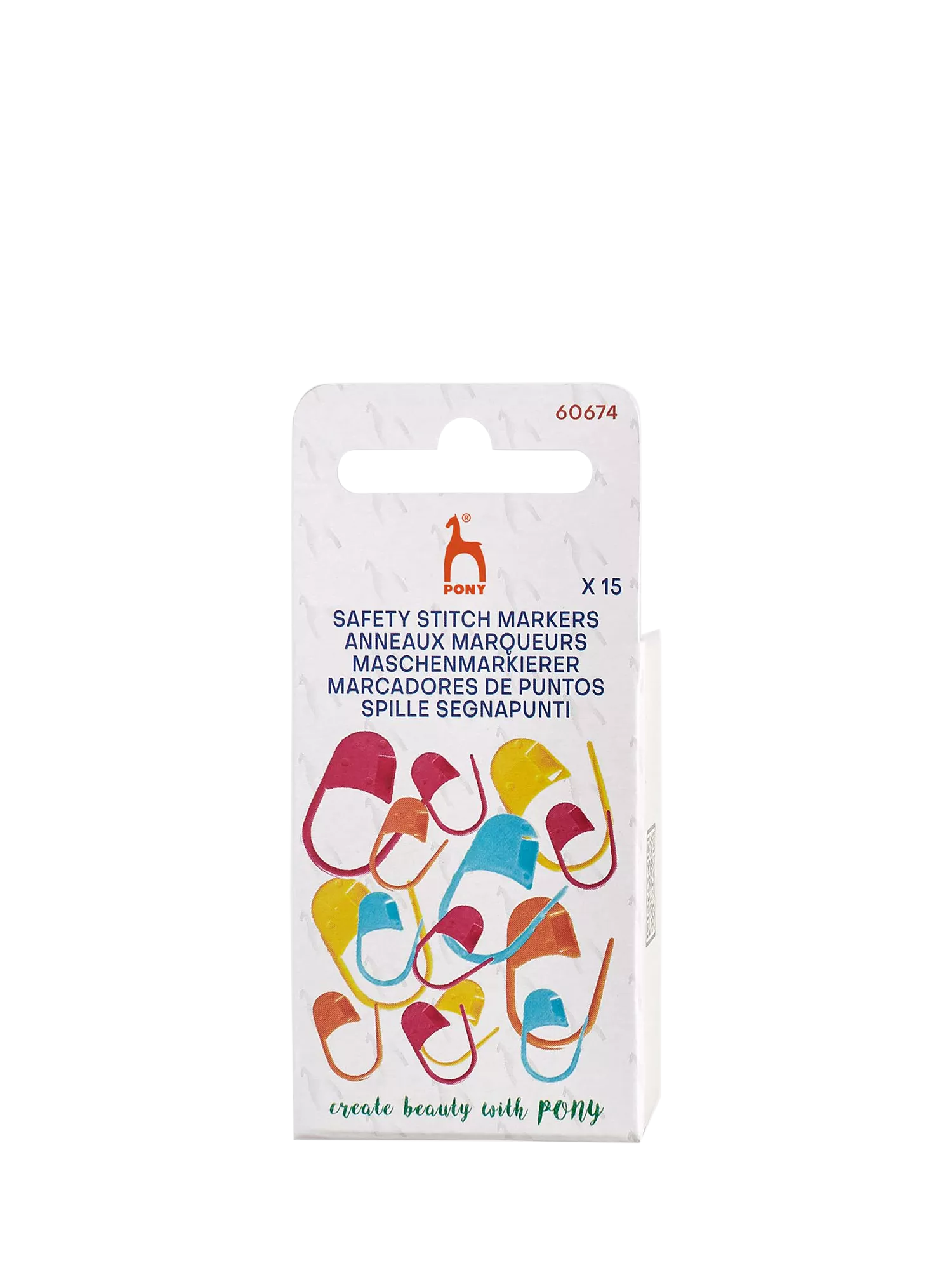 Designed to slip into stitches and look like tiny plastic safety pins, these markers will not slip out or snag in your knit.