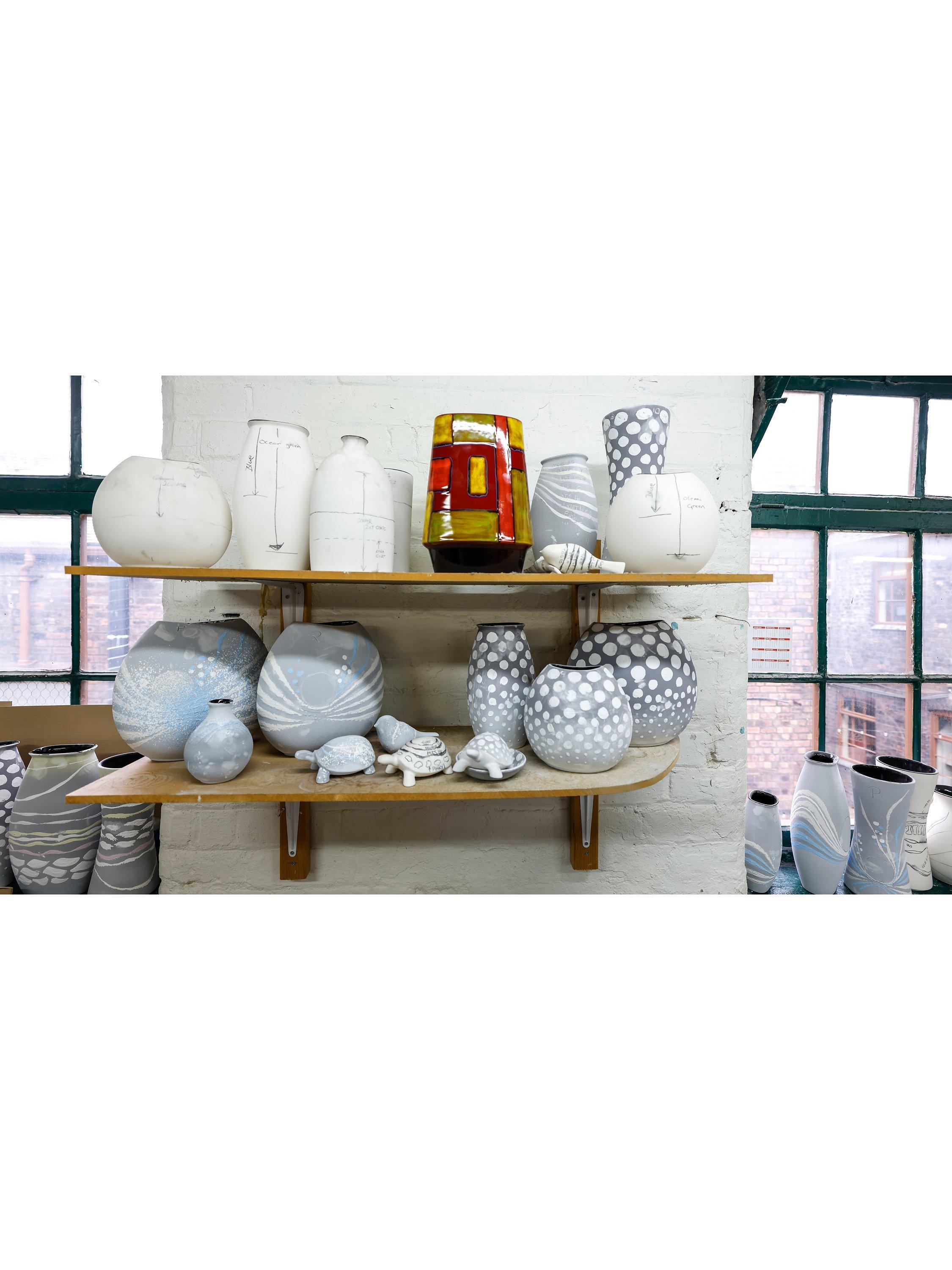 A commemorative design marking over 150 years of Poole Pottery, this Keystone vase has a distinctive character. The vase shape takes its inspiration from a vase produced in the 1960s, simply called 'vase No 25'. The oval conical shape creates a perfect surface to hand decorate and the raised foot gives the vase a presence, making it a statement piece.