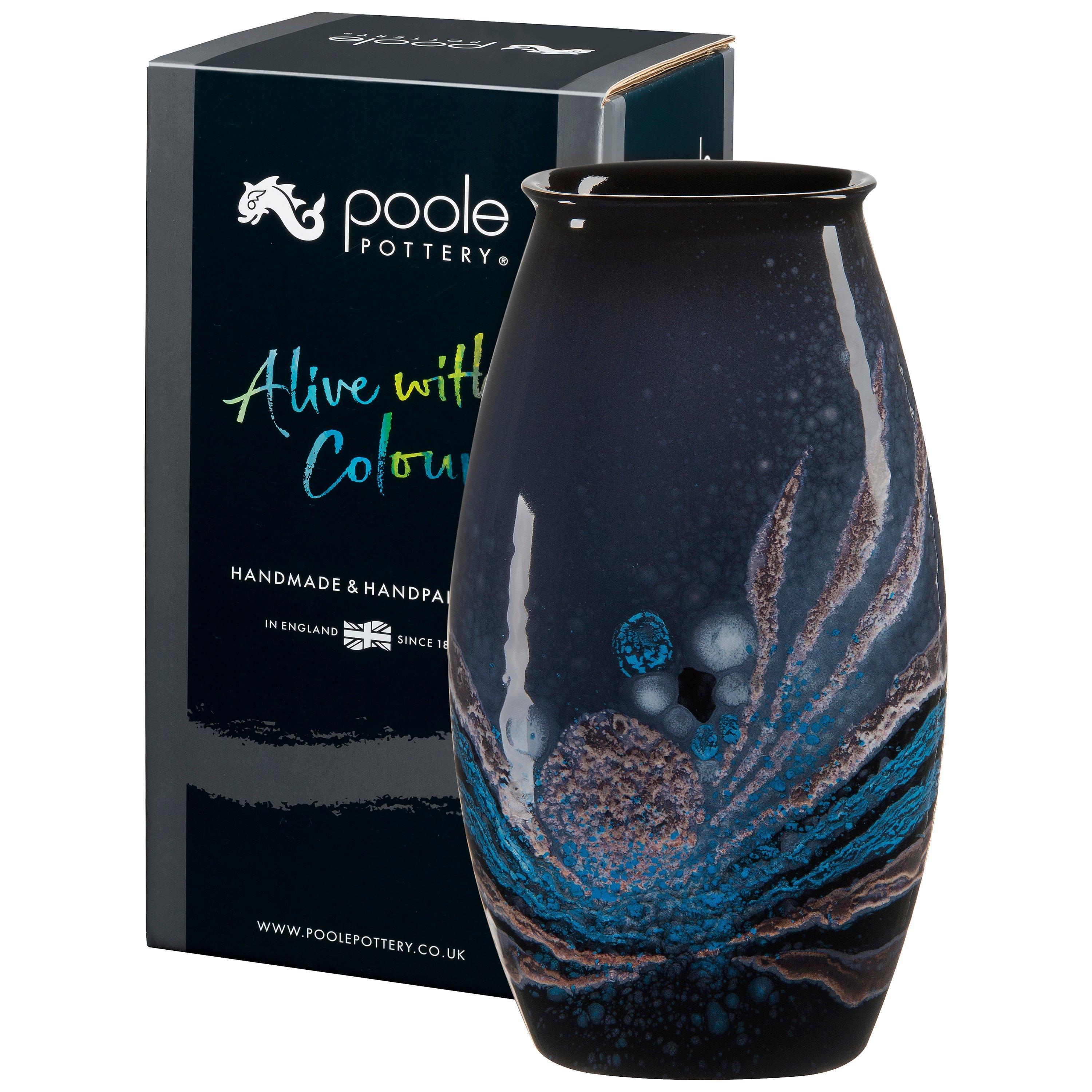 Ideal as a stand-alone decorative piece or for presenting a freshly-cut spring bouquet, this Manhattan Vase is cast by hand and attractively glazed with layers of celestial vapours. Displaying the extraordinary, distinctive effects that Poole is renowned for, this Celestial Manhattan Vase is charmingly packaged in a Poole Pottery gift box and makes a splendid gift for any pottery enthusiasts.