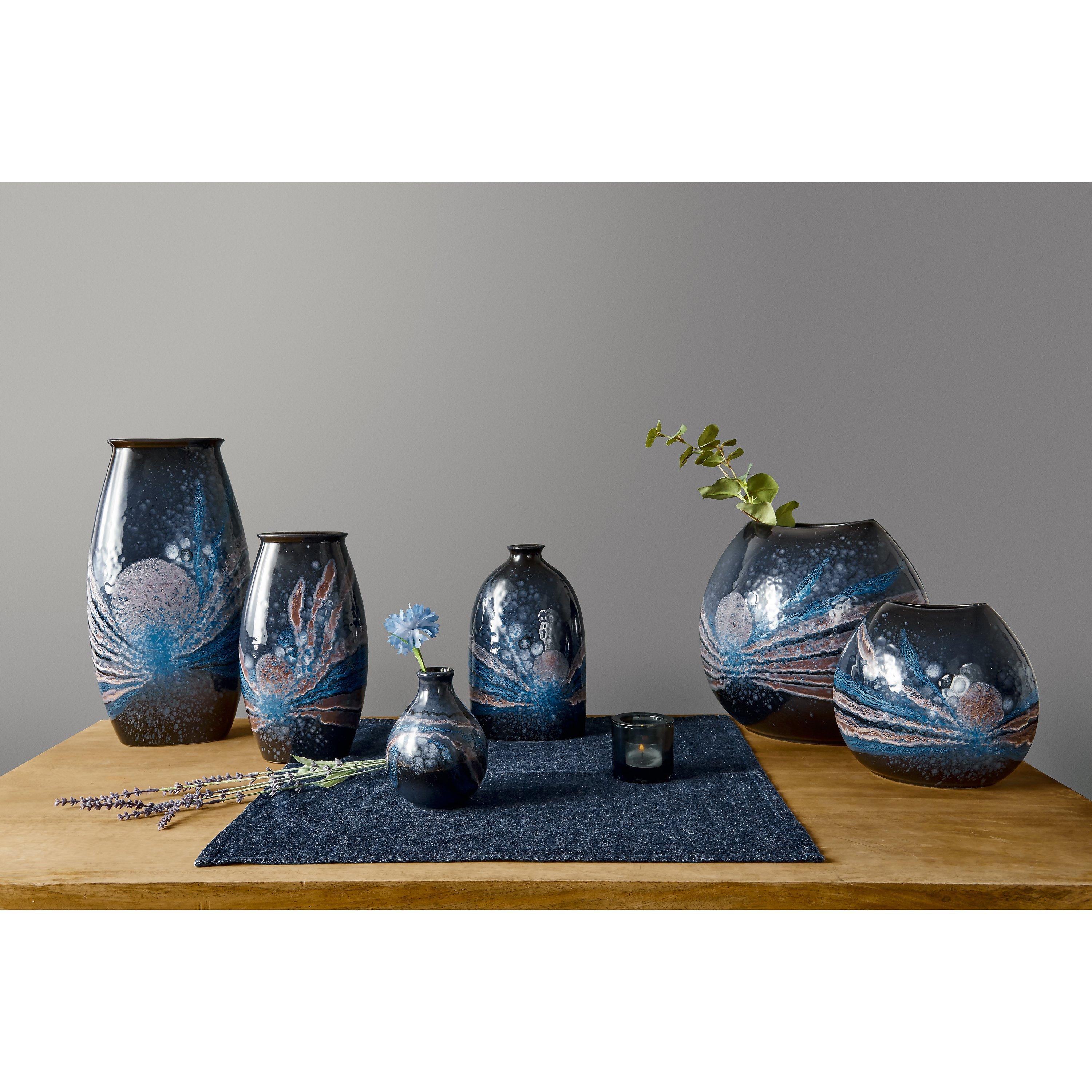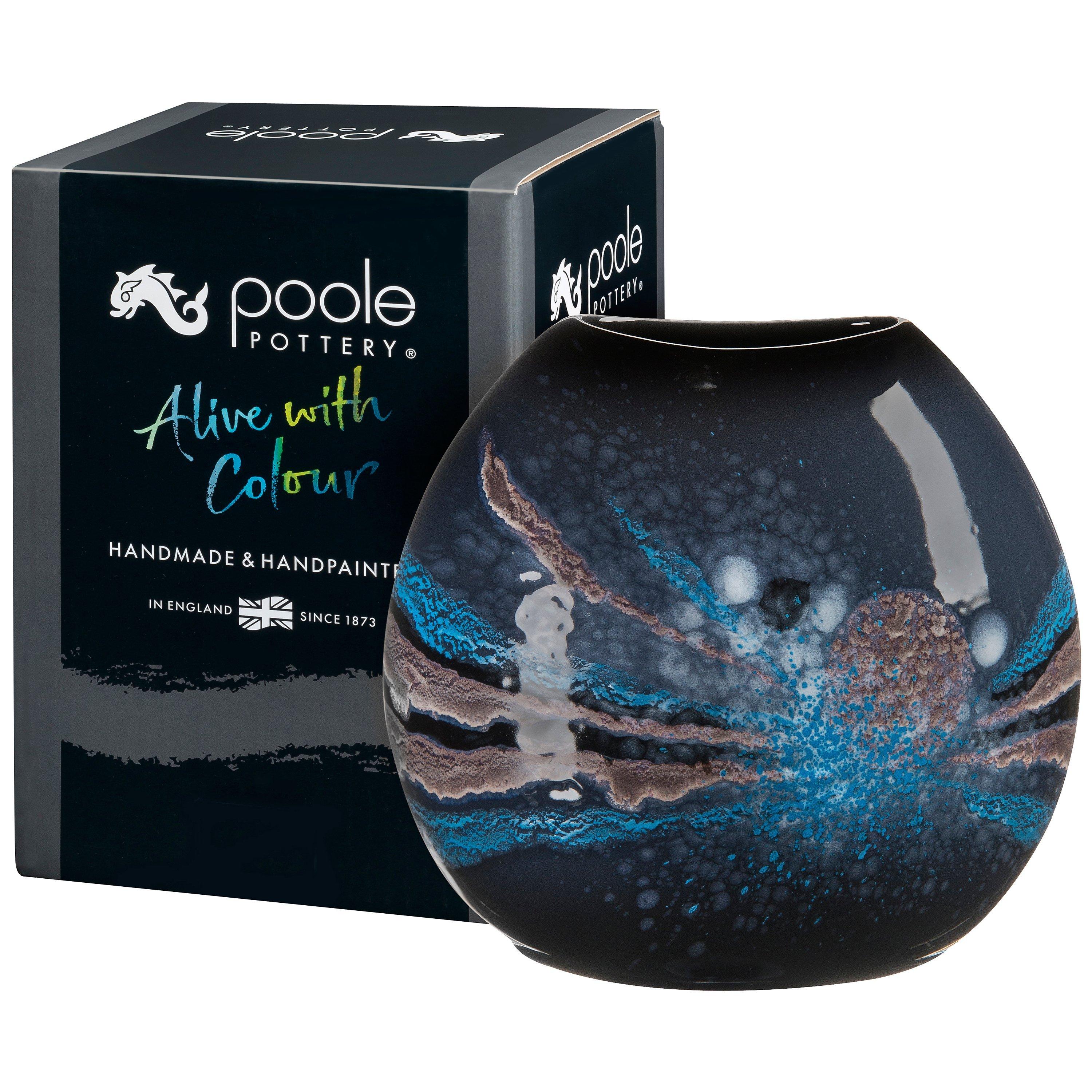 Cast and painted by hand in celestial vapours, this spherical Purse Vase from our Celestial collection is ideal for larger bouquets and greenery, and will be the talking point in any room. Displaying the unique and dramatic glaze effects Poole is famous for, this Celestial Purse Vase is charmingly presented in a Poole Pottery gift box - perfect for gift-giving at any time of year.