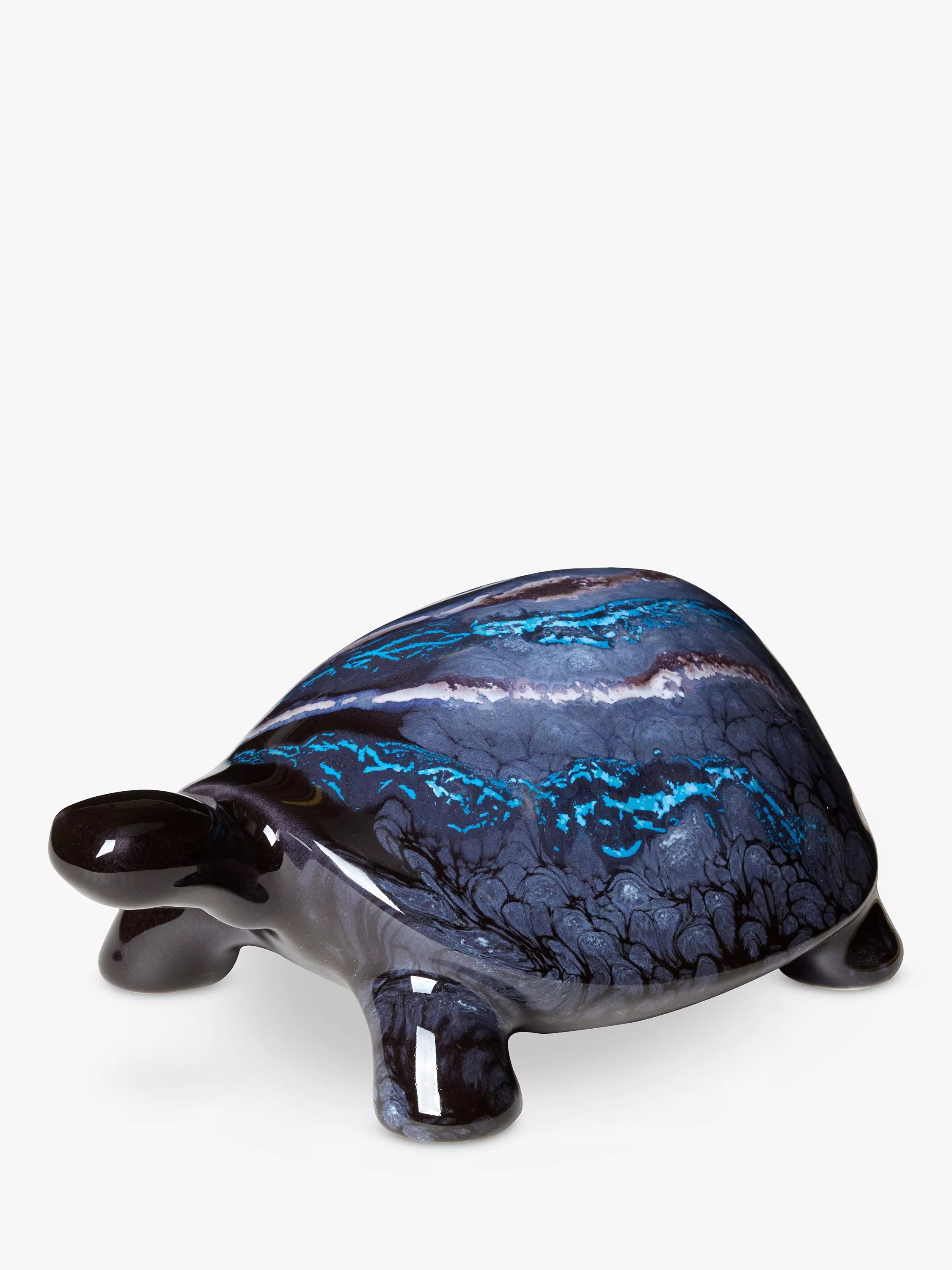 Made from earthenware this Poole Pottery turtle ornament is handpainted with layered colours which give it the dramatic whooshing colours across the back.