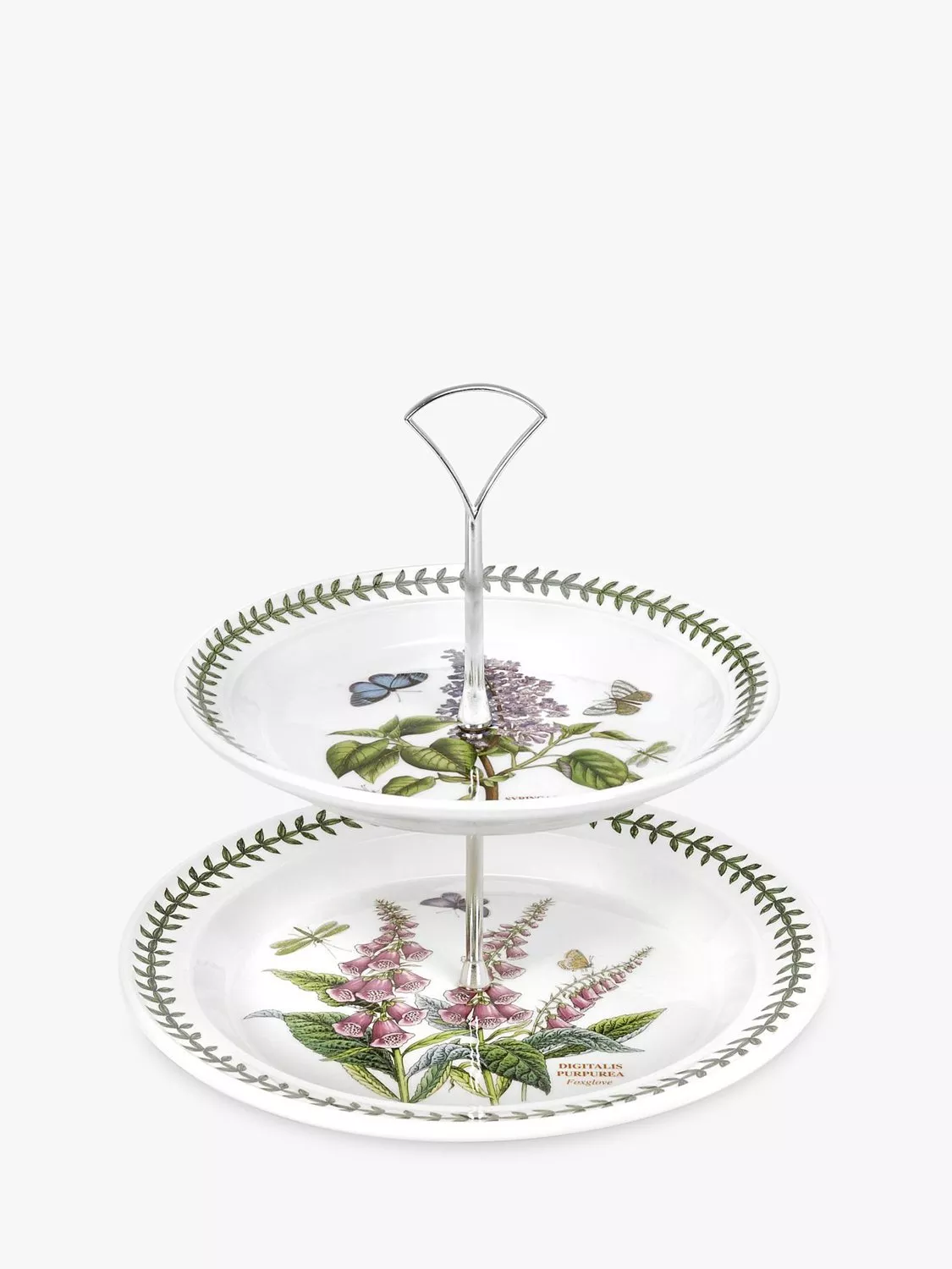 PortmeirionBotanic Garden 2-Tier Cake Stand, 27cm, White/Multi