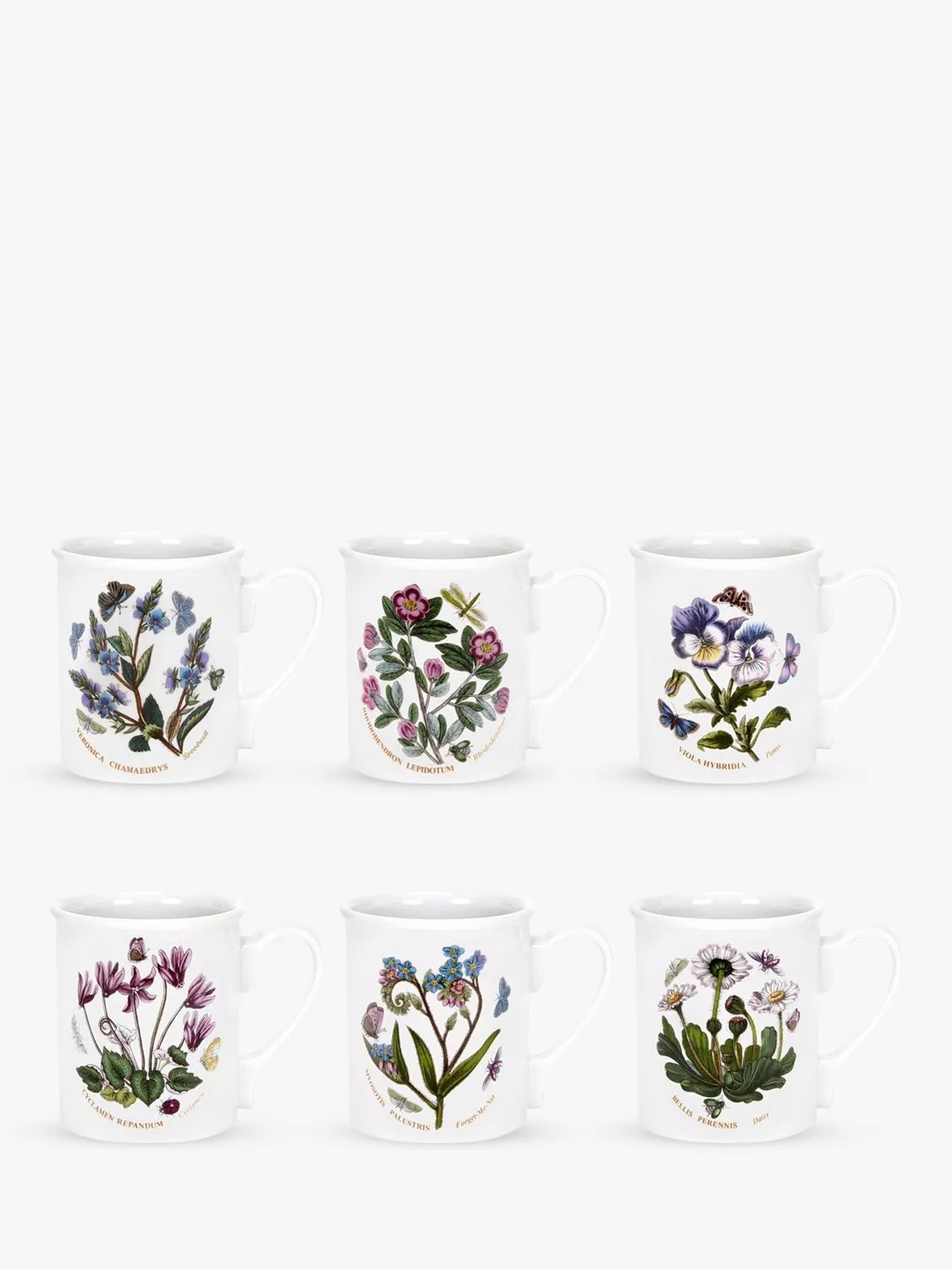 PortmeirionBotanic Garden Flower Breakfast Mugs, Set of 6, 200ml, White/Multi