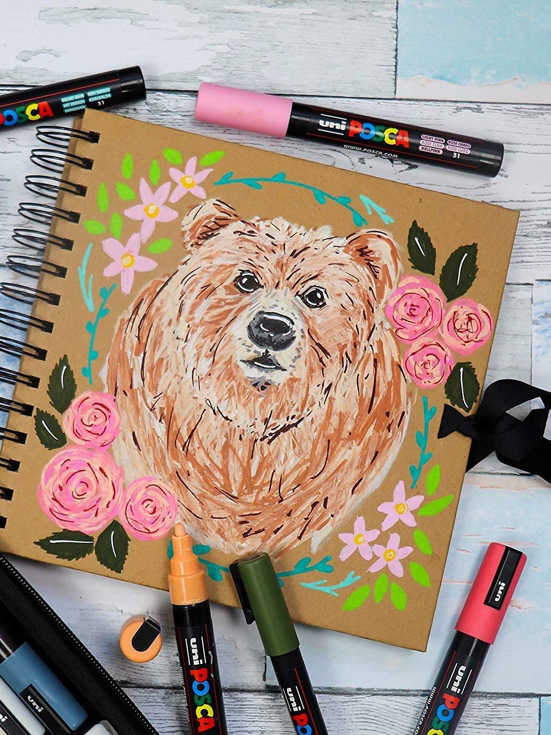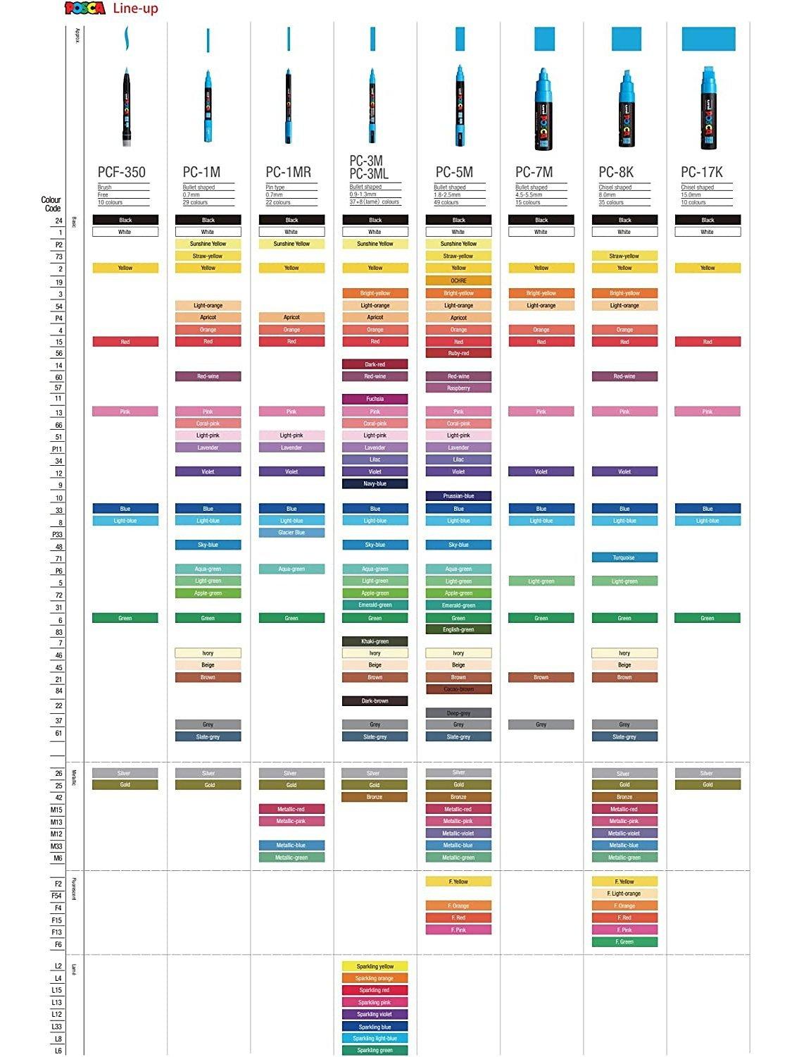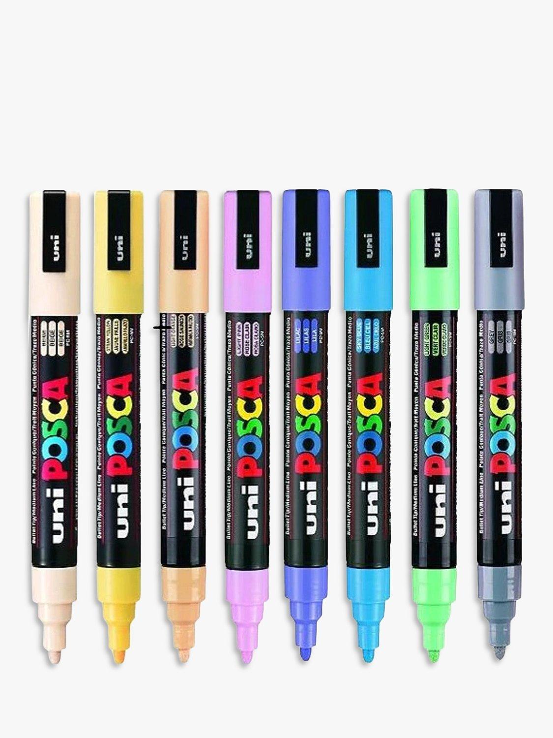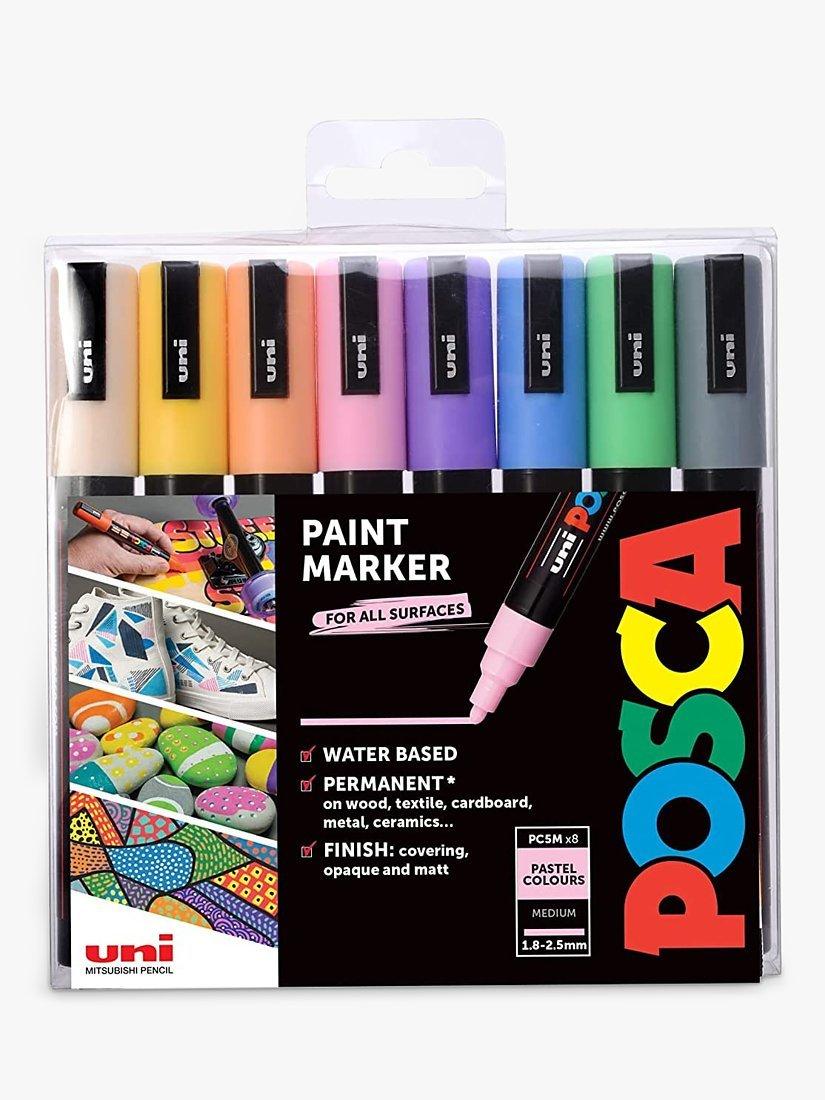 POSCA paint markers are an excellent multi-surface, creative pen. These medium paint markers contain water-based pigment ink which is lightfast, water resistant and will write on almost any surface.