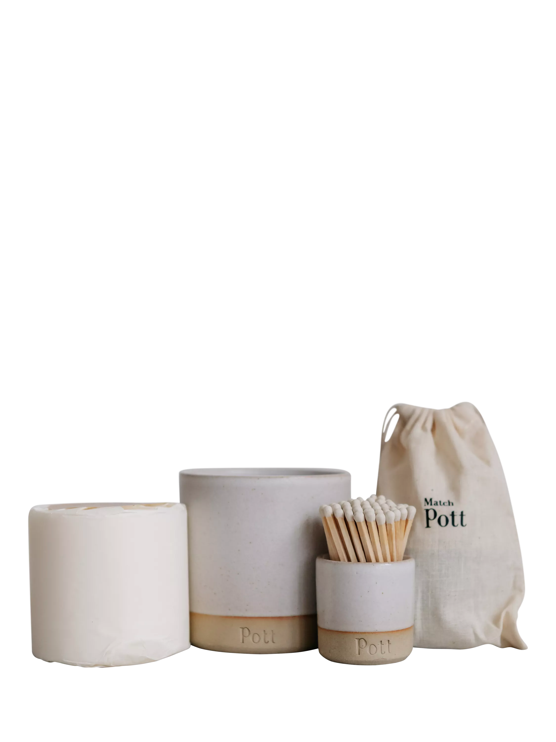This Starter Pack contains everything you need to get you going with your refillable candle! It includes the Standard size refillable Pott, your first refill scent and a matching coloured MatchPott. The Orangery Scent in 'Speckle' is one of Pott Candles' bestselling Standard candles. The Speckle Pott is an earthy and speckly white colour, and has a beautiful rustic feel. It is handmade in the UK by artisan potters, and Pott Candles have paired it with Orangery. Orangery evokes the essence of Orange blossom, rosemary and basil falling beautifully on to a base of cedarwood, oak moss and woods.