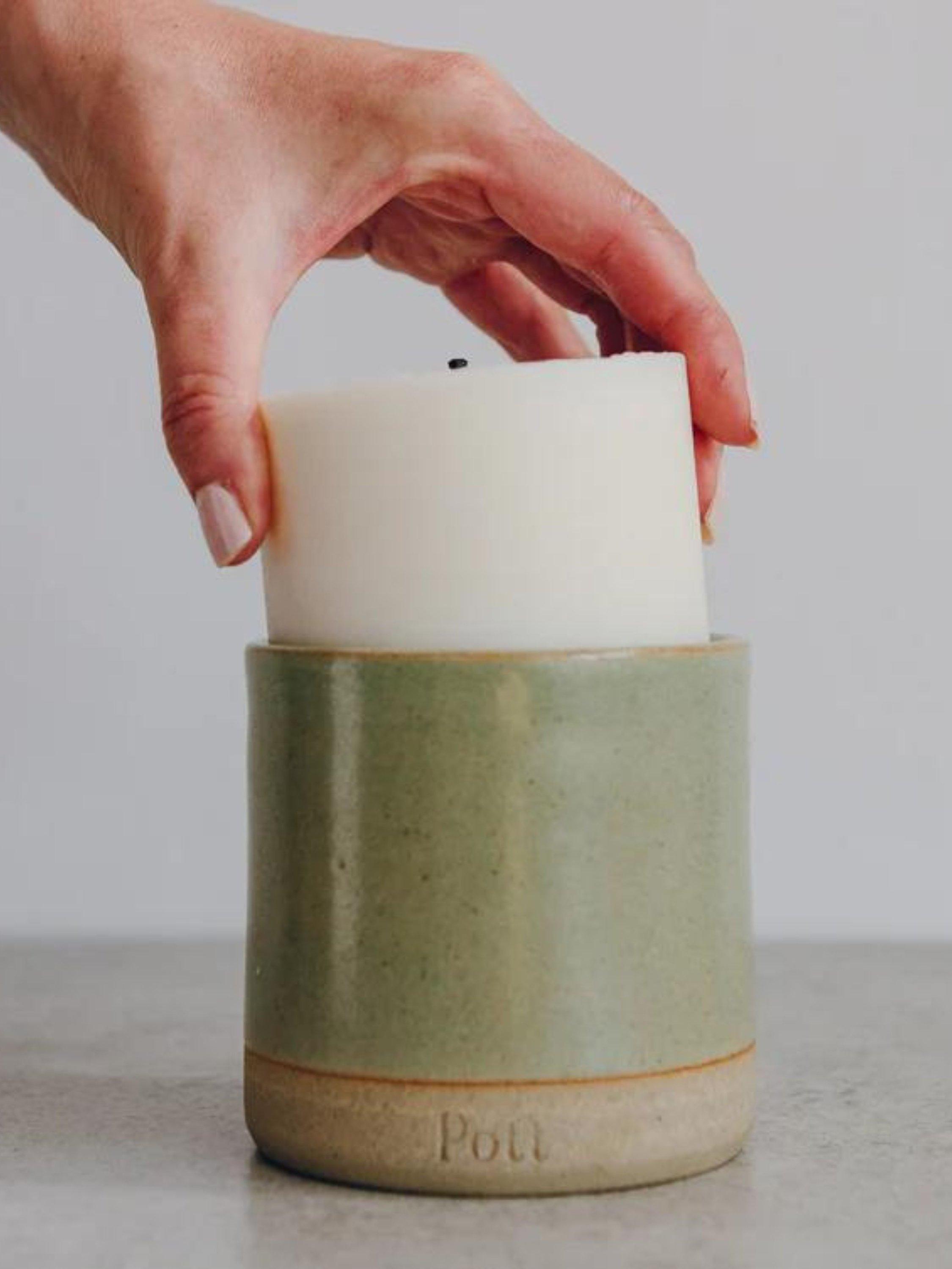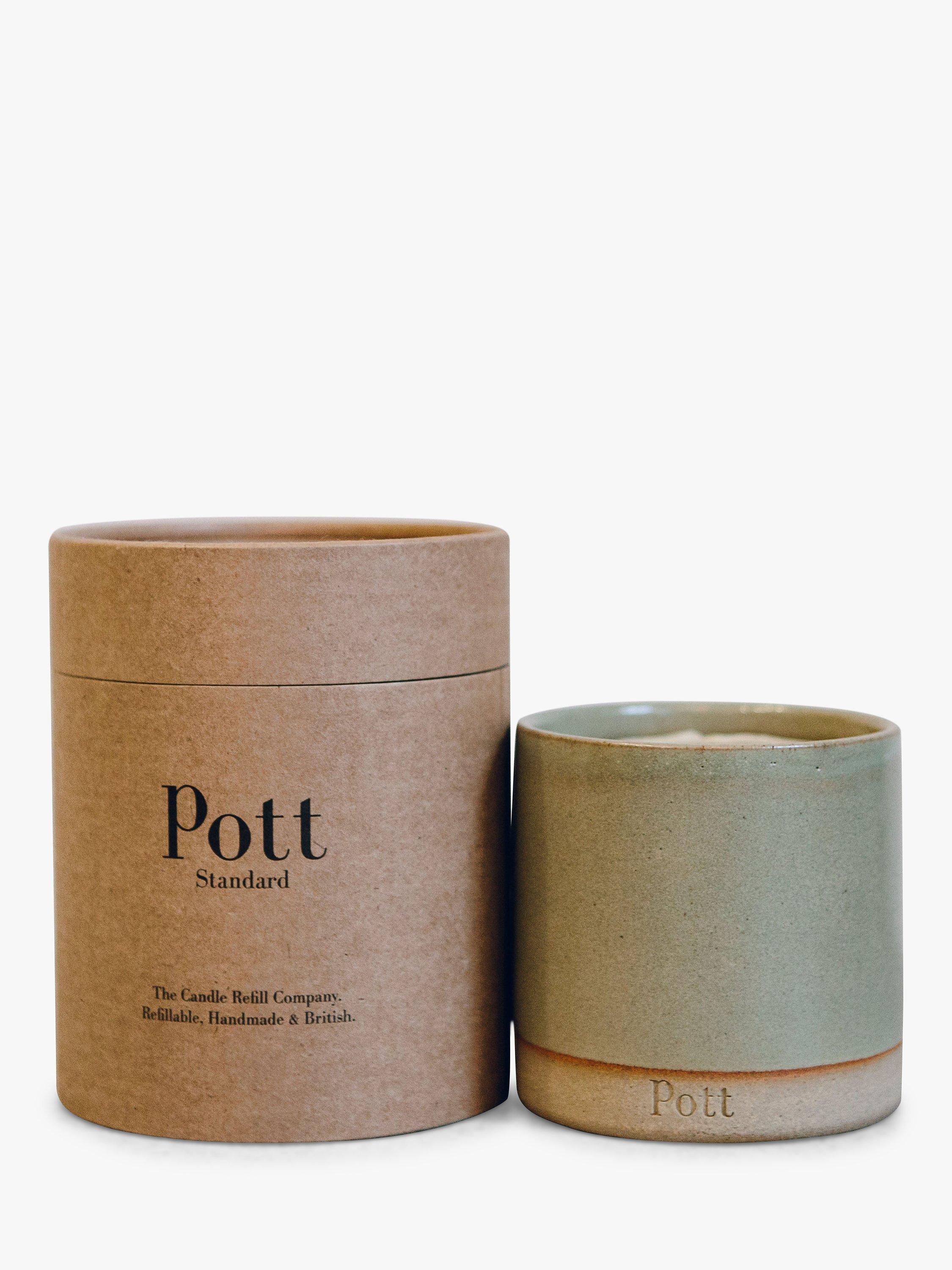 A refillable candle, beautifully handmade by local potters across the UK. Vetivert and cedarwood - this is a fresh scent. This candle can be kept forever and refilled with Pott's candle refills. The wax is 100% natural and is mixed with fragrance oils.