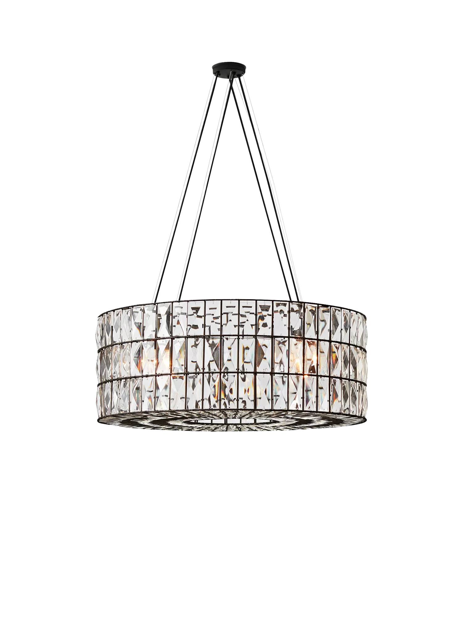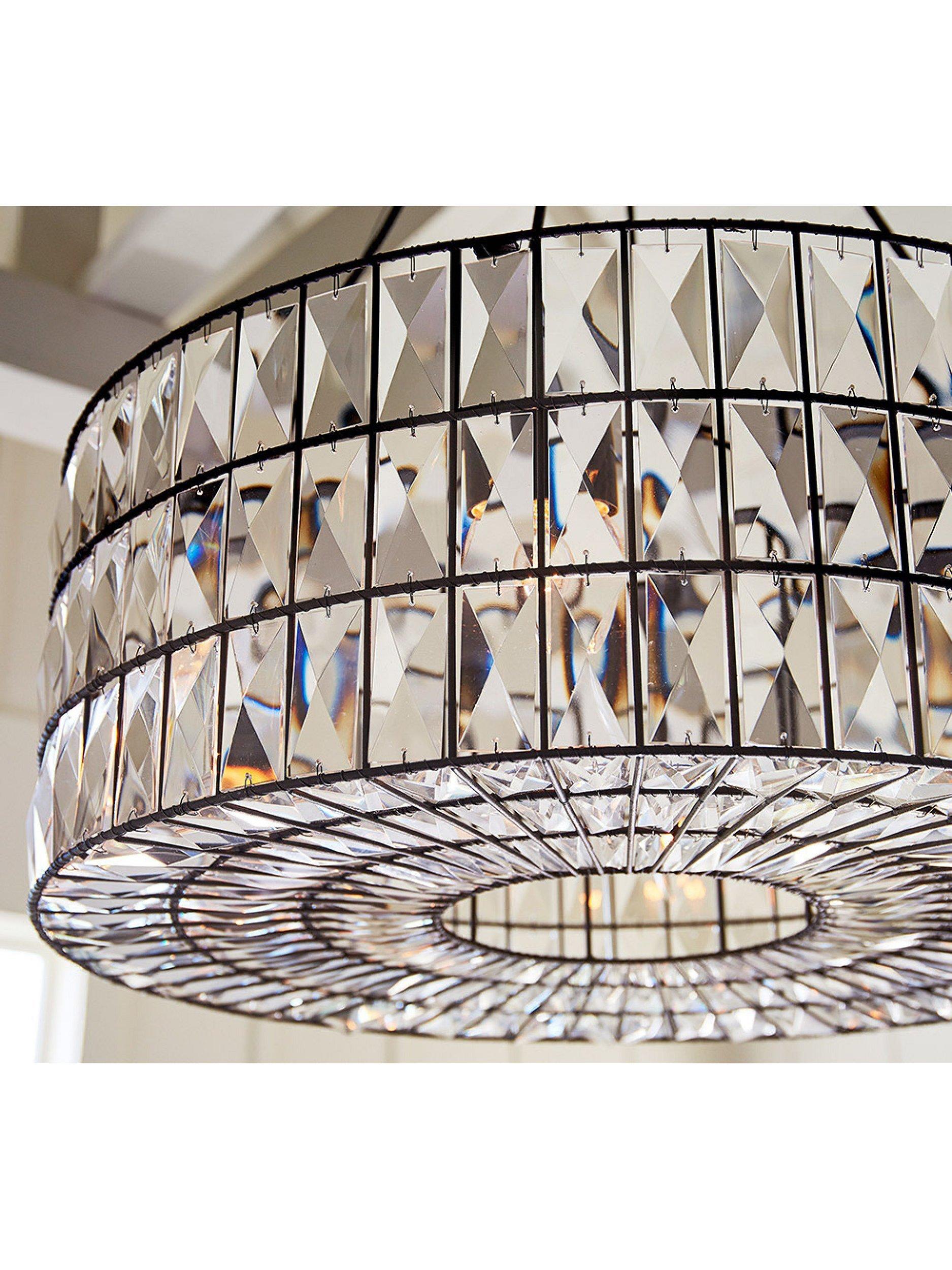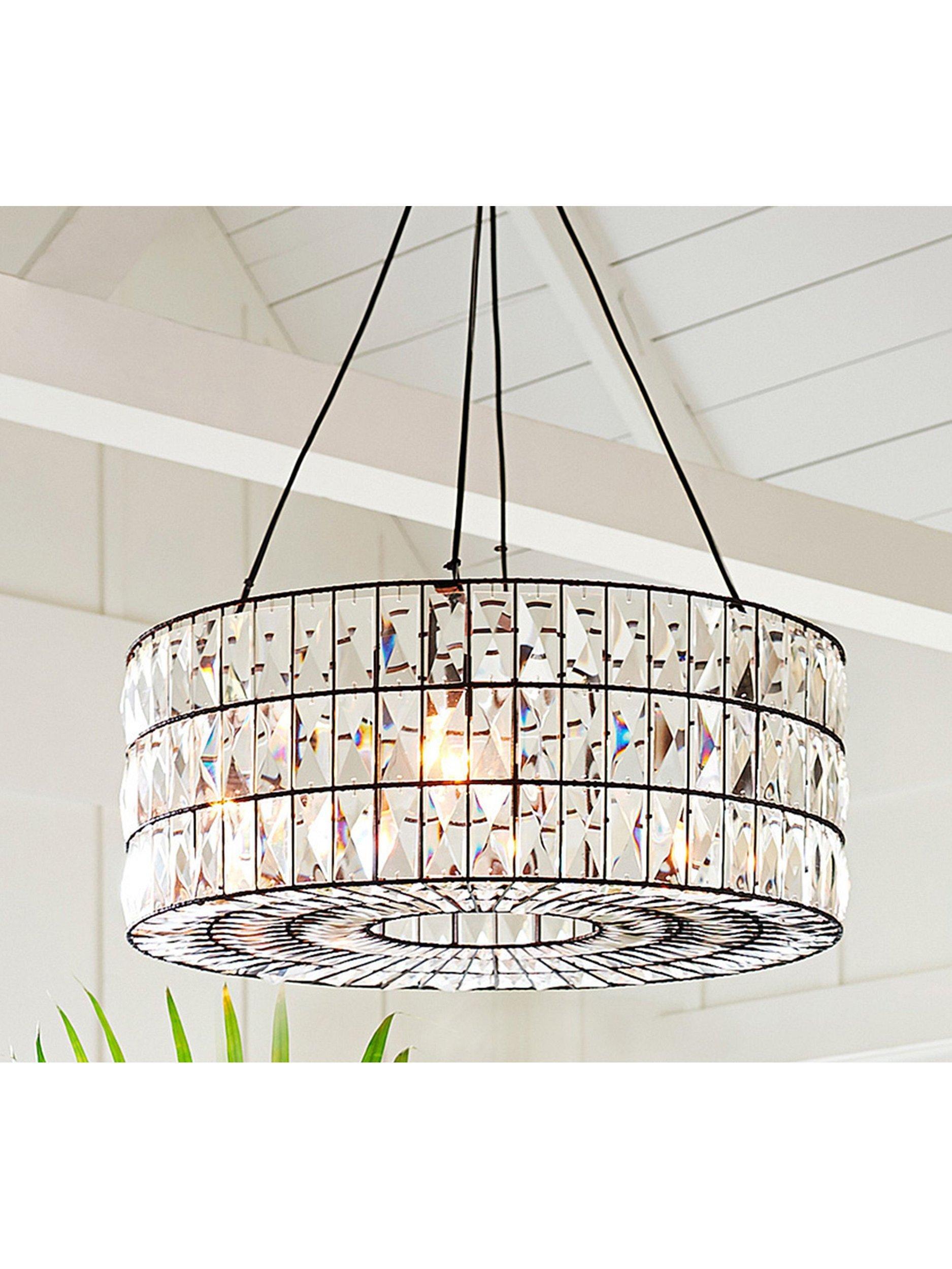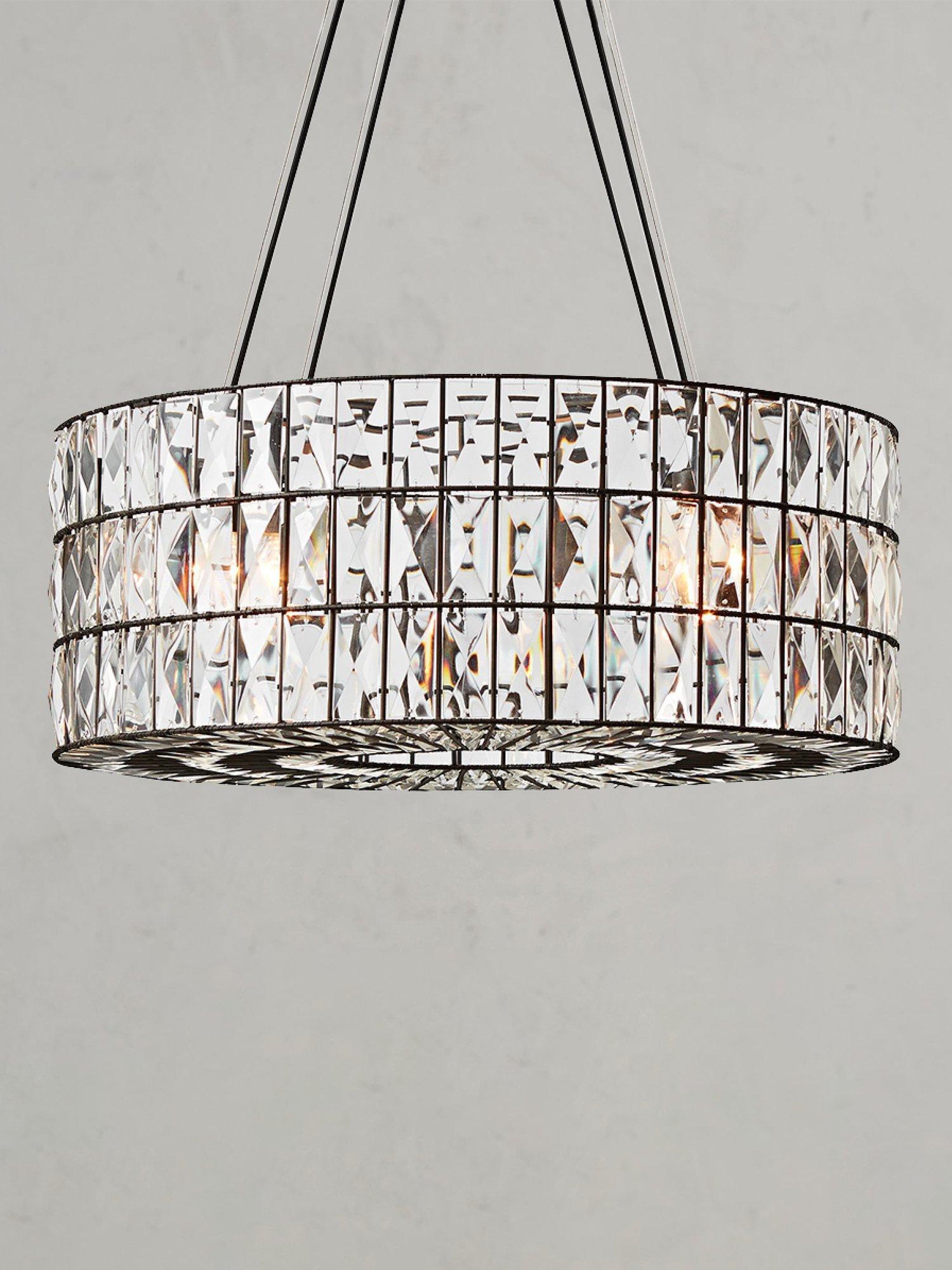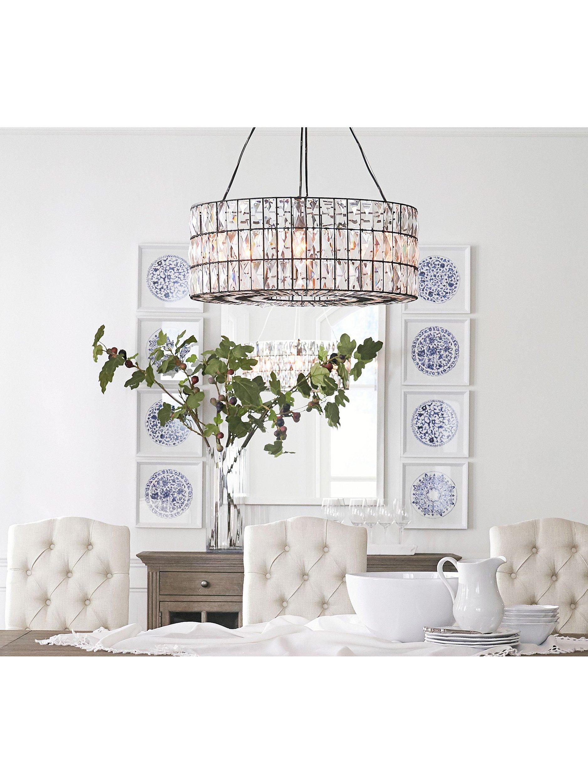 Like jewellery for the home, this chandelier from Pottery Barn's Adeline collection sparkles in any room, with each glass crystal refracting the light for a prismatic display. Made of glass on an iron frame with a bronze finish, this light is compatible with a dimmer switch.