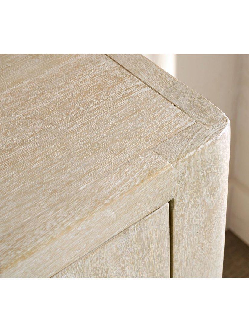 Expertly crafted from solid, kiln-dried mango wood, the Sandwash finish is achieved through a meticulous, multi-step process that results in a soft, weathered patina.