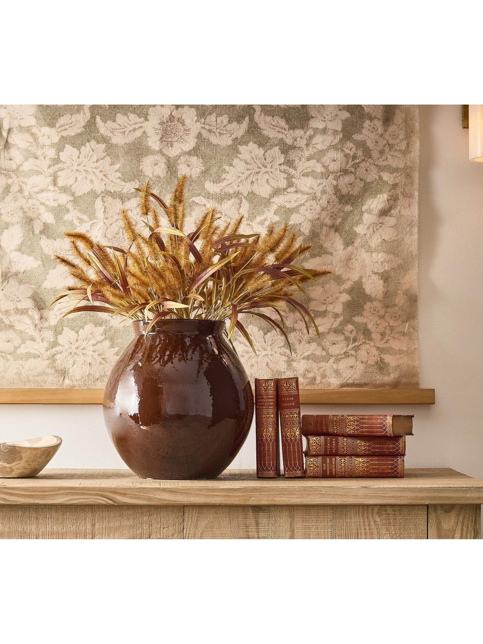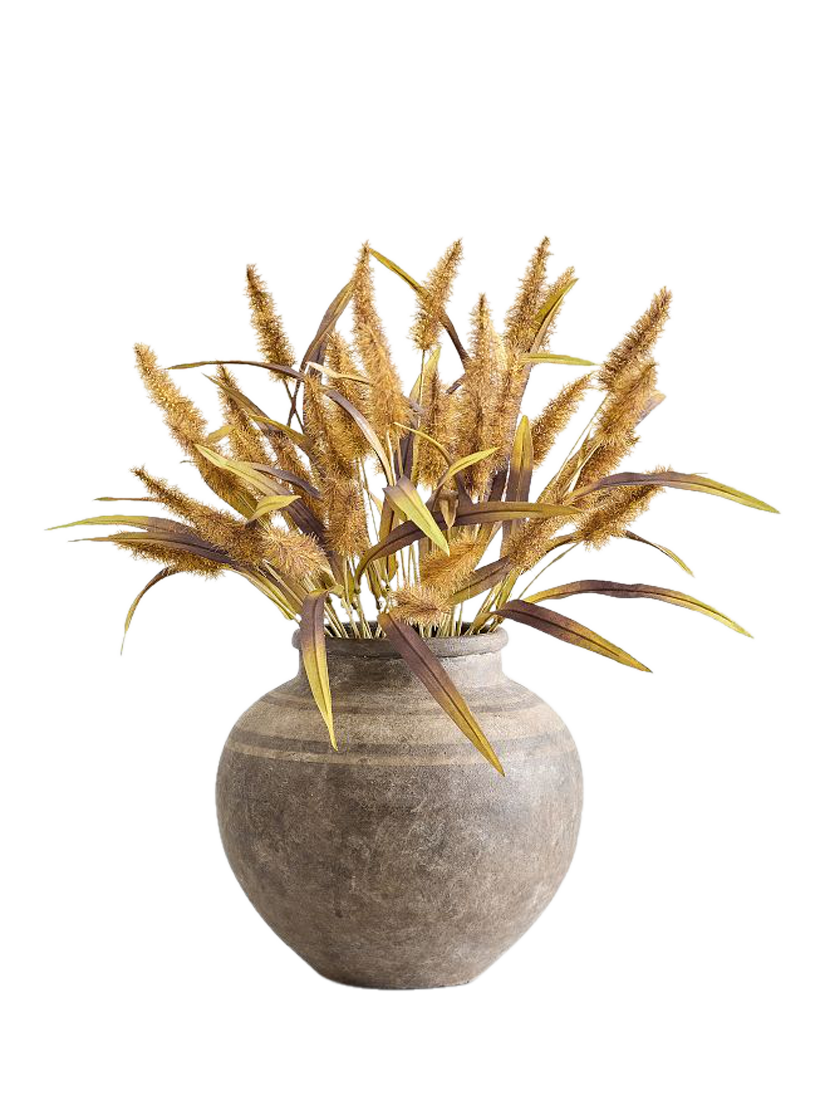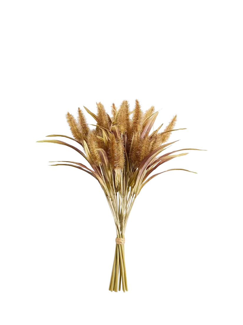 Handcrafted artificial dry grass stems. Made from plastic and polyester with a wire centre. Add to a vase on their own or use them as part of an artificial bouquet to create texture.